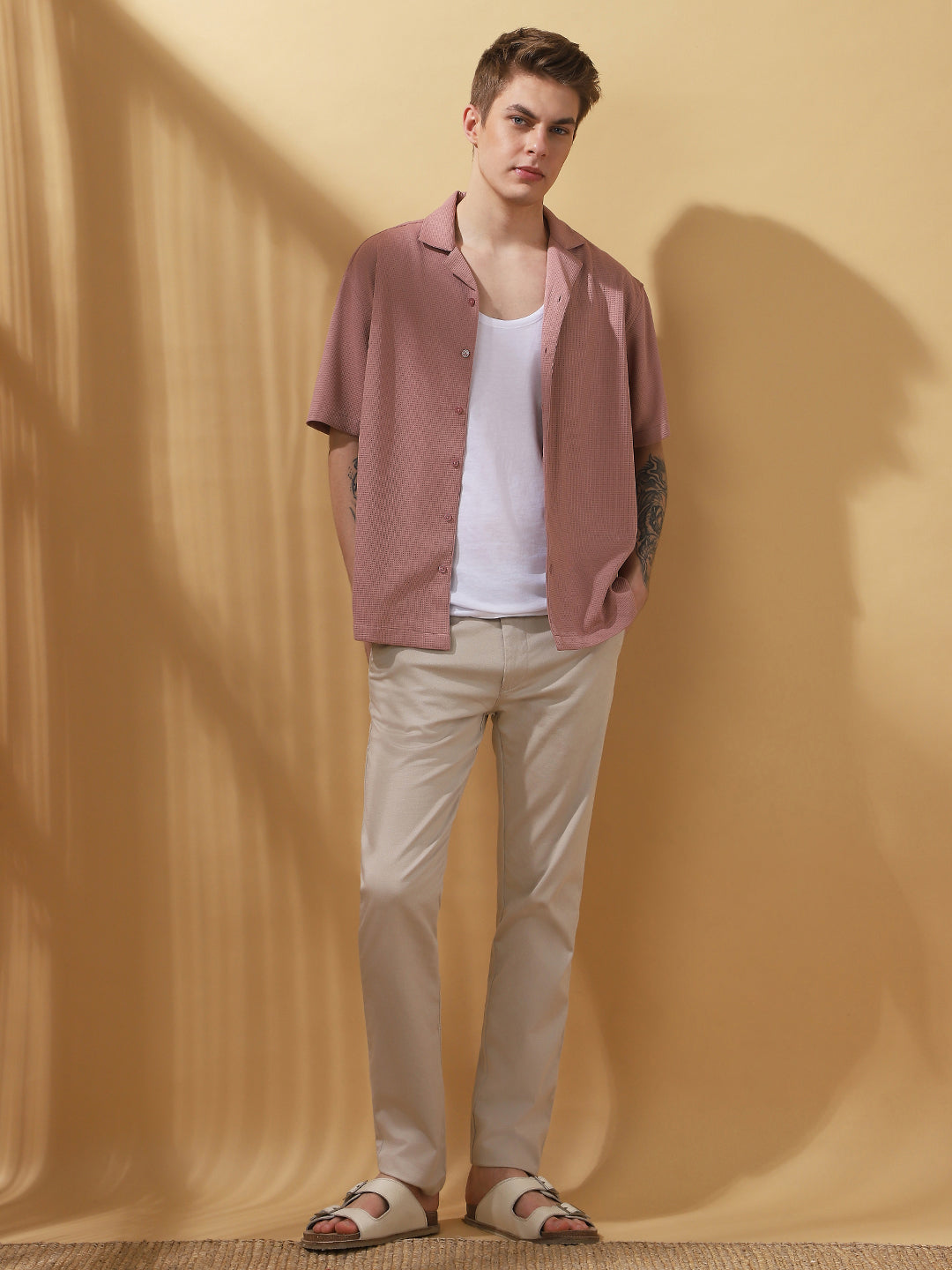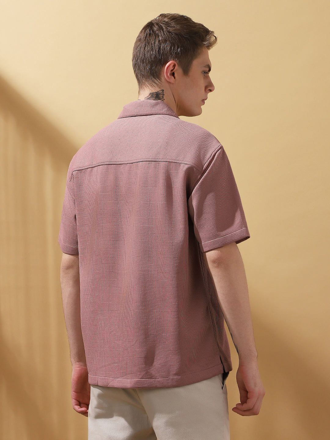Men's DustyPink Textured Full Sleeves Spread collar casual Shirt