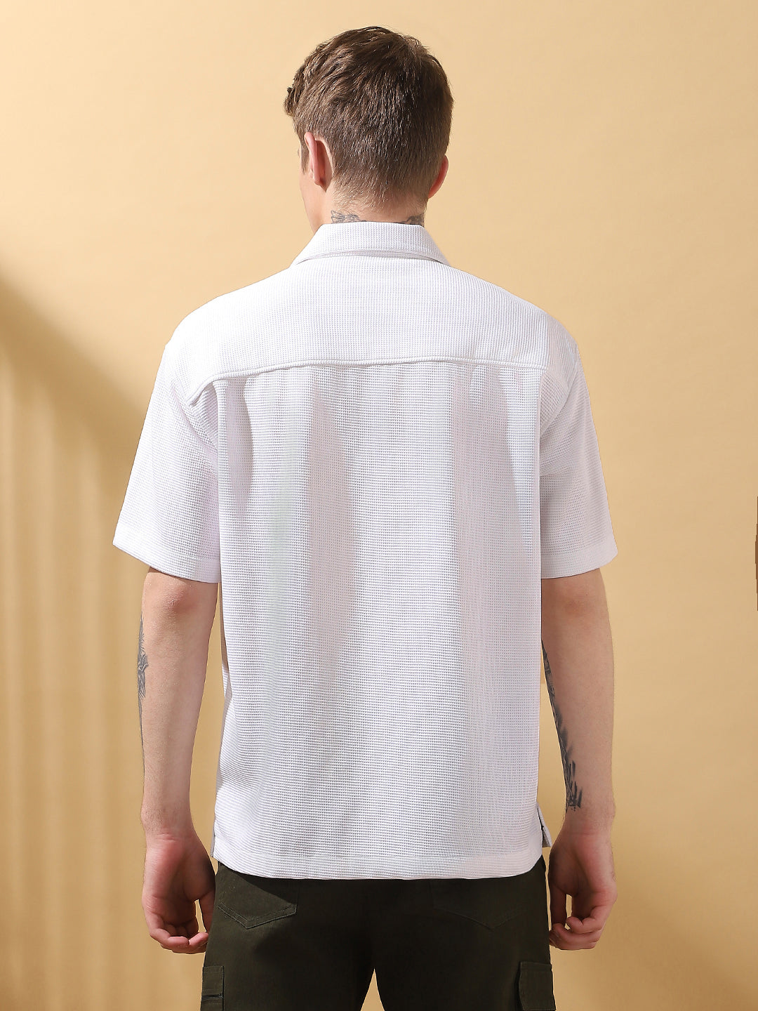 White Solid Textured Spread Collar Full Sleeves Shirt