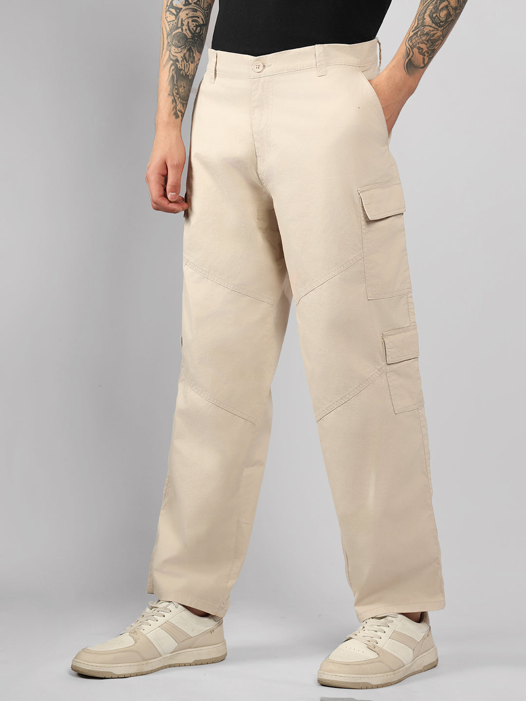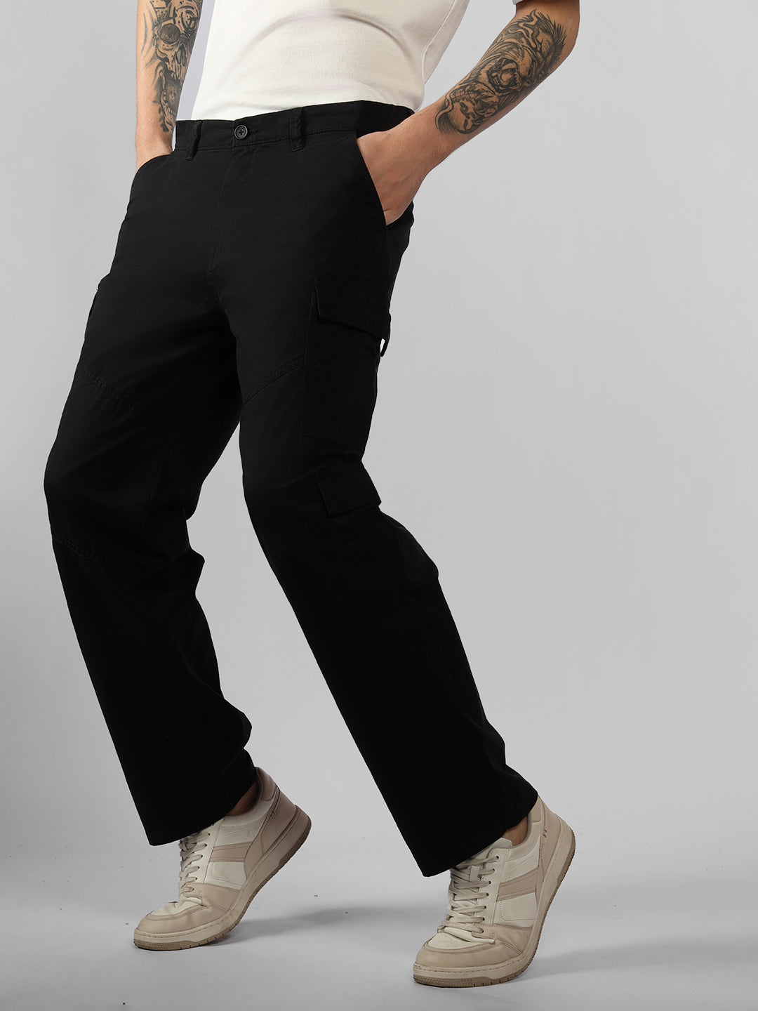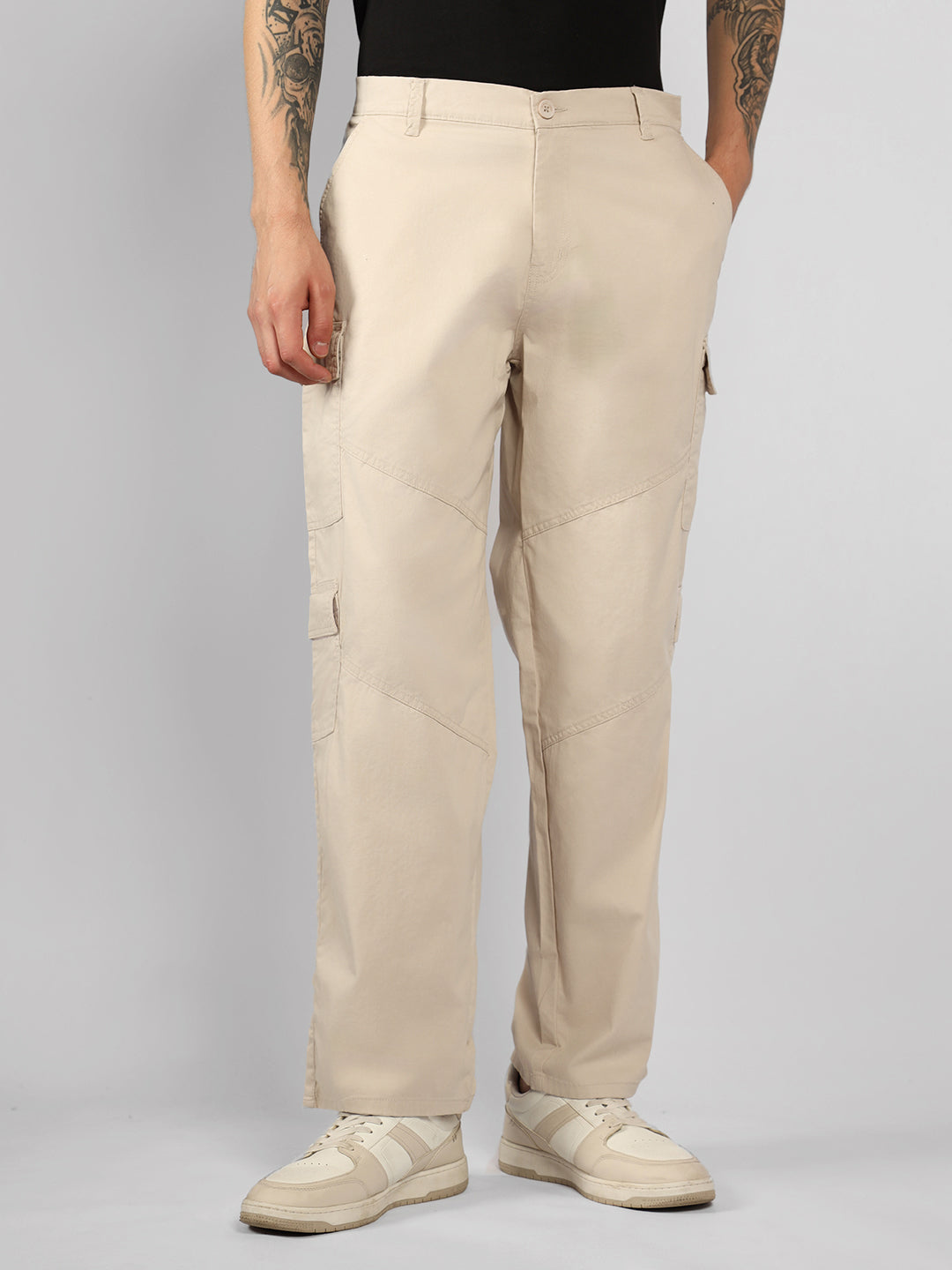Men's Solid Straight Fit Parachute Cargo Trousers