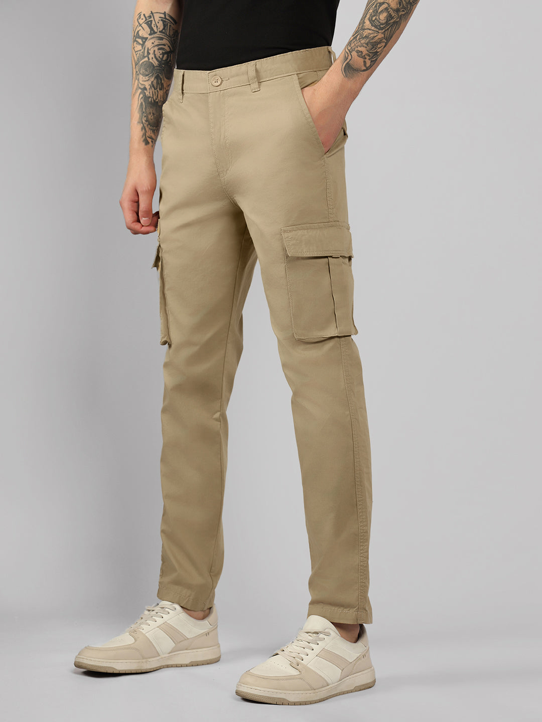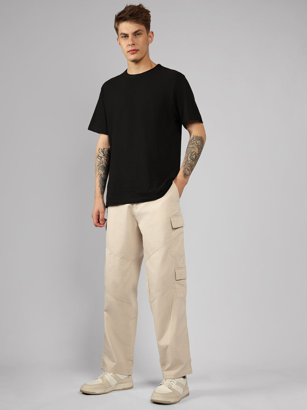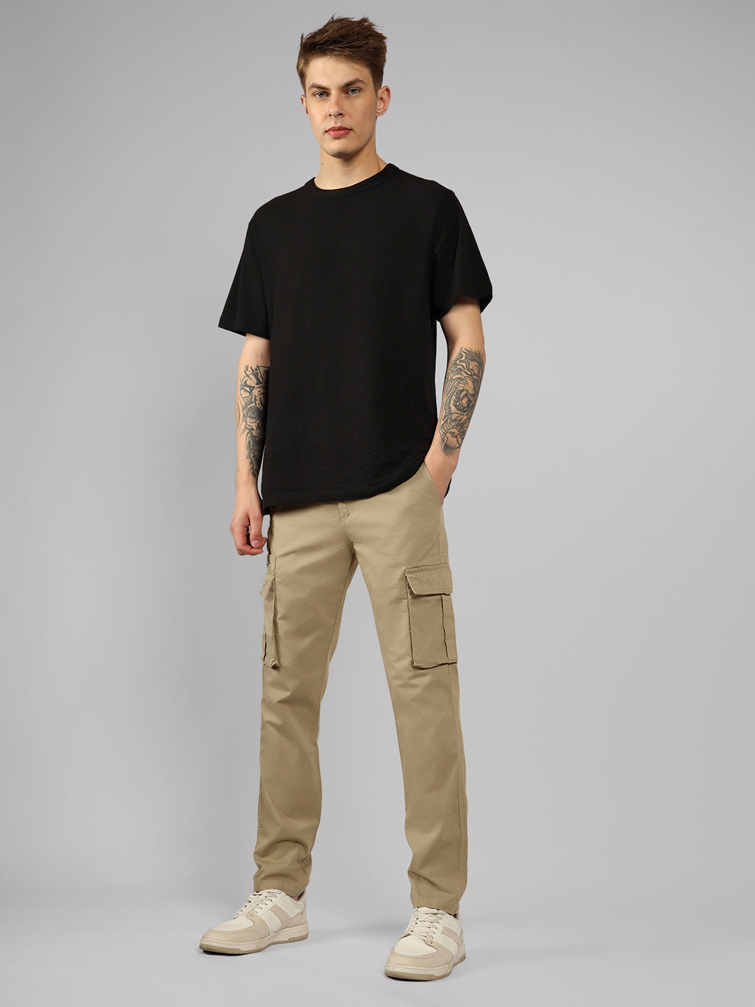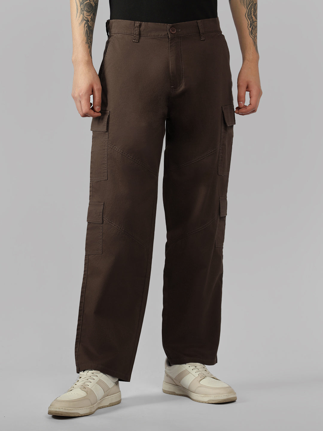 Men's Solid Straight Fit Parachute Cargo Trousers