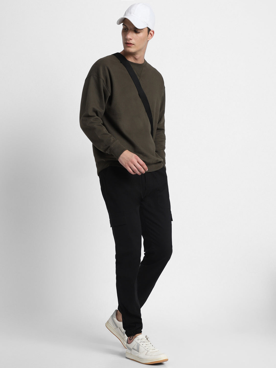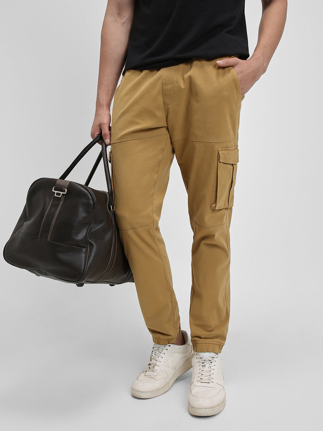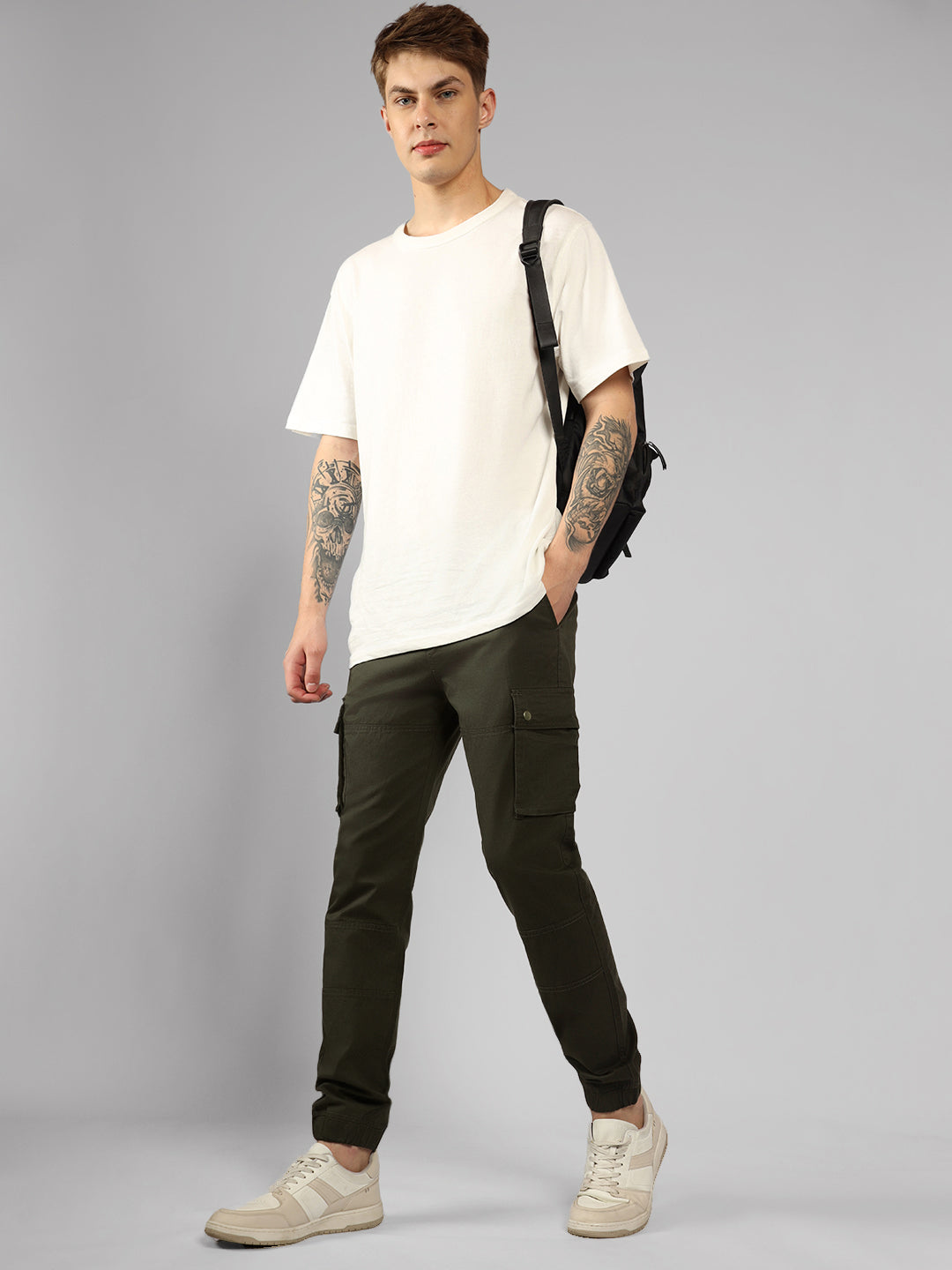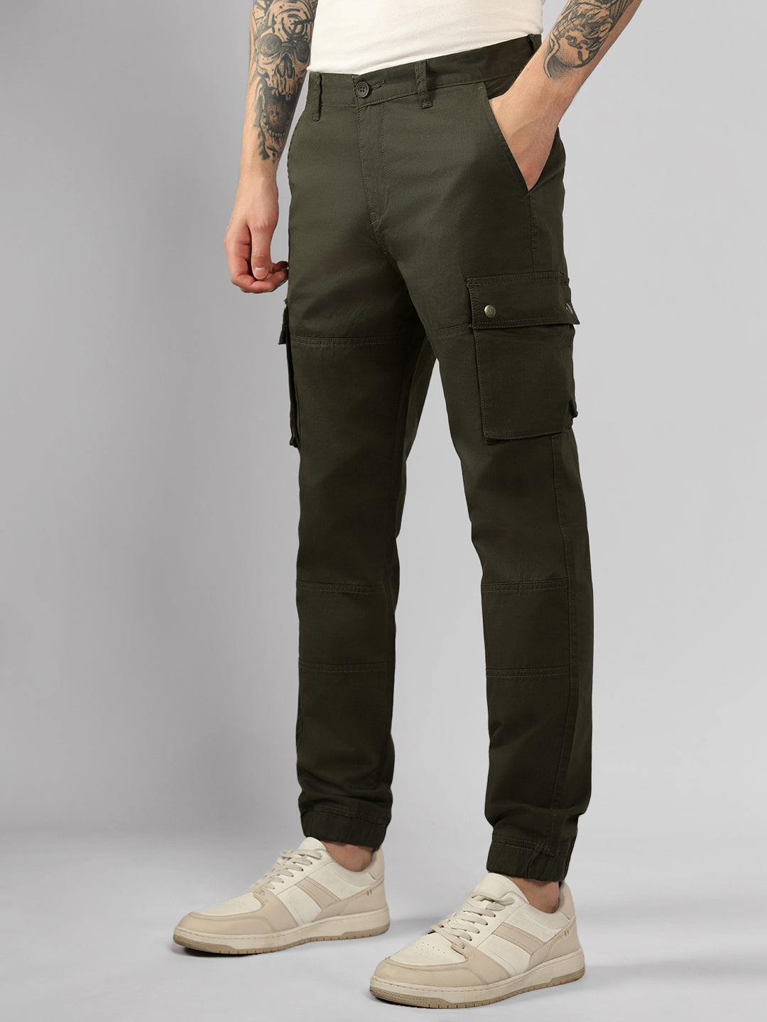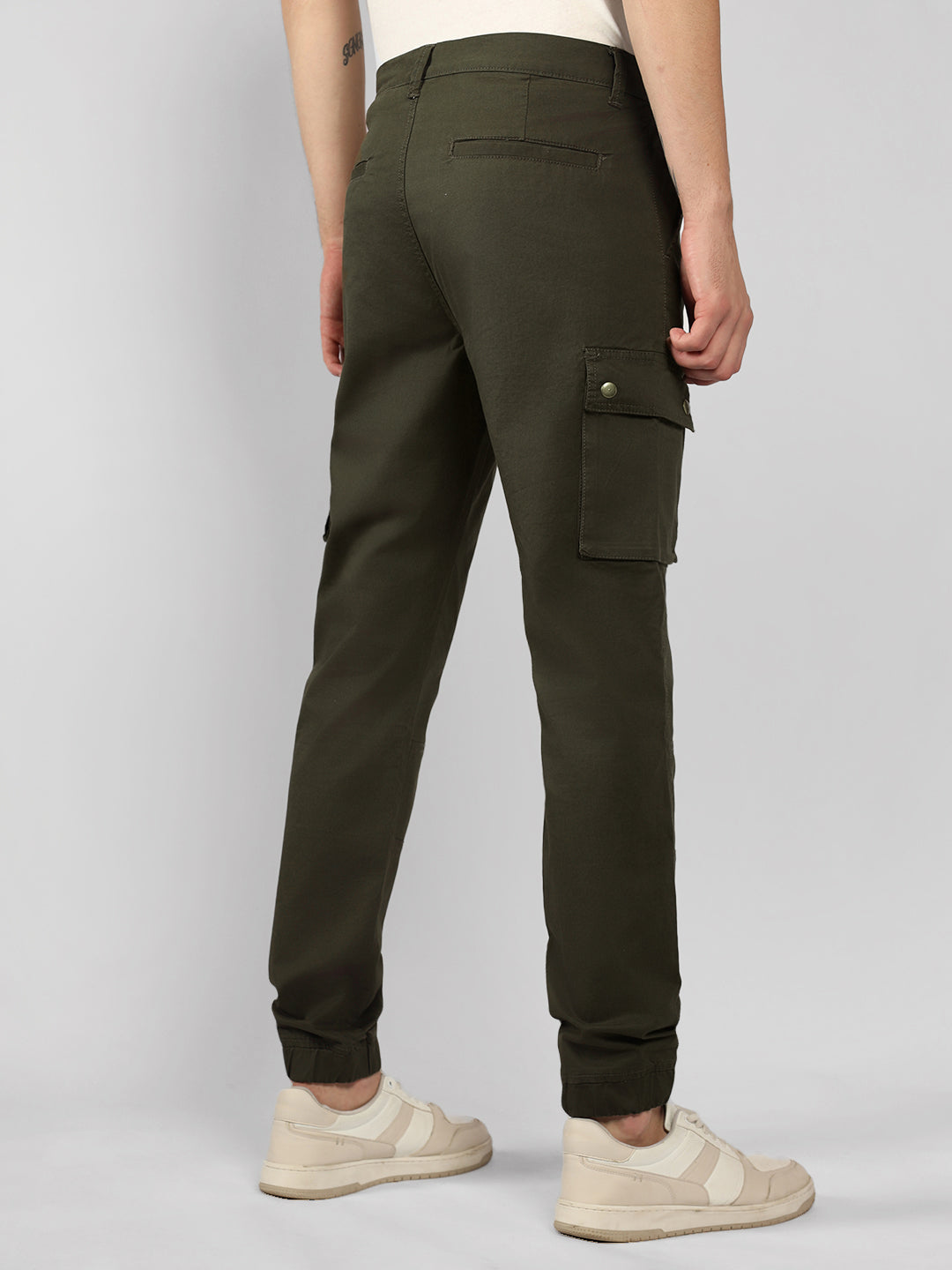 Men's Light Olive Solid Slim Fit Cargo Jogger