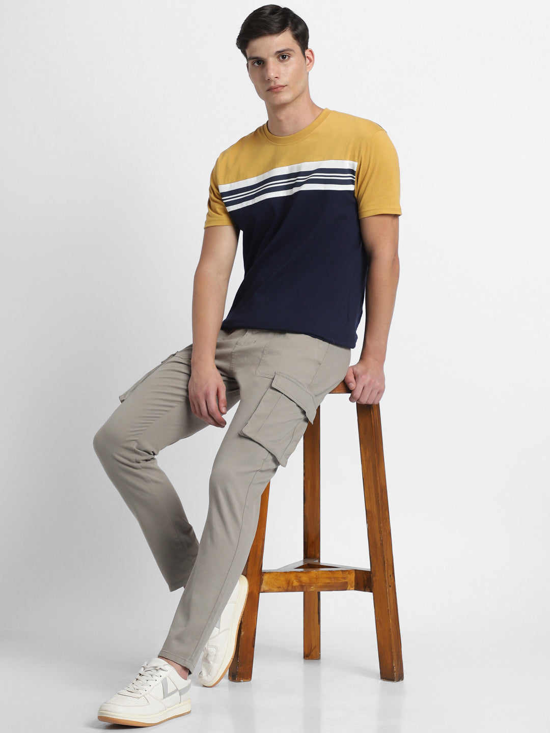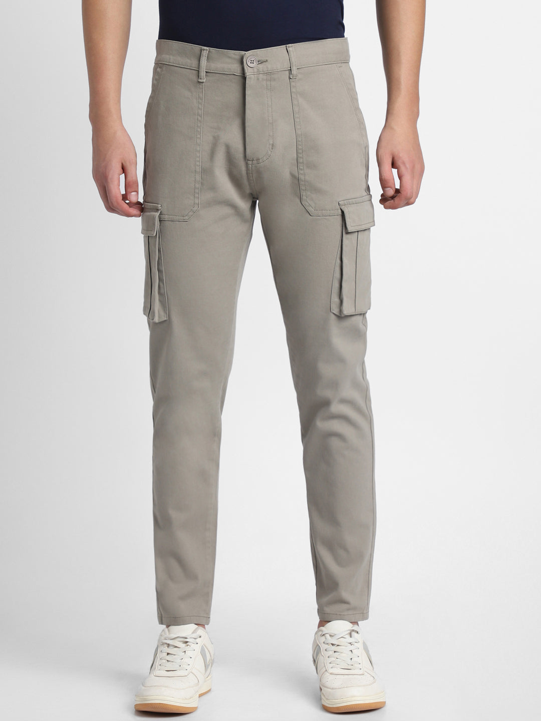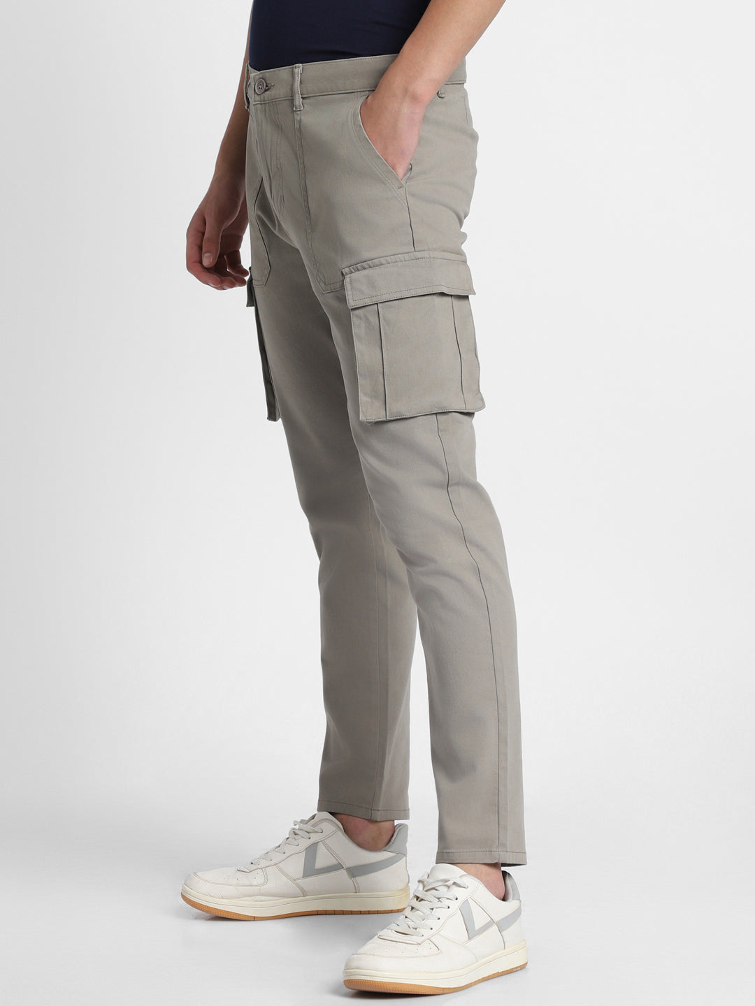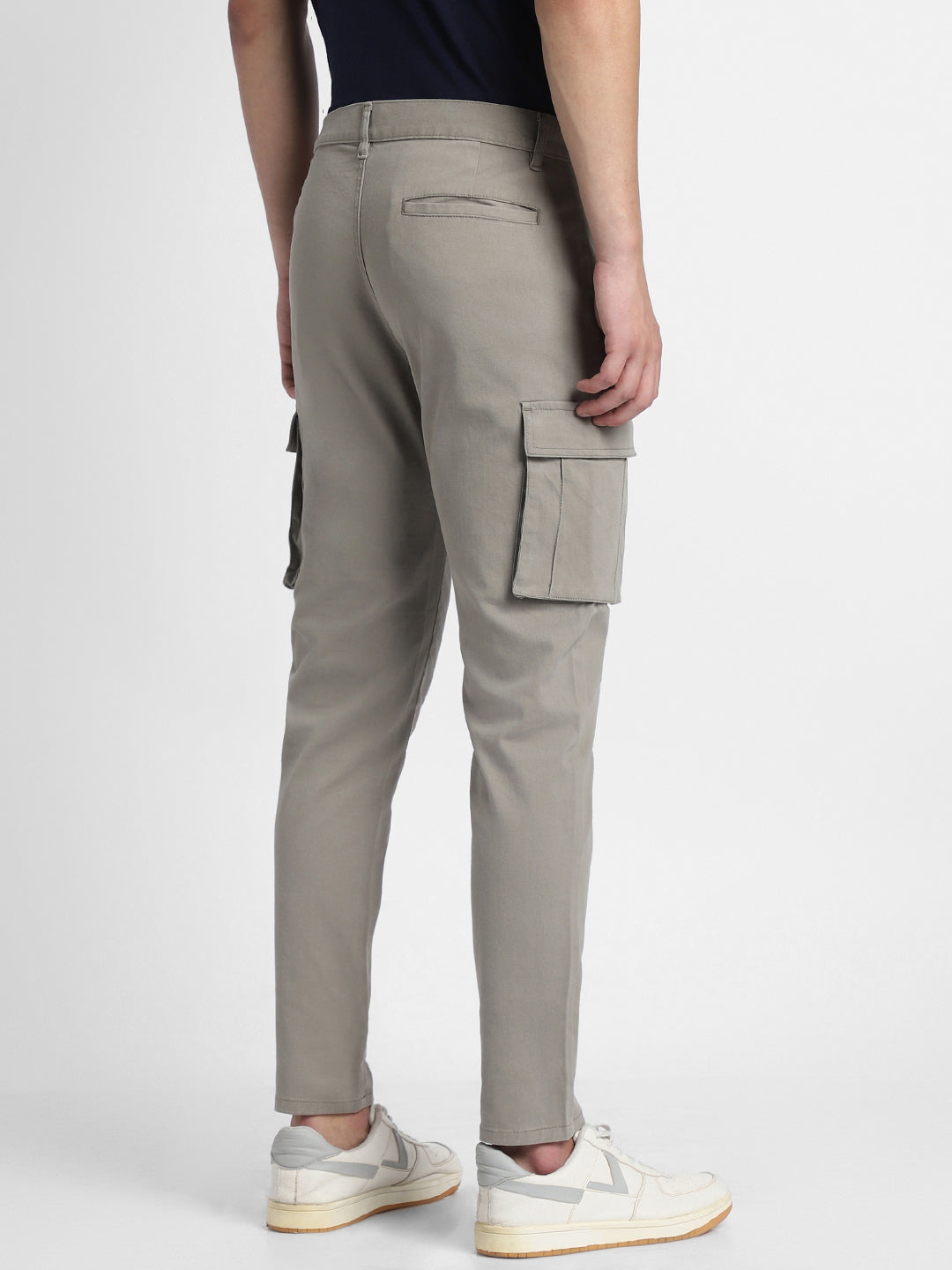 Men's Mid Grey Cotton Lycra Solid Stretchable Regular Fit Cargo Joggers