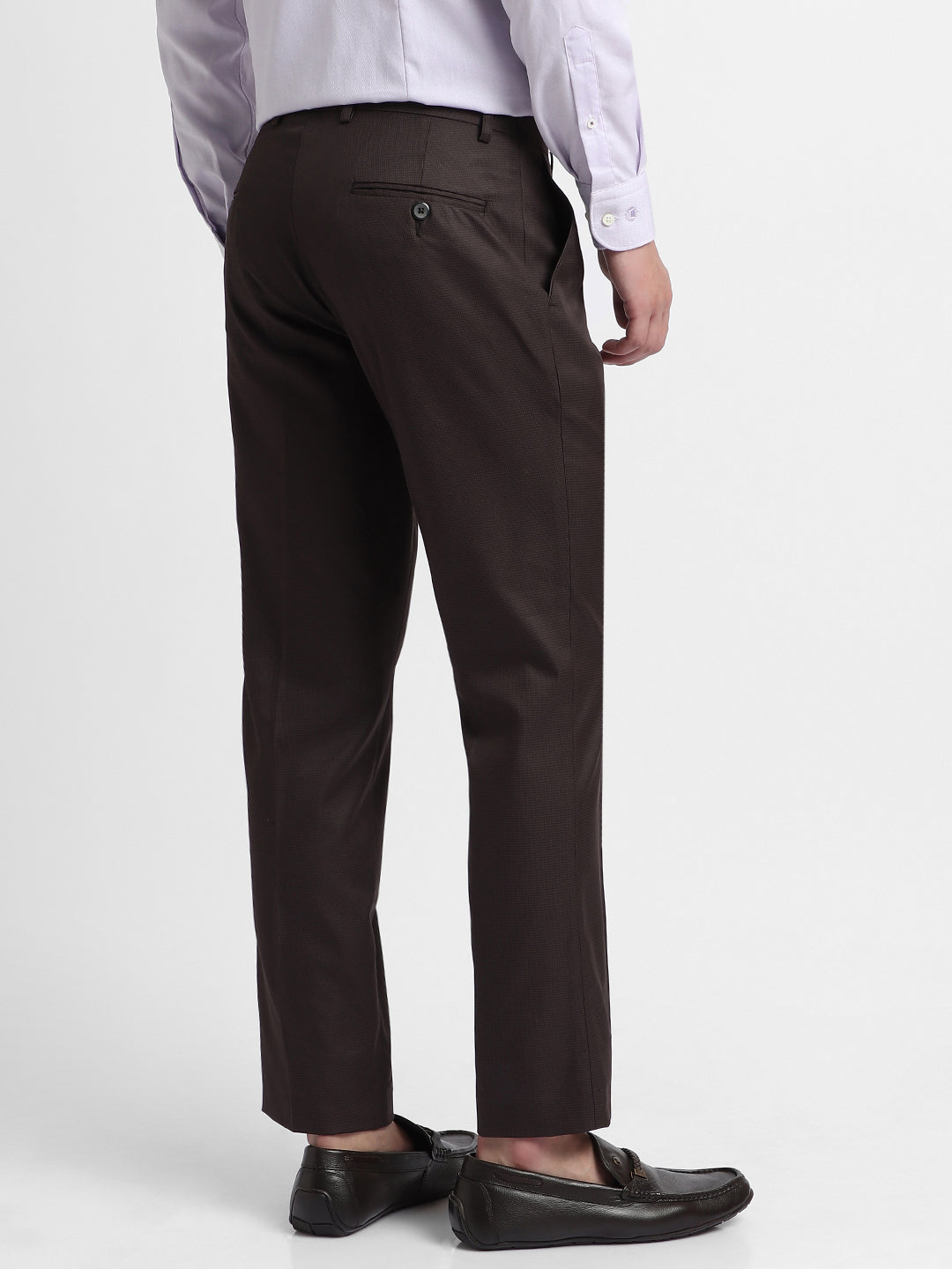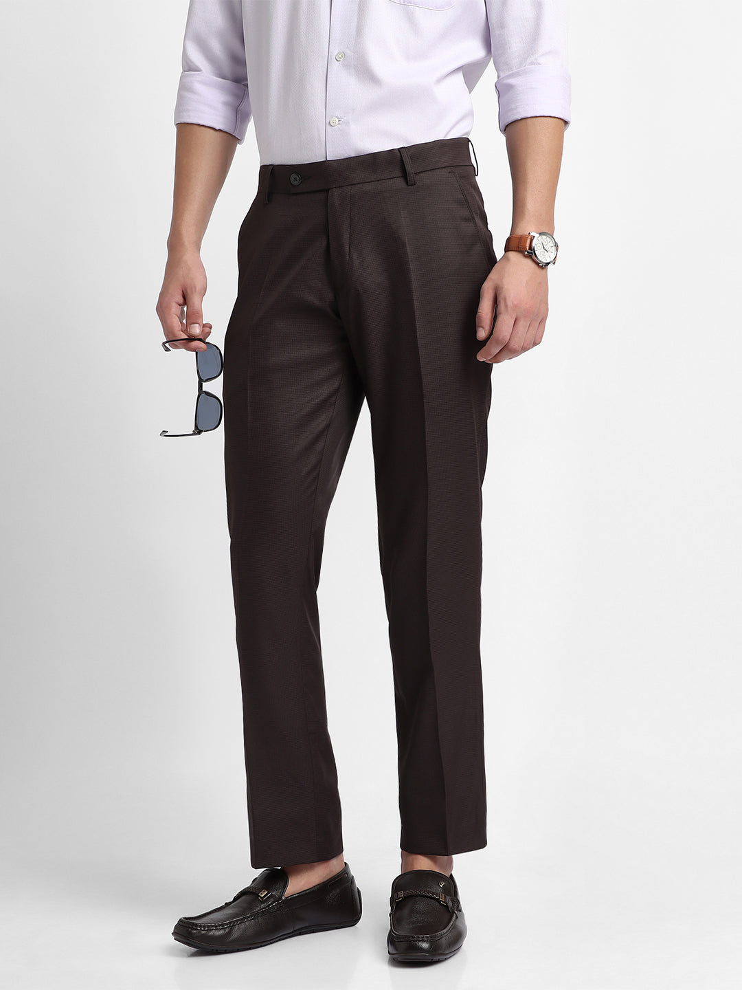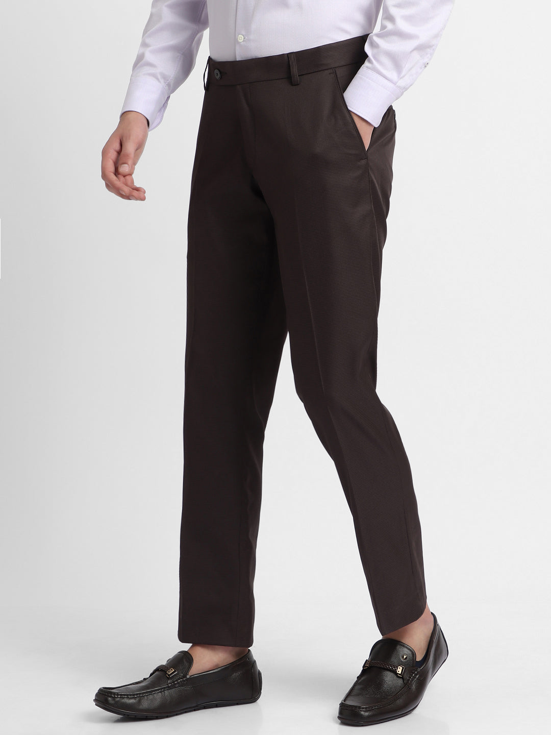 Men's Brown Slim Fit Non Stretch Formal Trouser With Flat Front