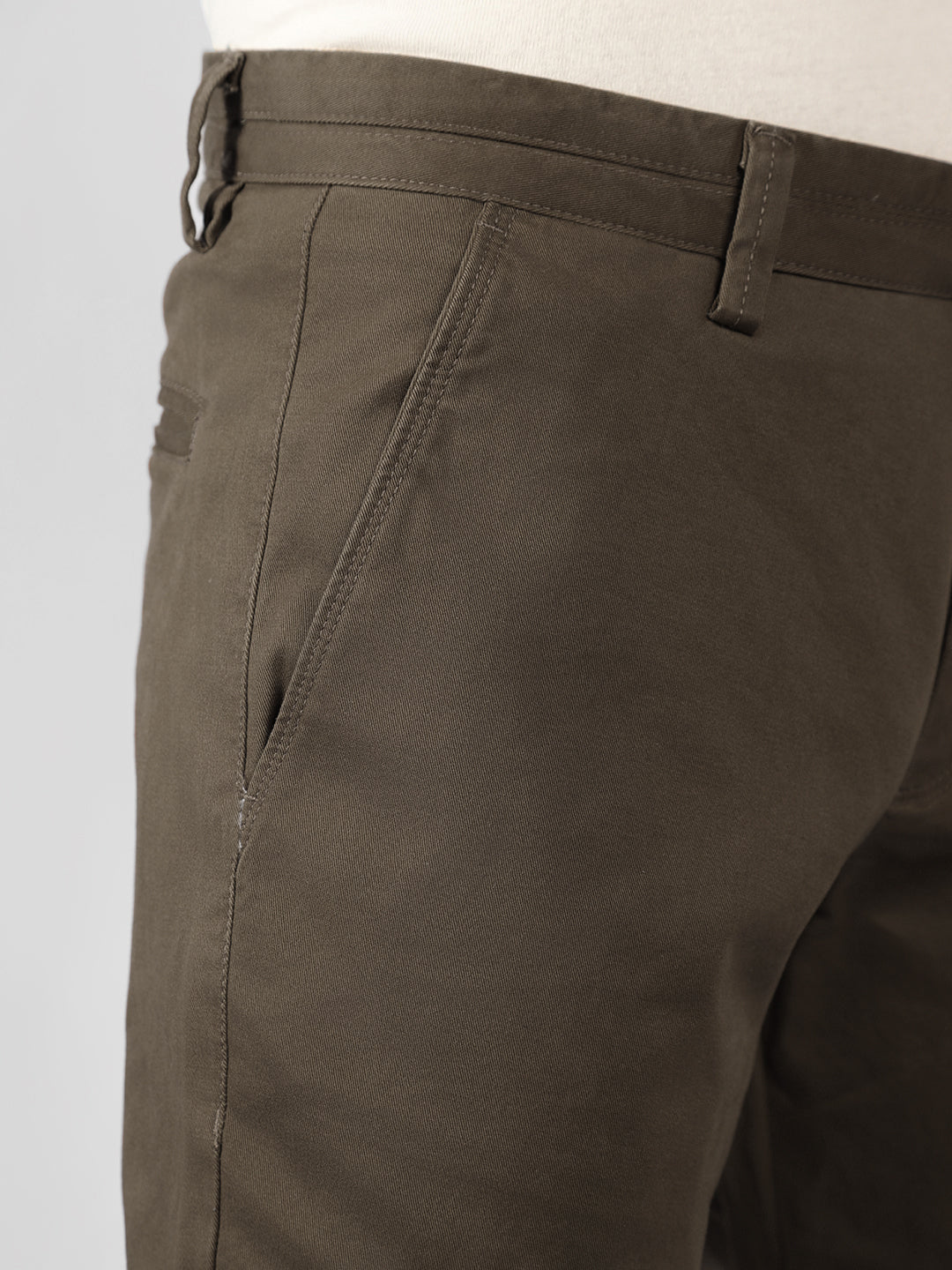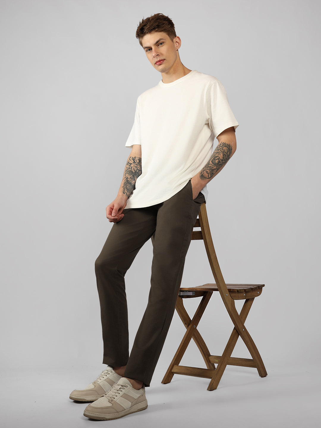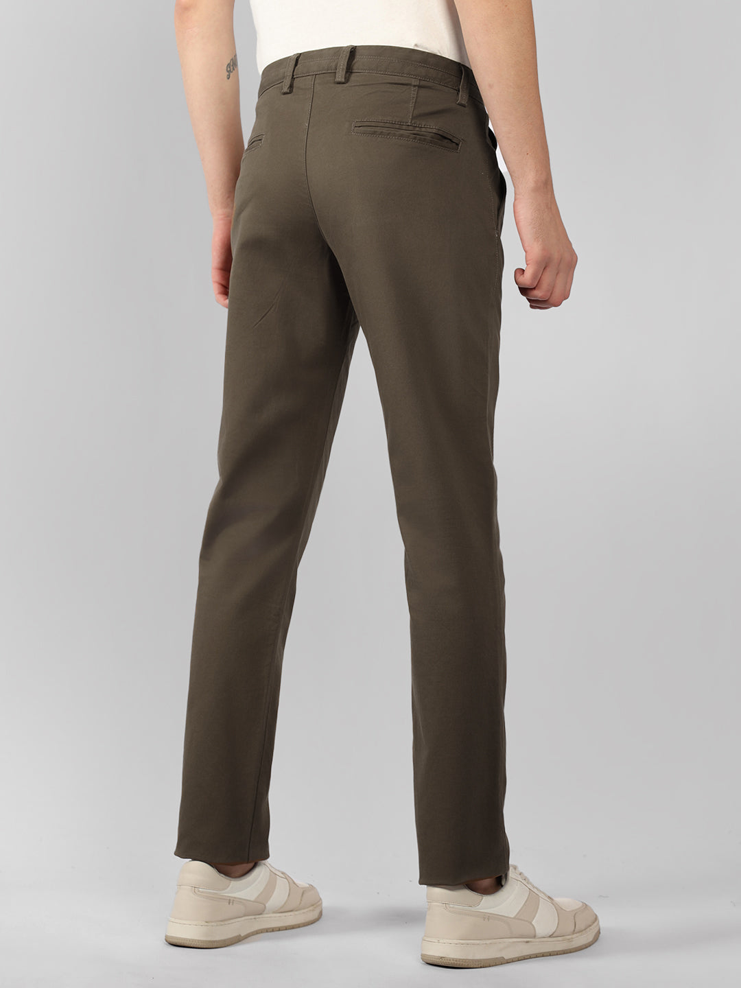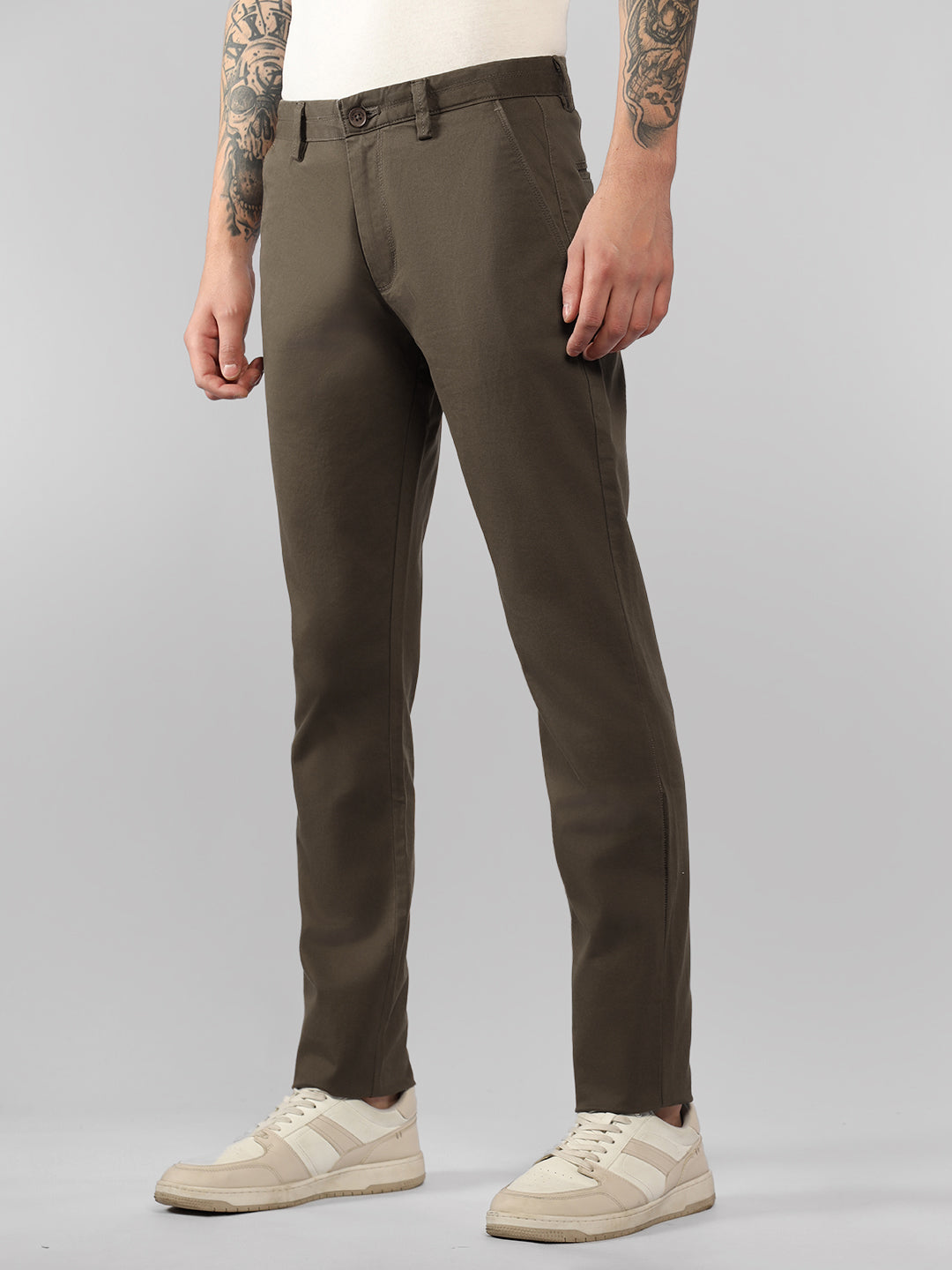 Men's Brown Slim Fit Non Stretch Formal Trouser With Flat Front