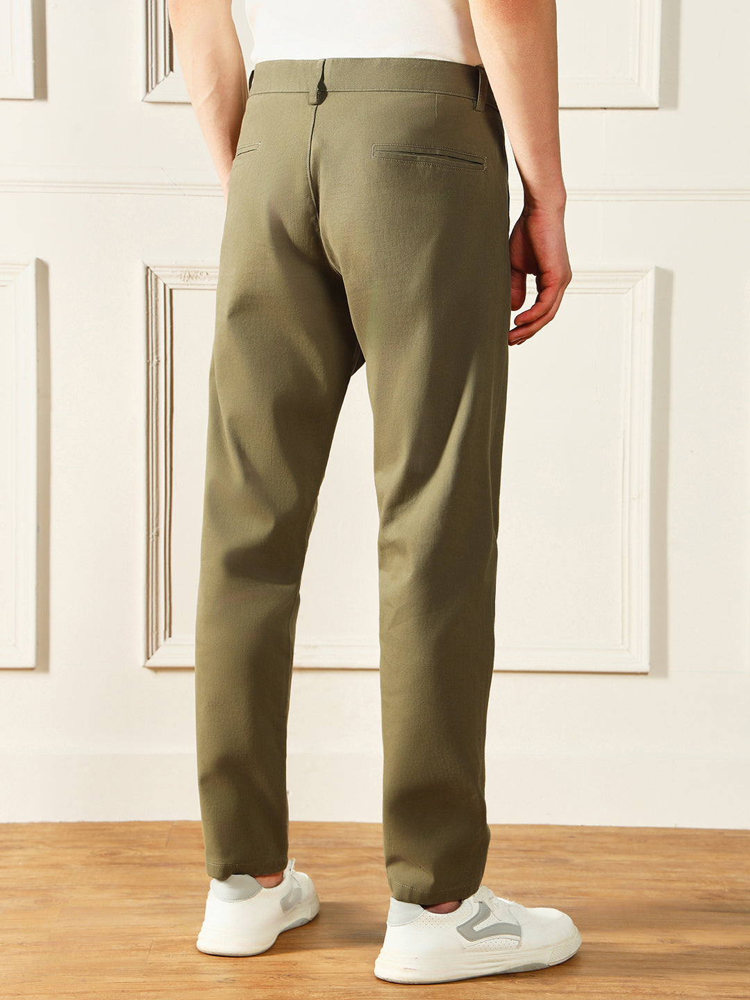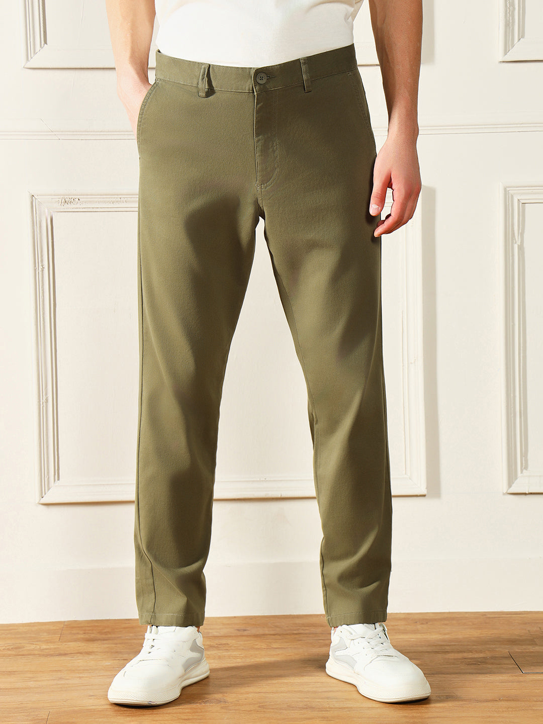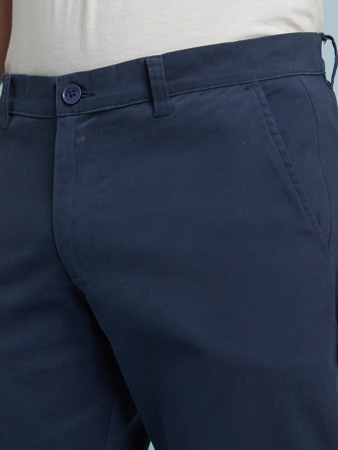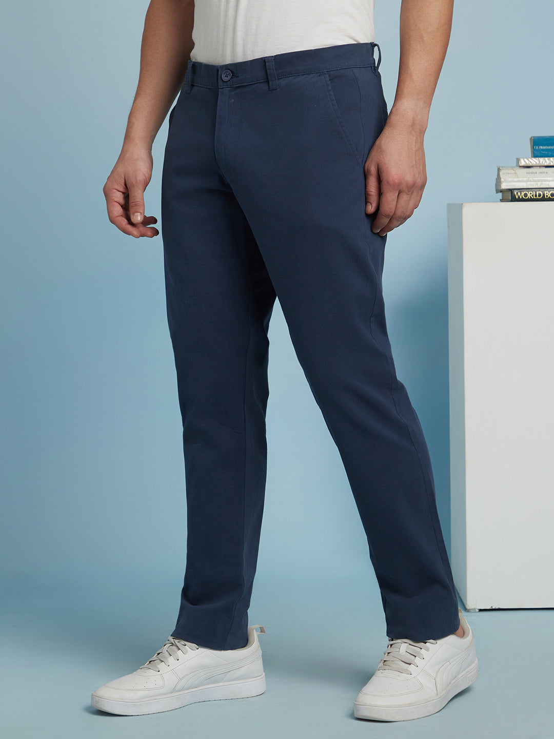 Men Dark Blue Solid Straight Fit Chinos Trousers