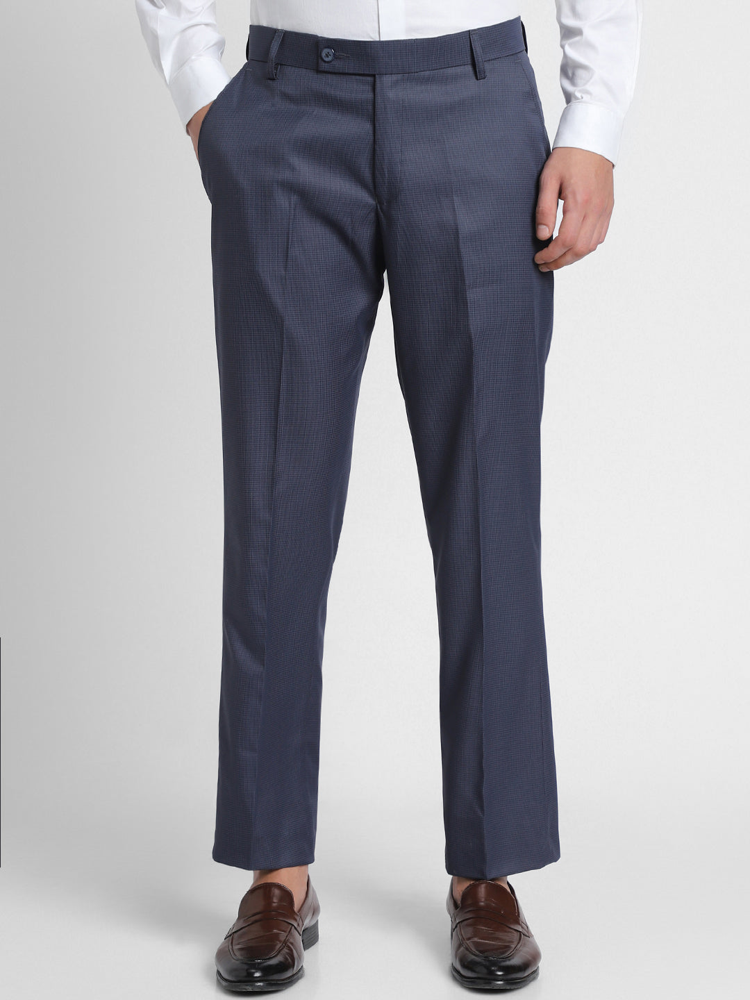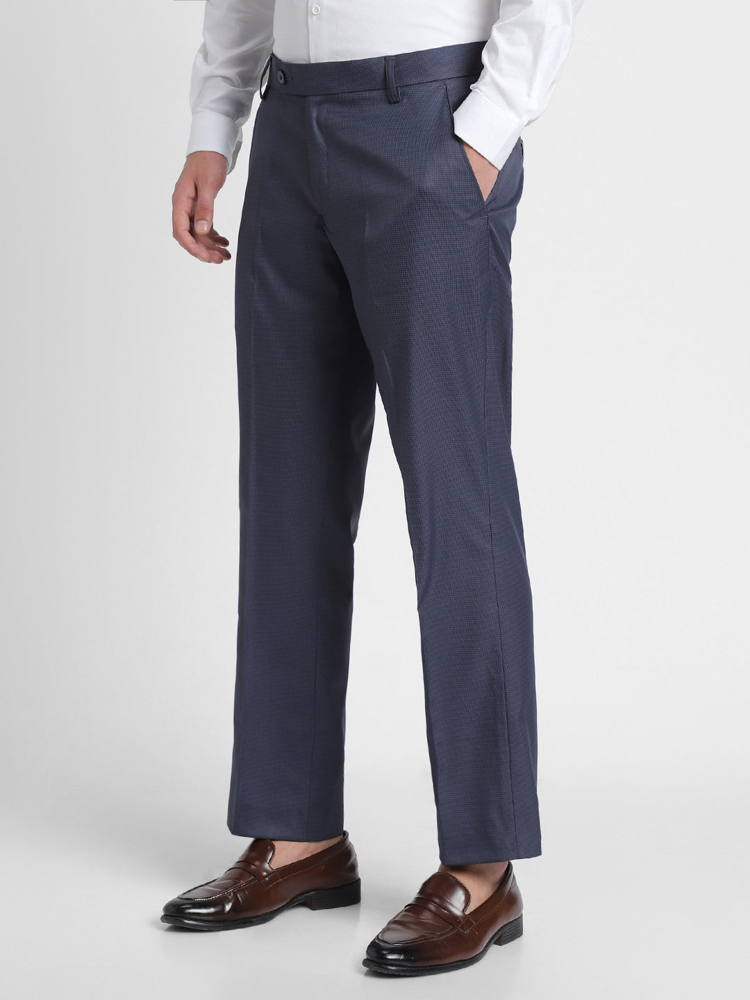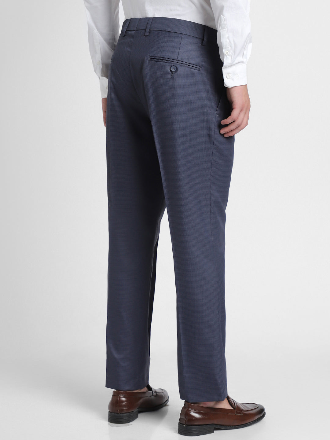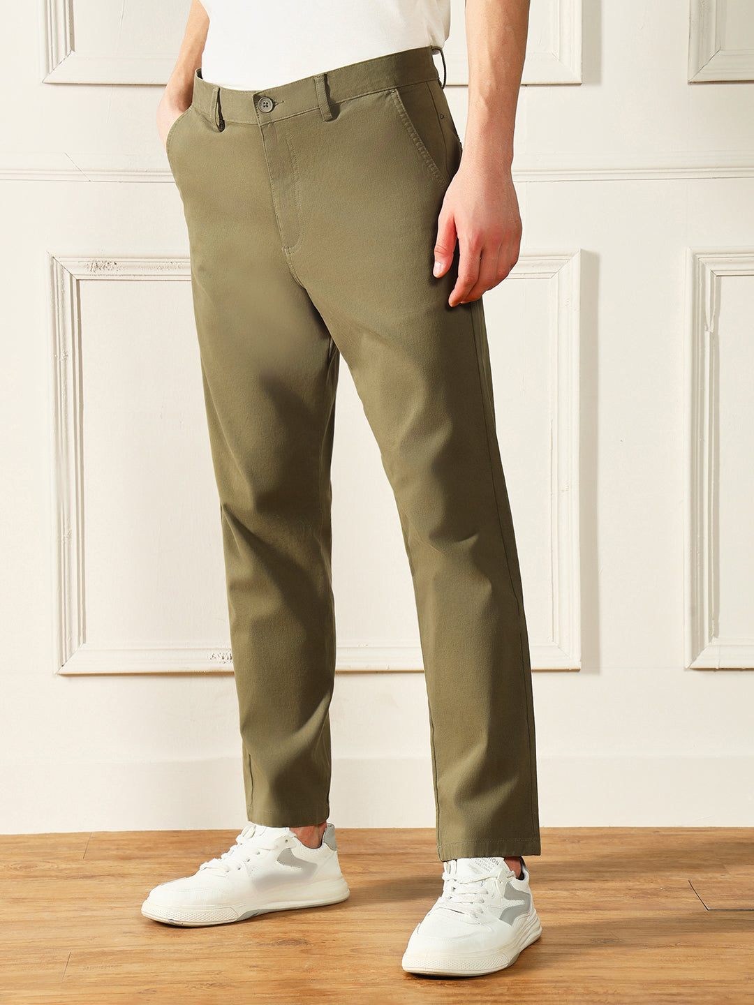 Men Dark Blue Solid Straight Fit Chinos Trousers