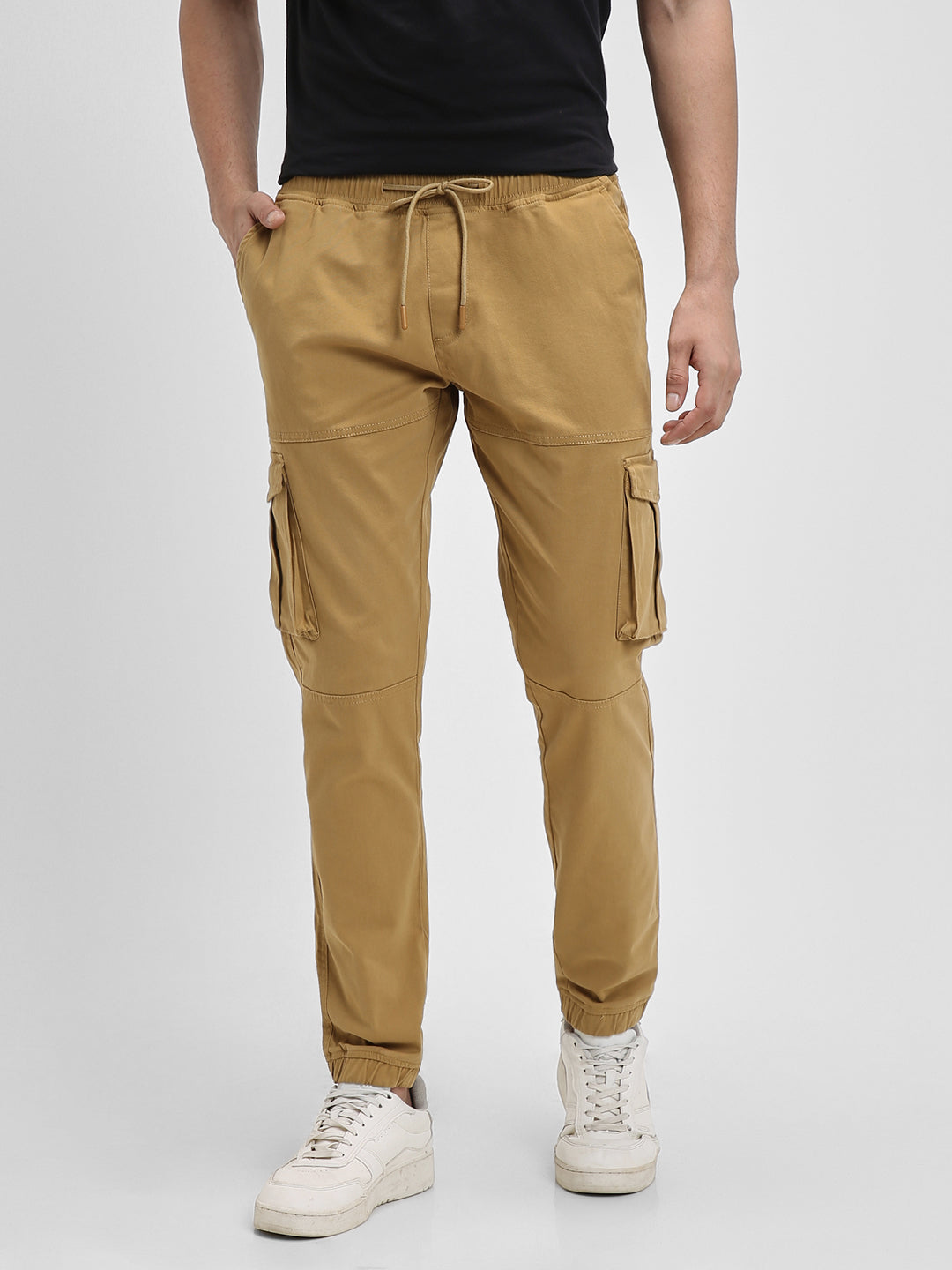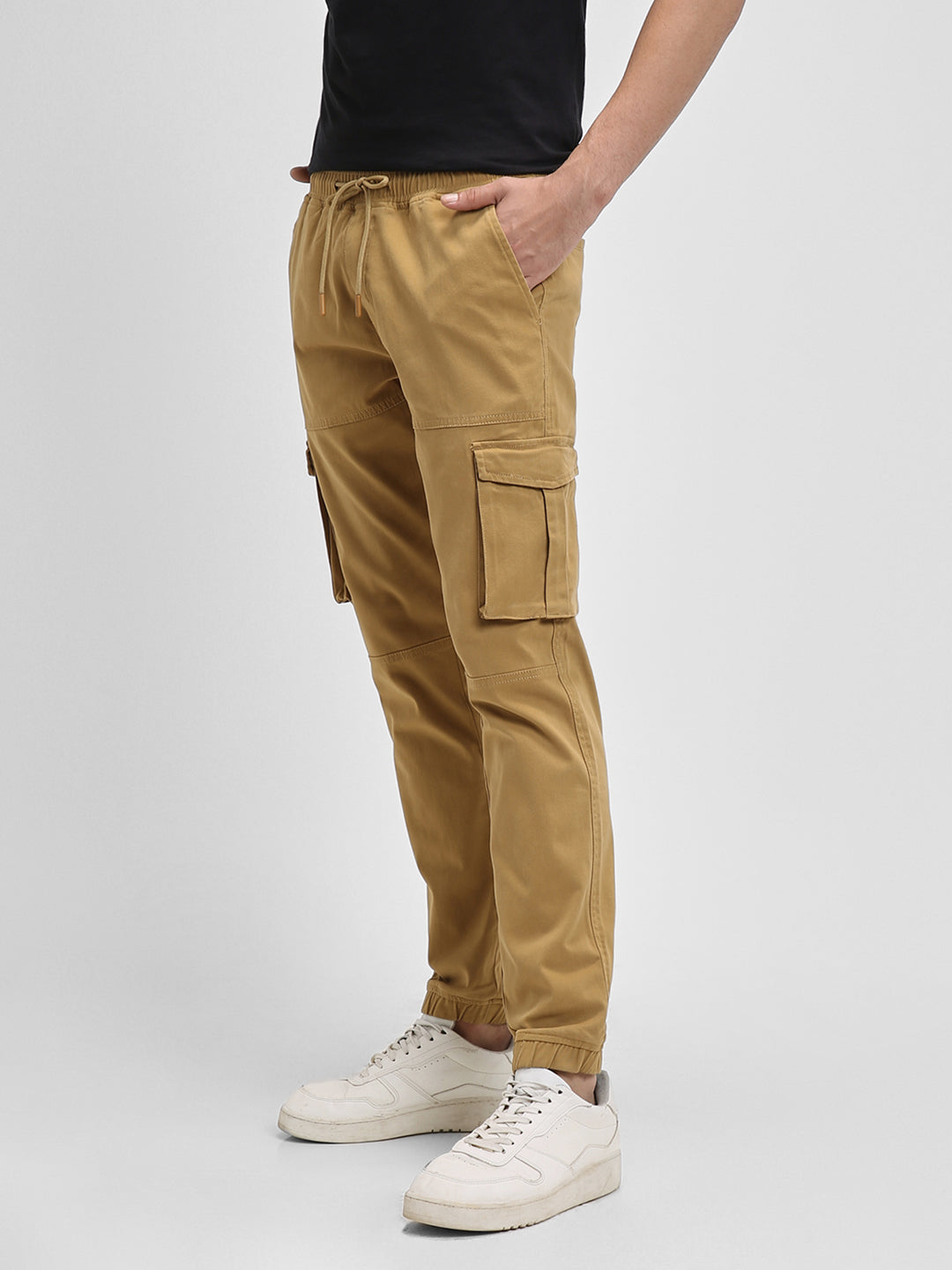 Men's Tapered Fit Cotton Joggers (Khaki)