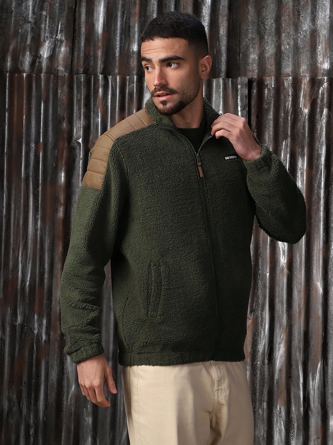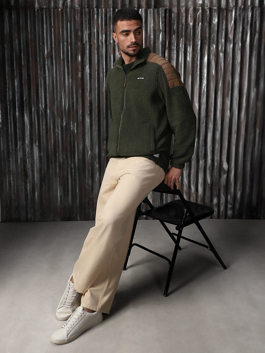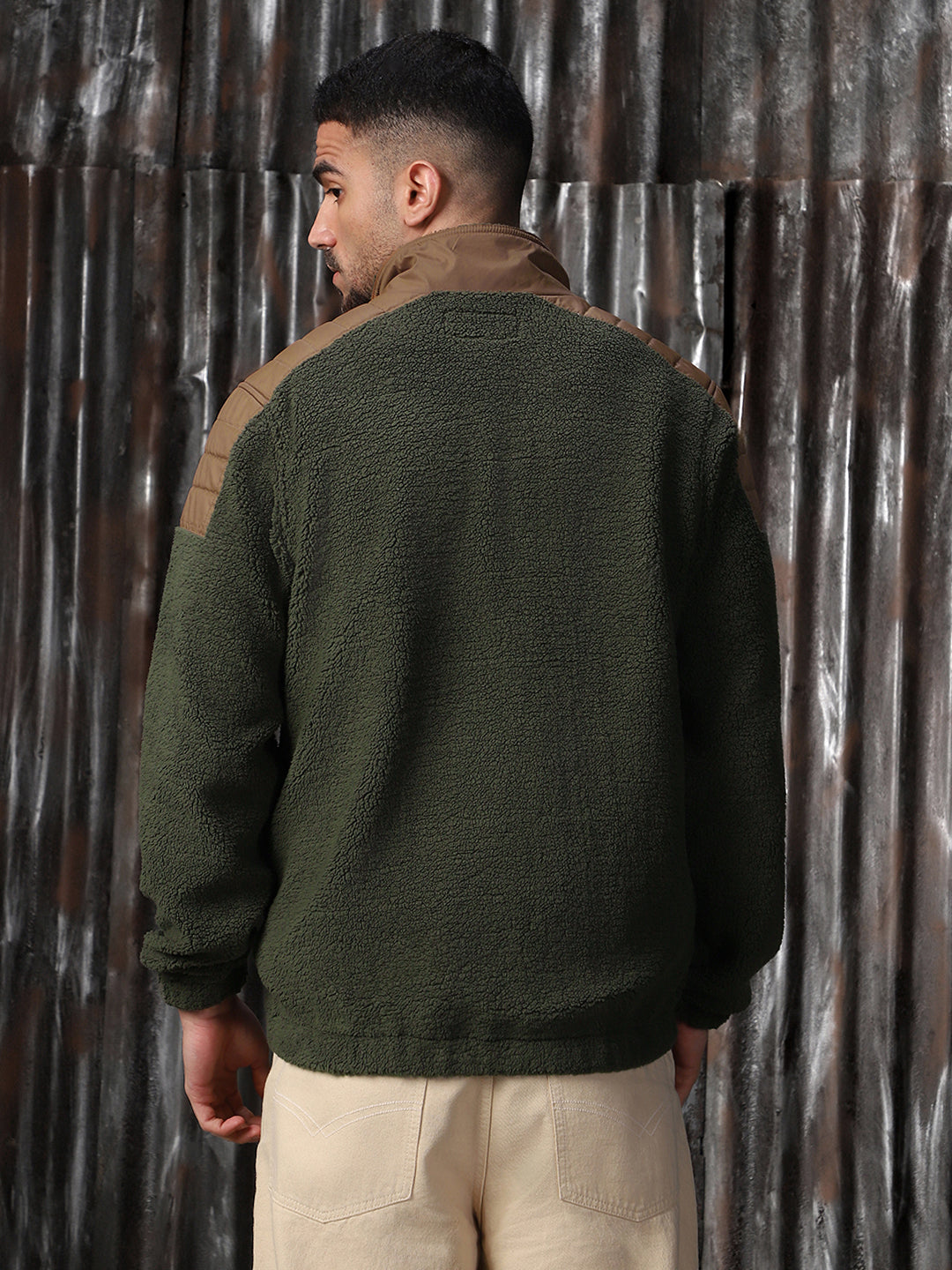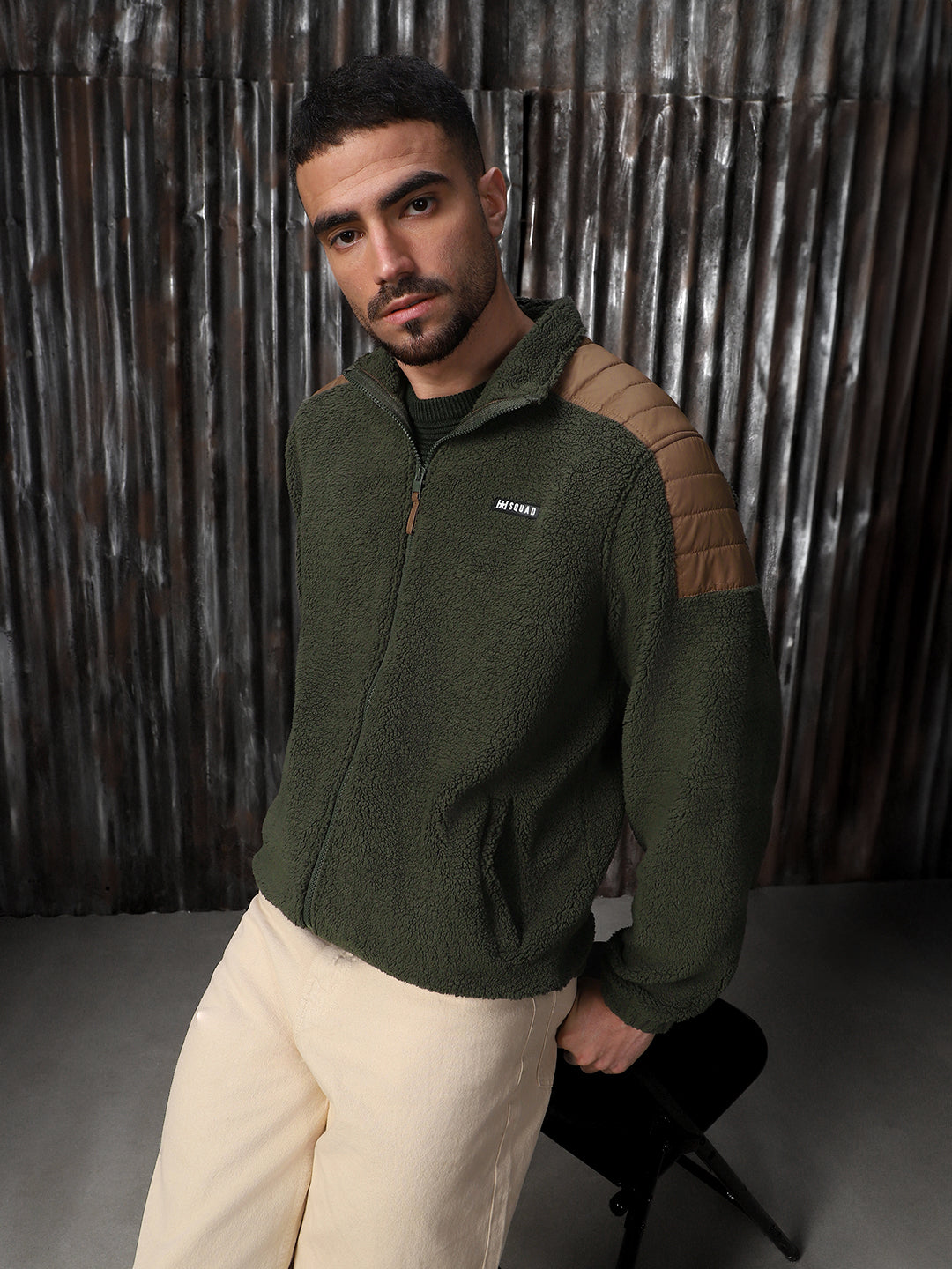 Men's Sherpa Relaxed Fit Front Open with shoulder Padding Sweatshirt - High Star x Dennis Lingo