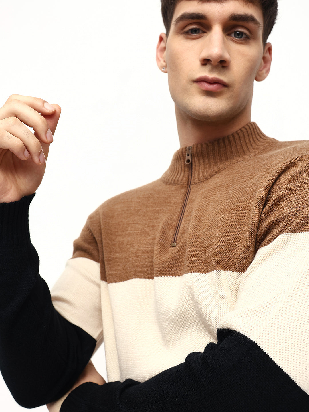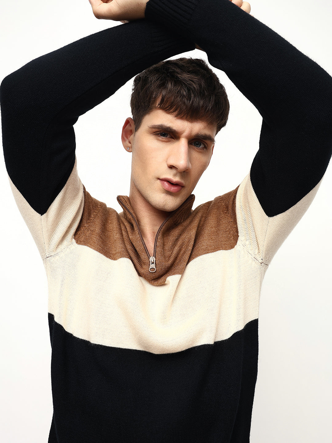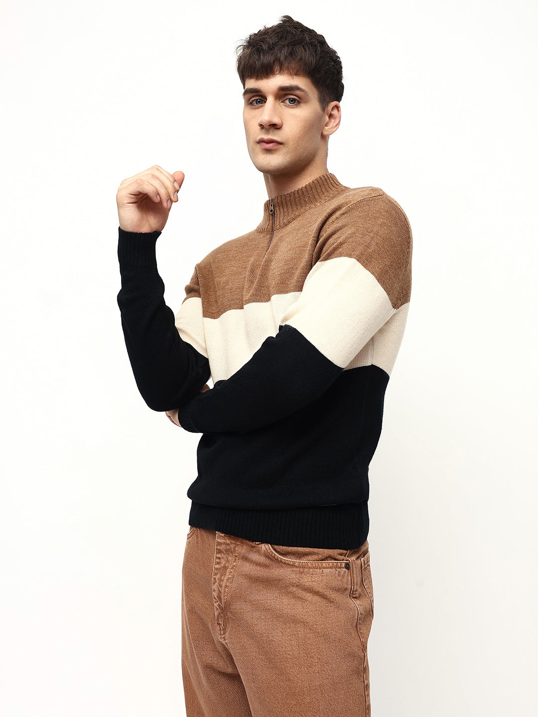 Men's Multi Color solid Mock Collar Full Sleeves Sweater