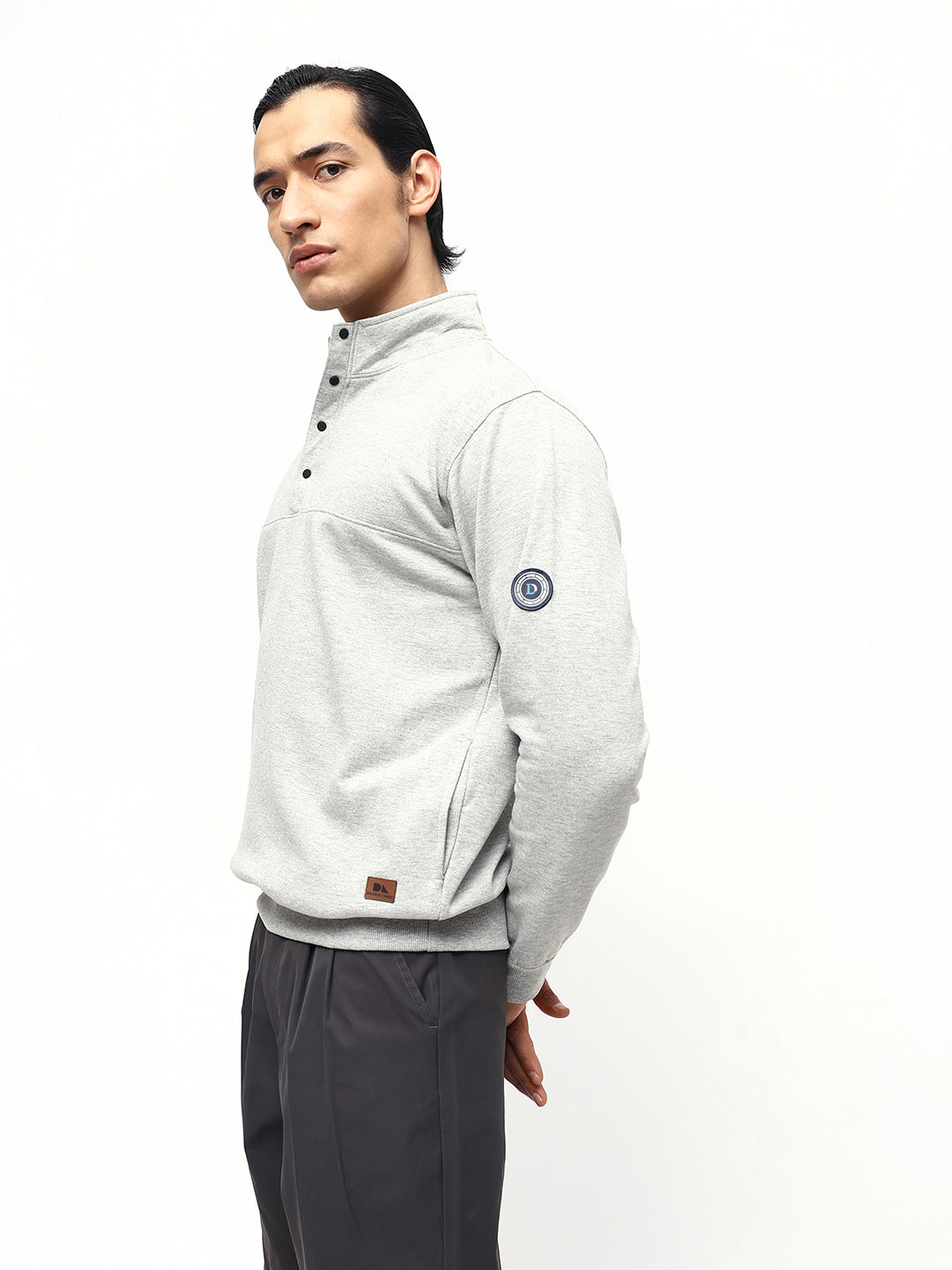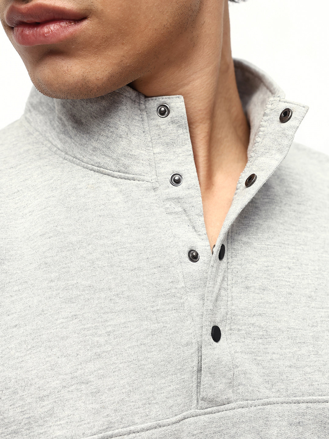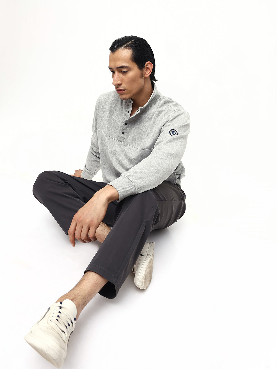 Men's Grey Mock Neck Full Sleeves Relaxed Fit Sweatshirt