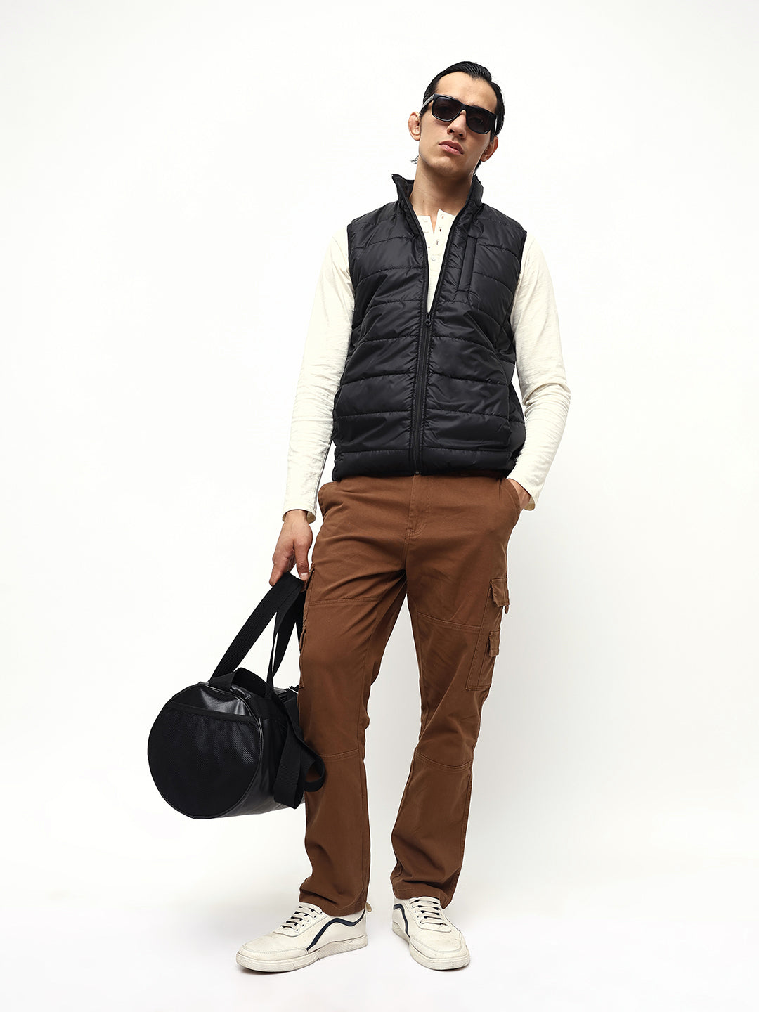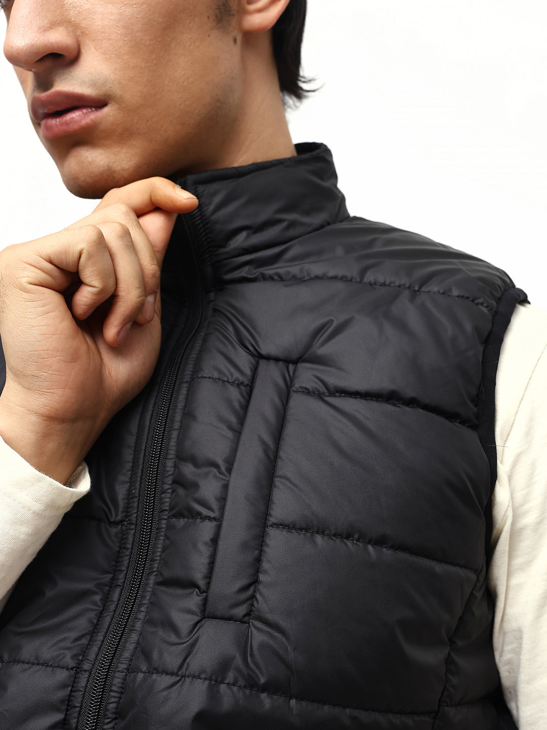 Men's Mock Neck Regular Fit Colourblocked Gilet Jacket