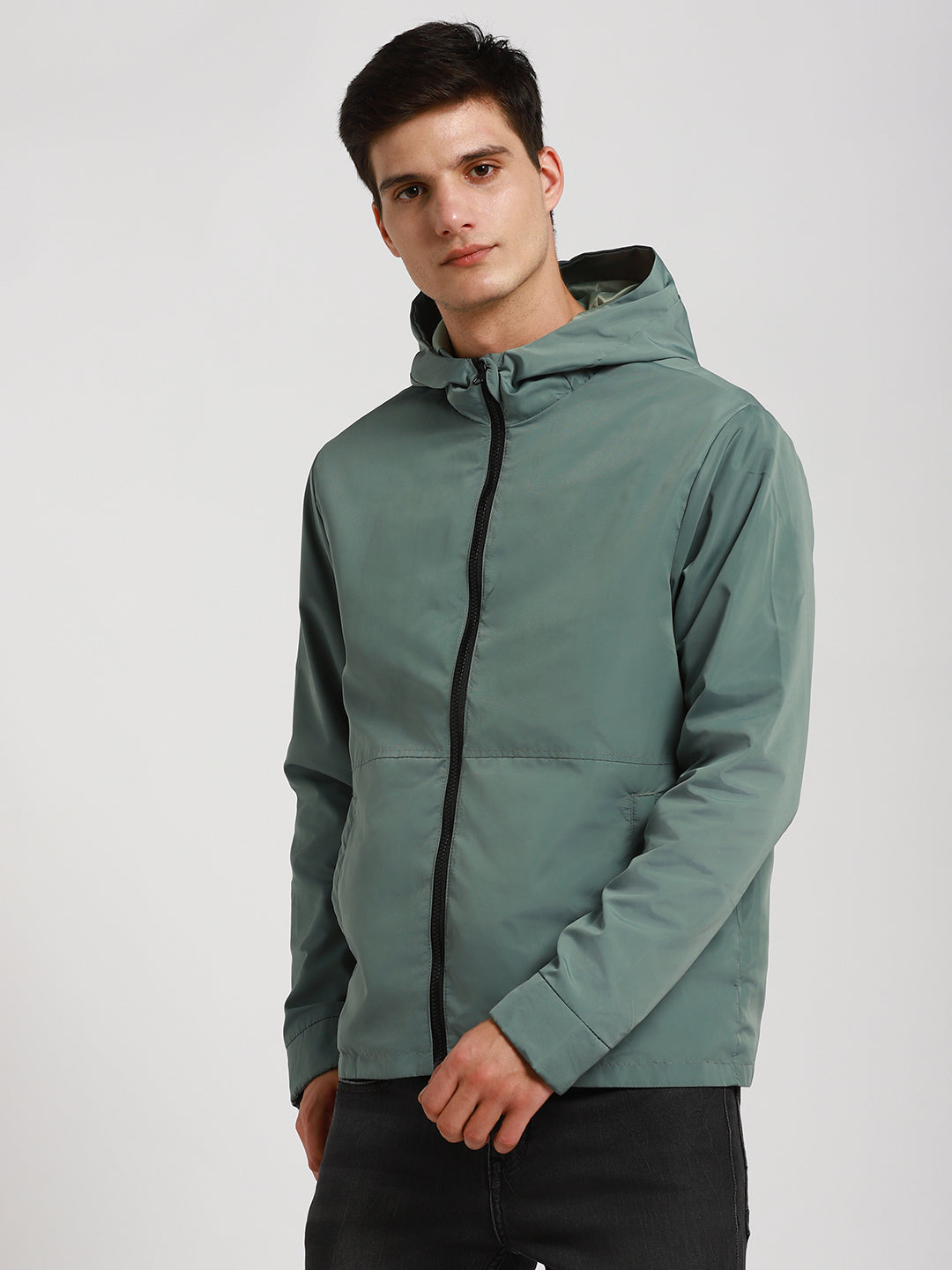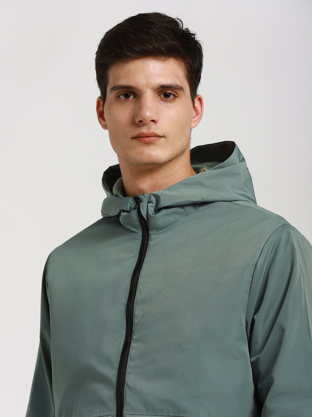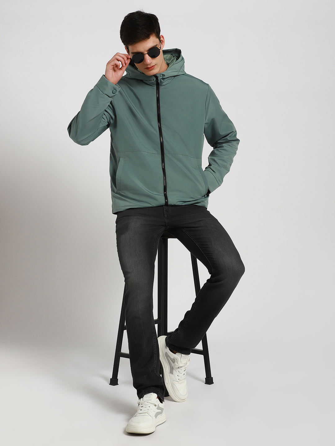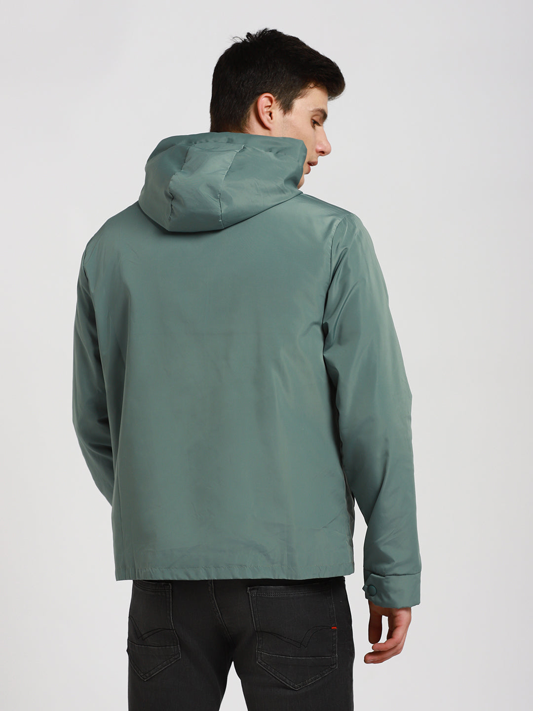 Men's Hooded Regular Fit Solid Grass Green Jackets