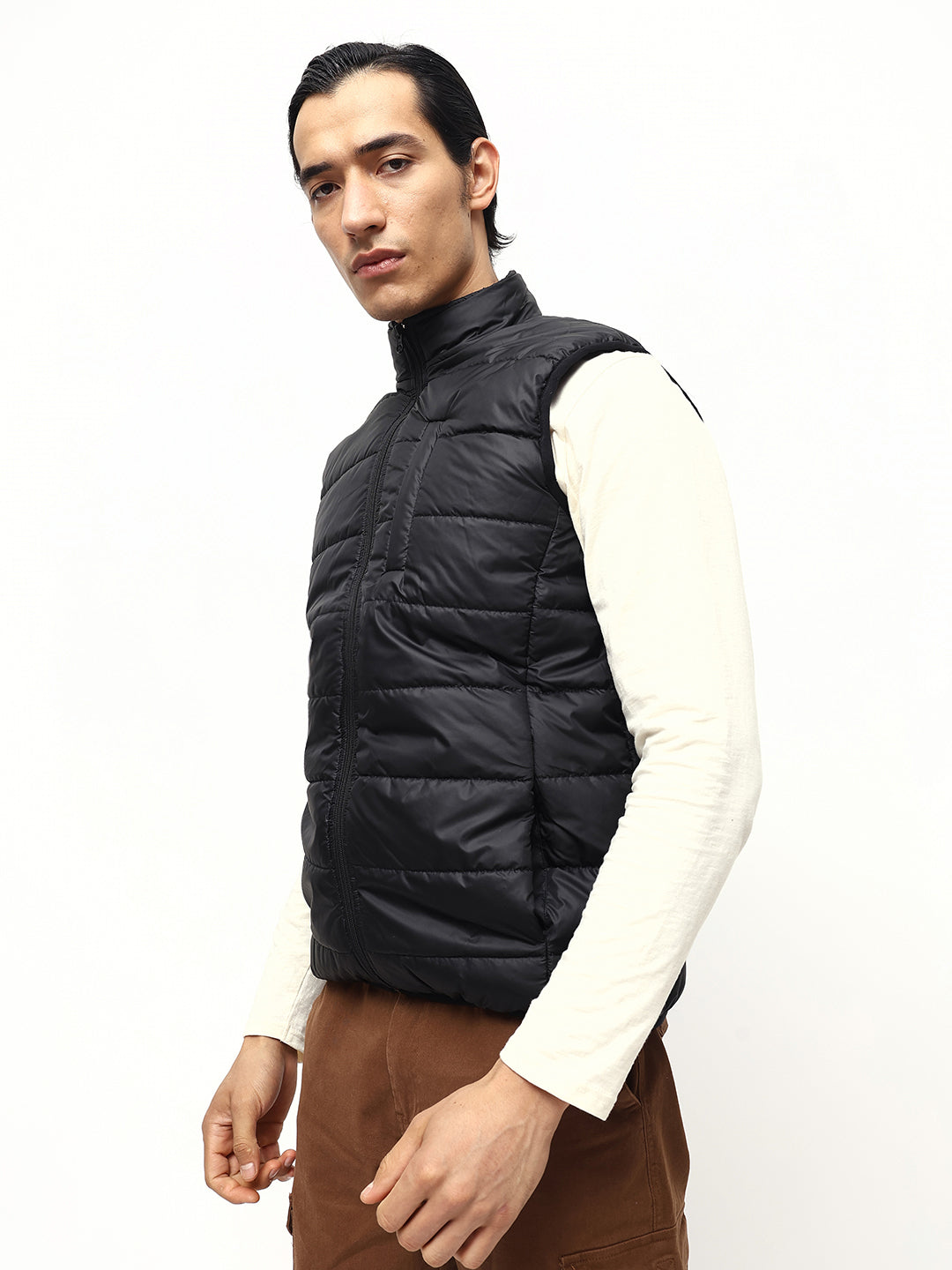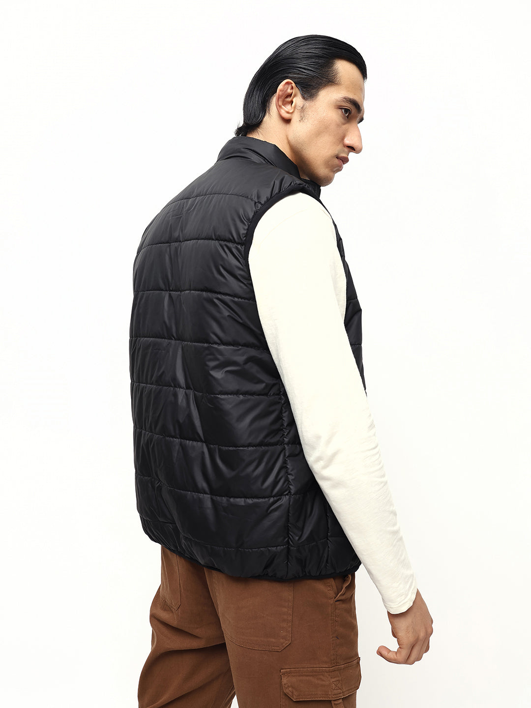 Men's Mock Collar Regular Fit Solid Sleeveless Quilted Jacket
