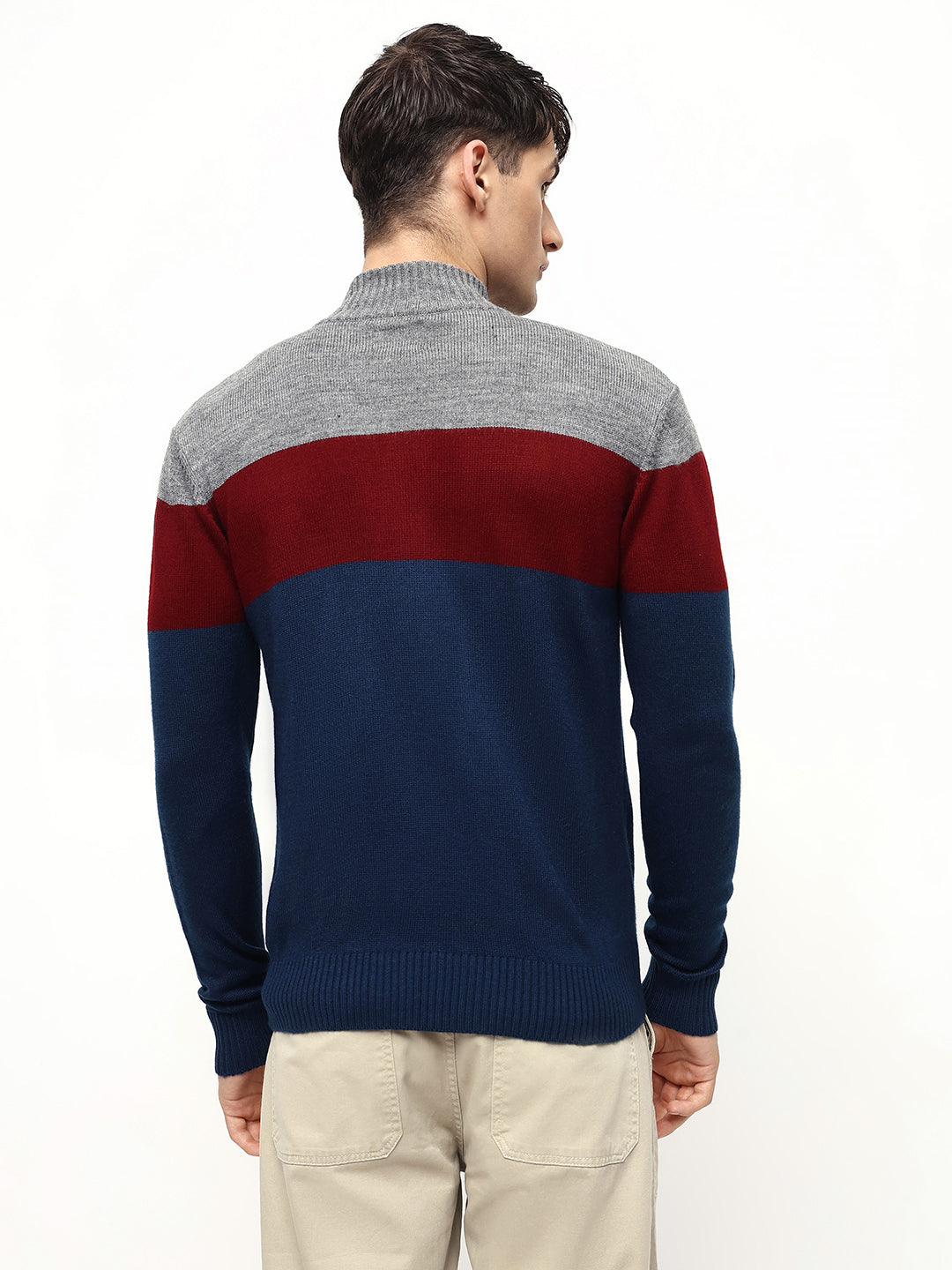 Men's Grey Mock Neck Full Sleeves Slim Fit Pullover Sweater