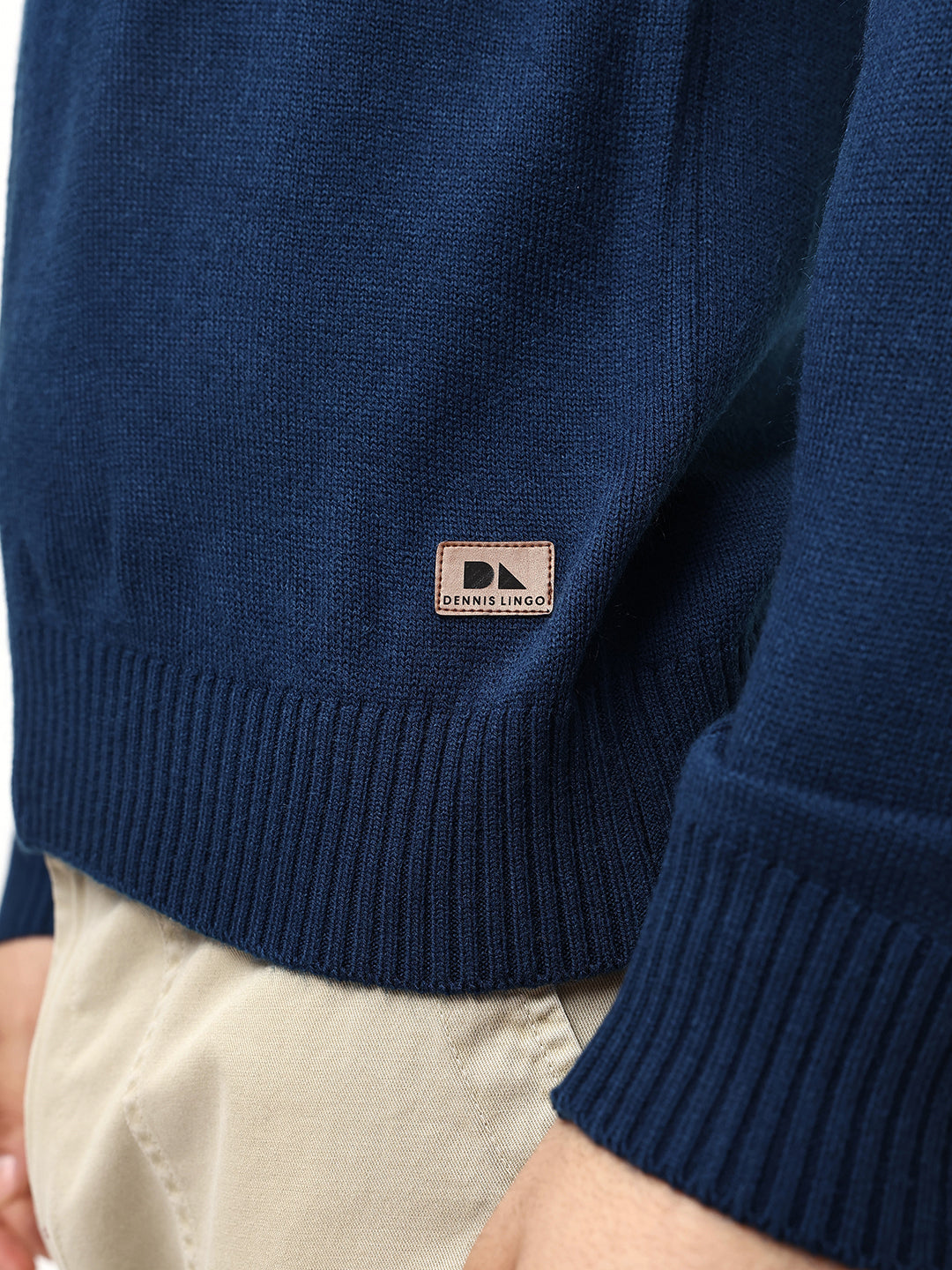 Men's High Neck Regular Fit Solid Fleece Navy Jackets
