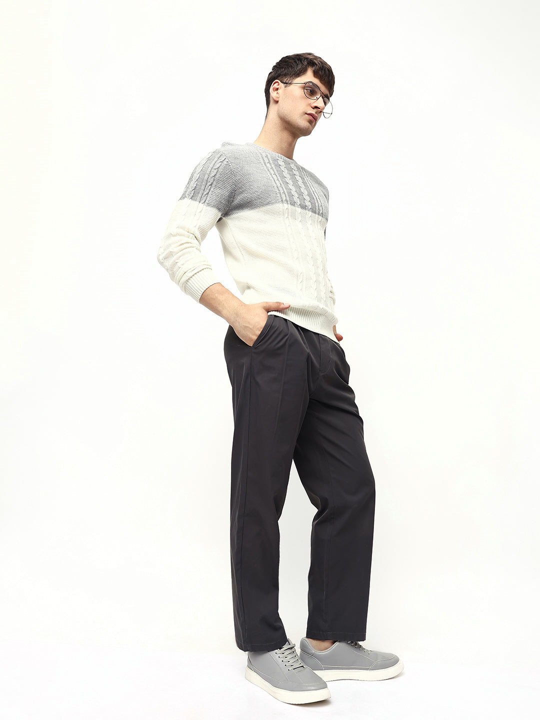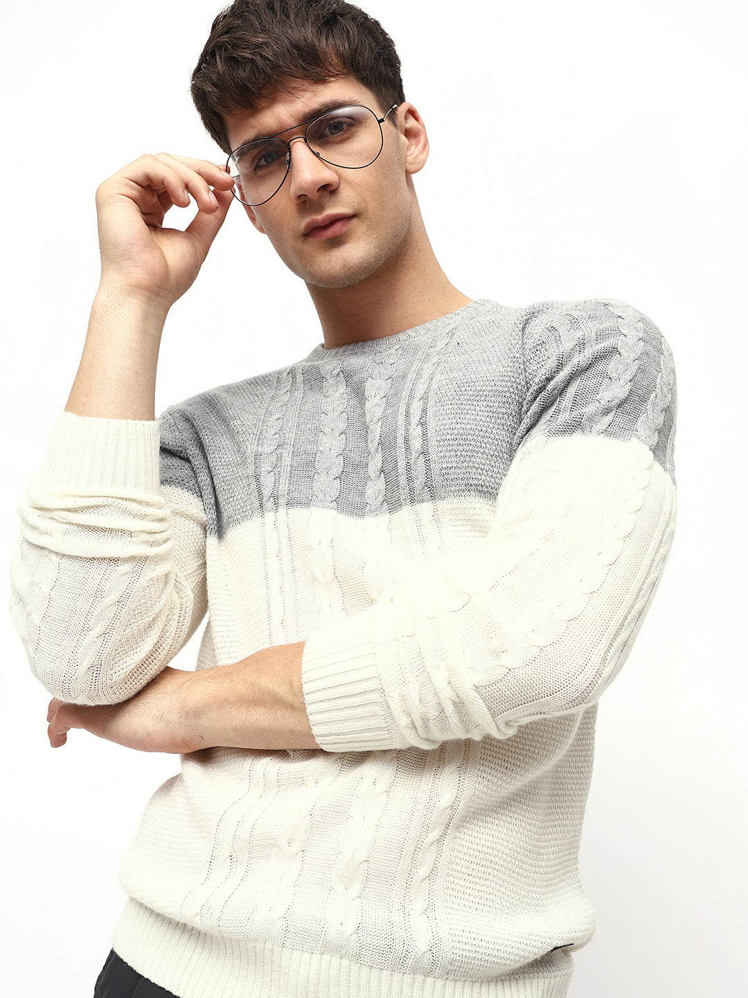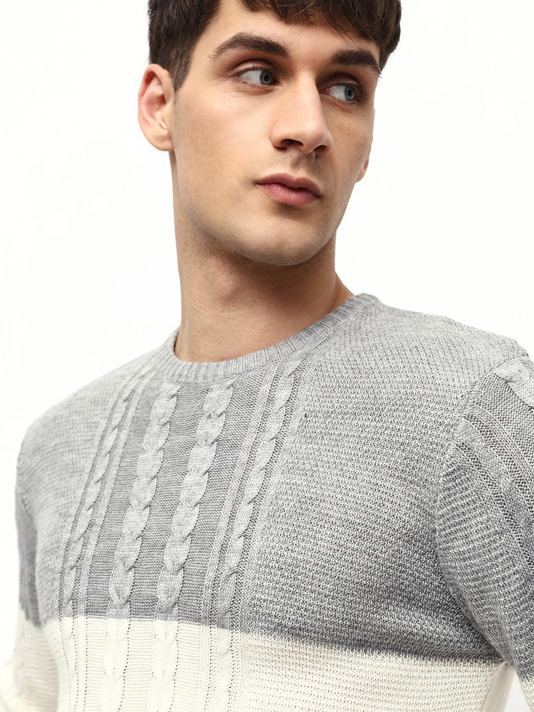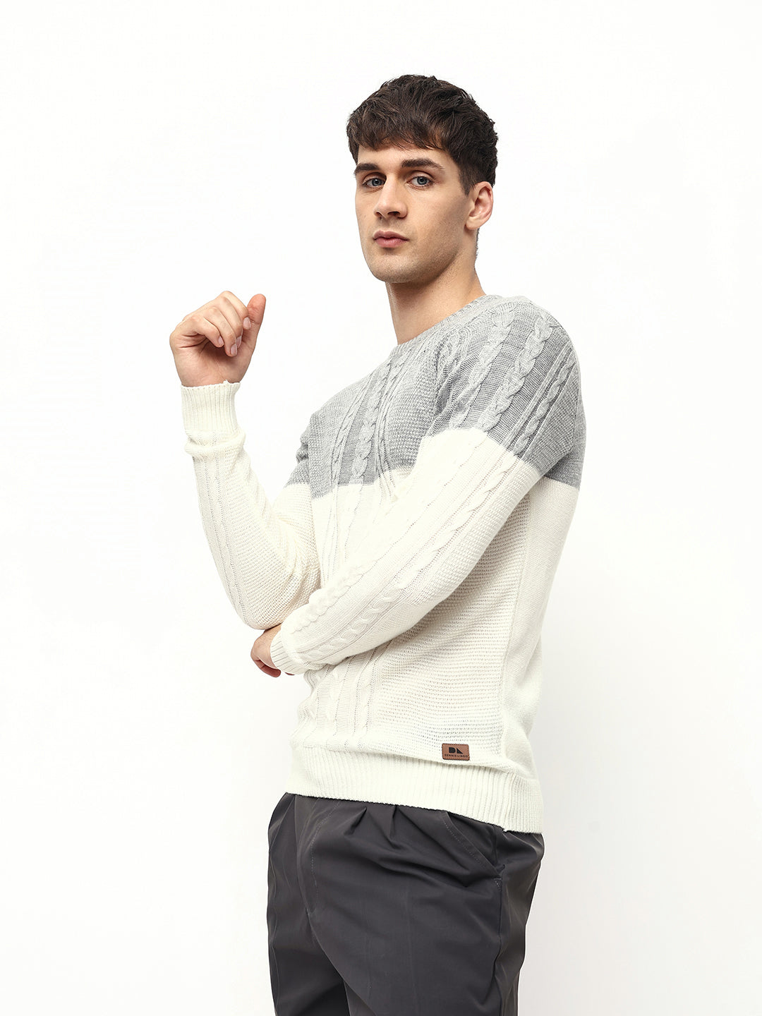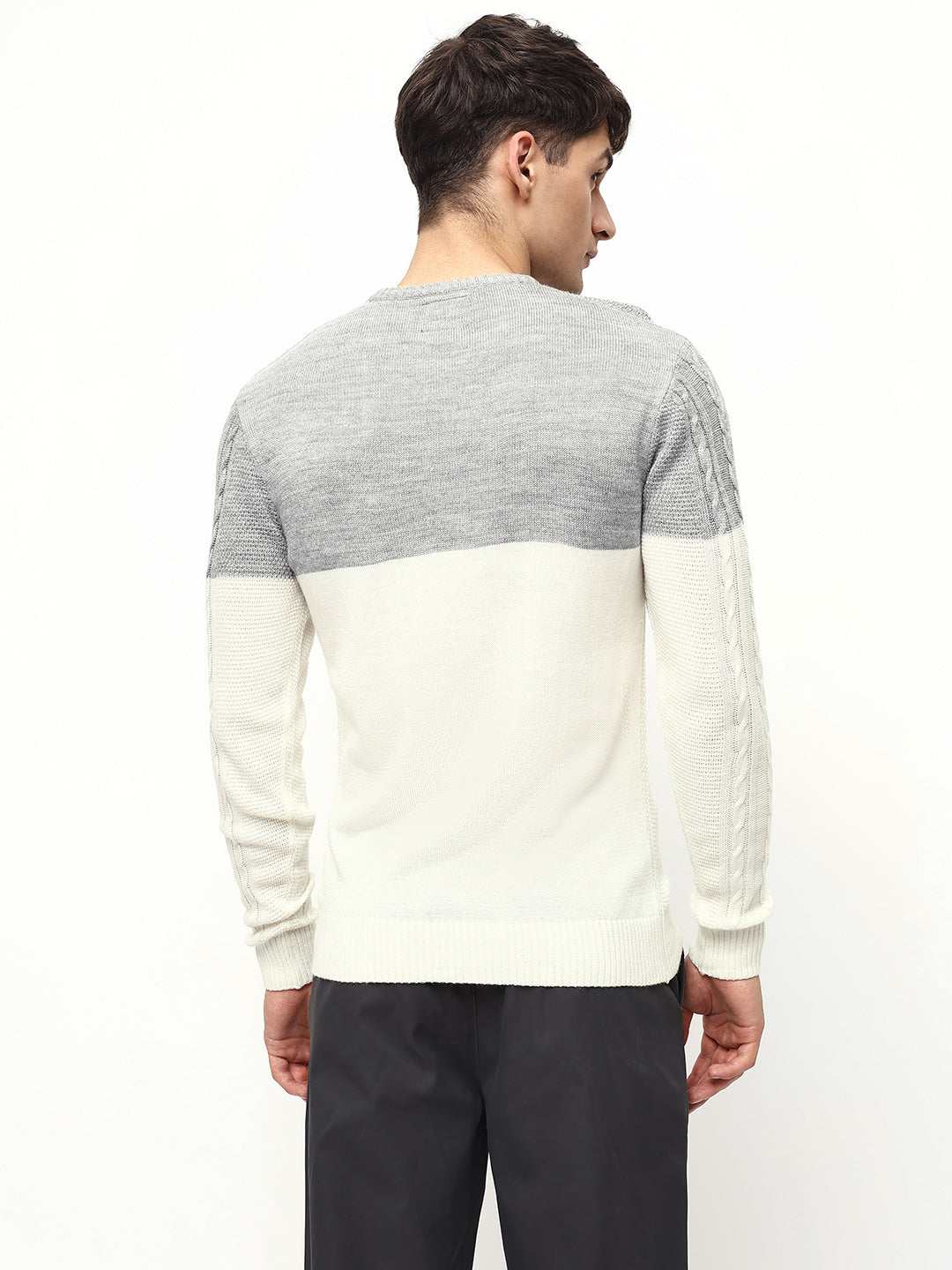Men's Off-White ColorBlock Round Neck Pullover Sweater