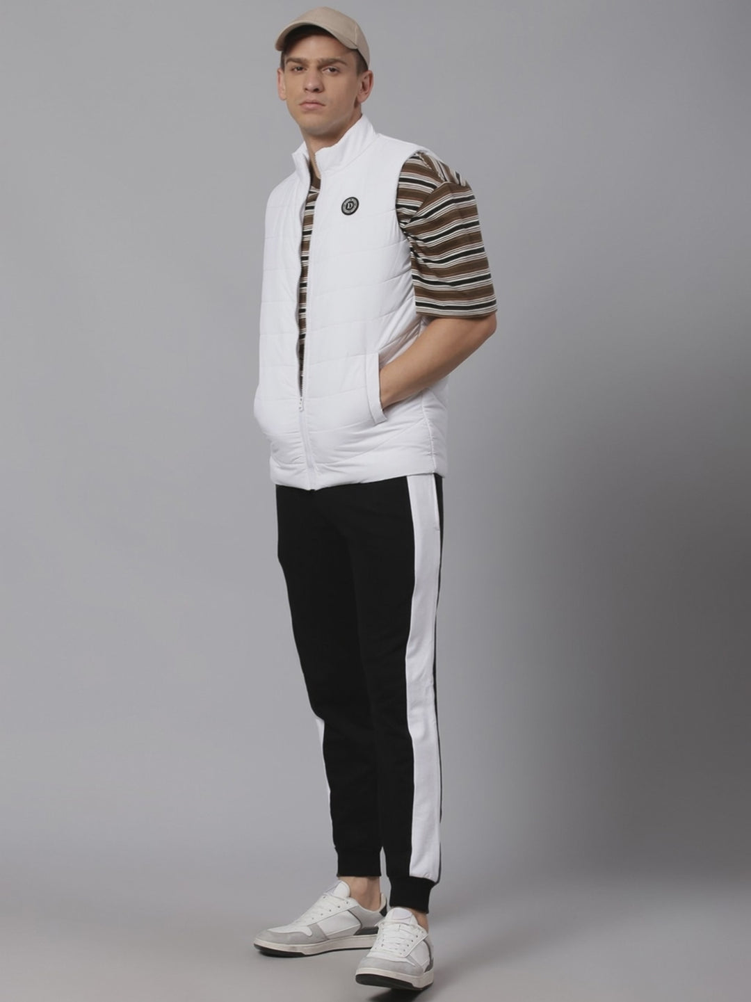 Mens Sleeveless Jacket - Lightweight Casual Winterwear (White)