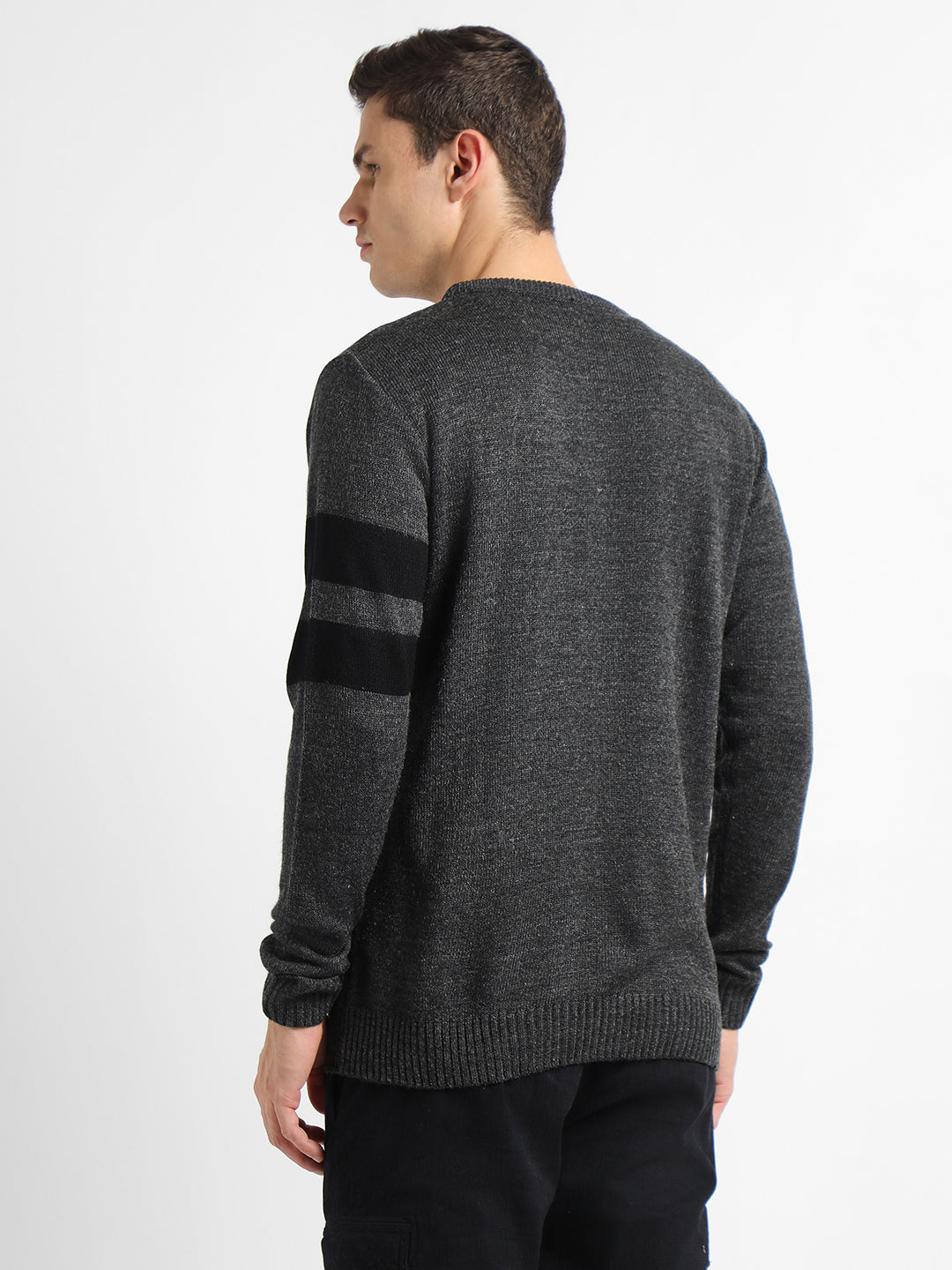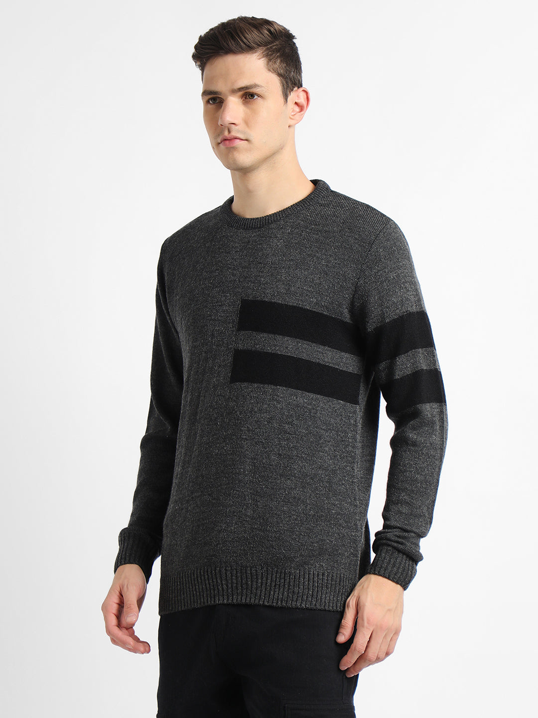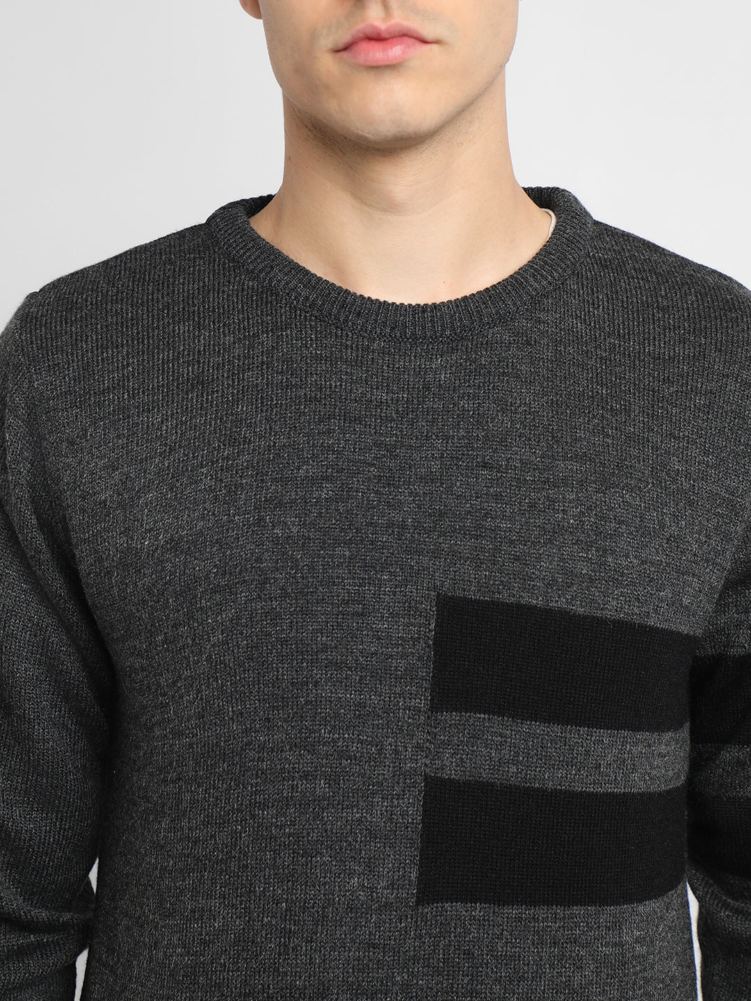 Men's Grey Striped Round neck pullover sweater