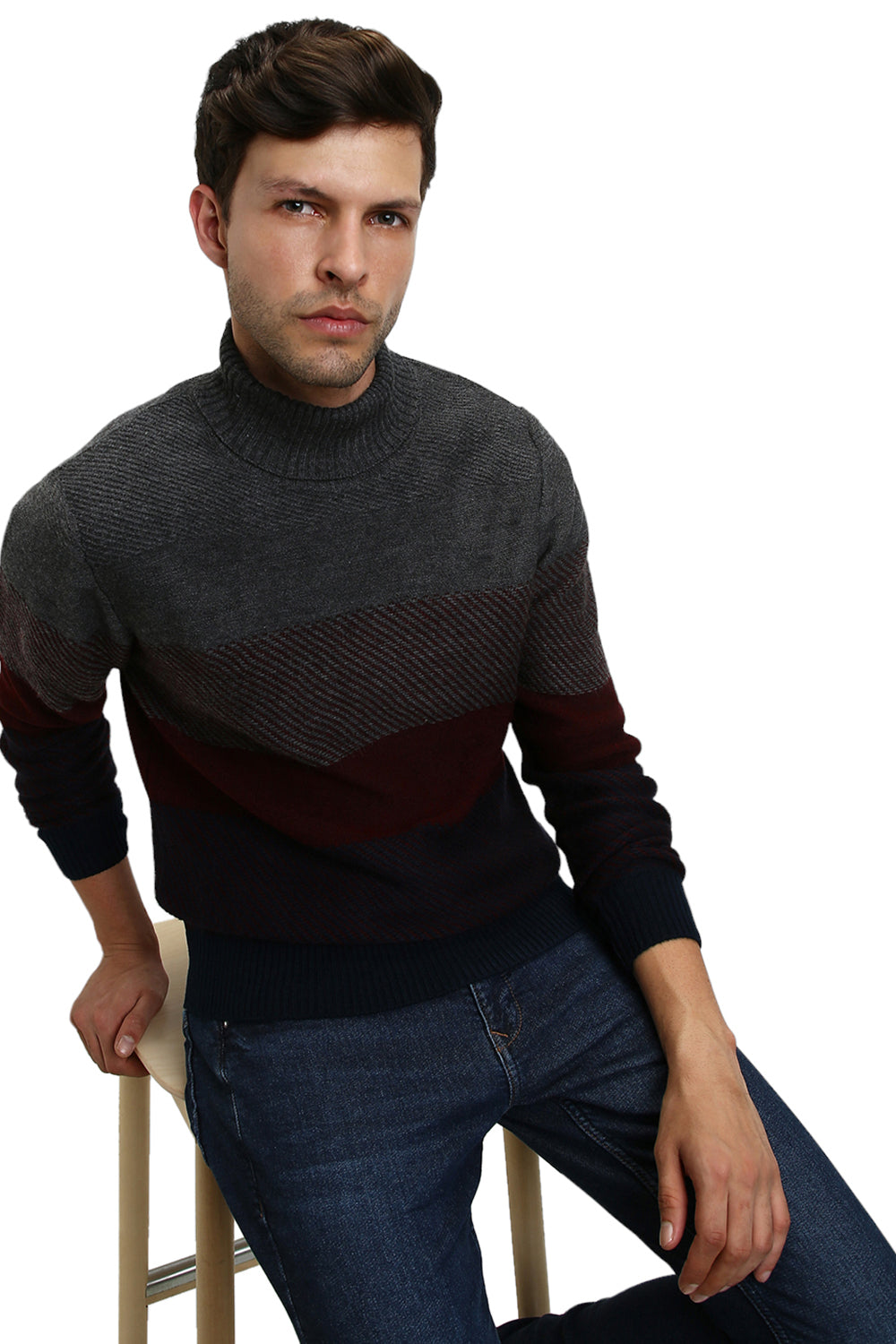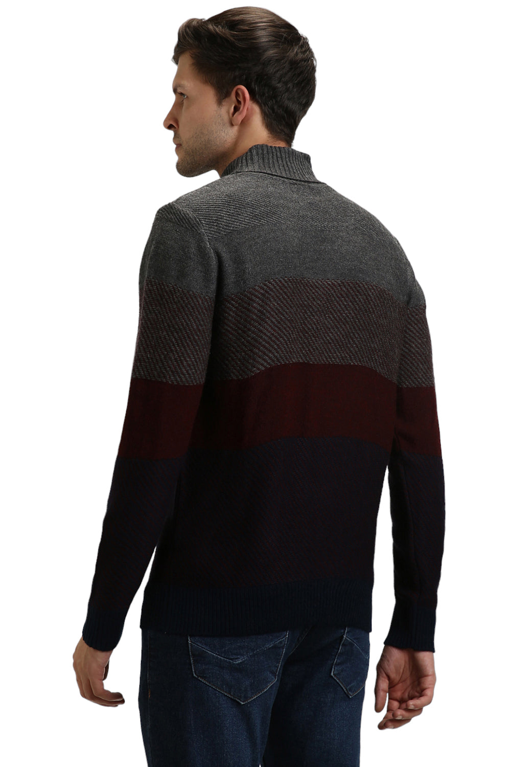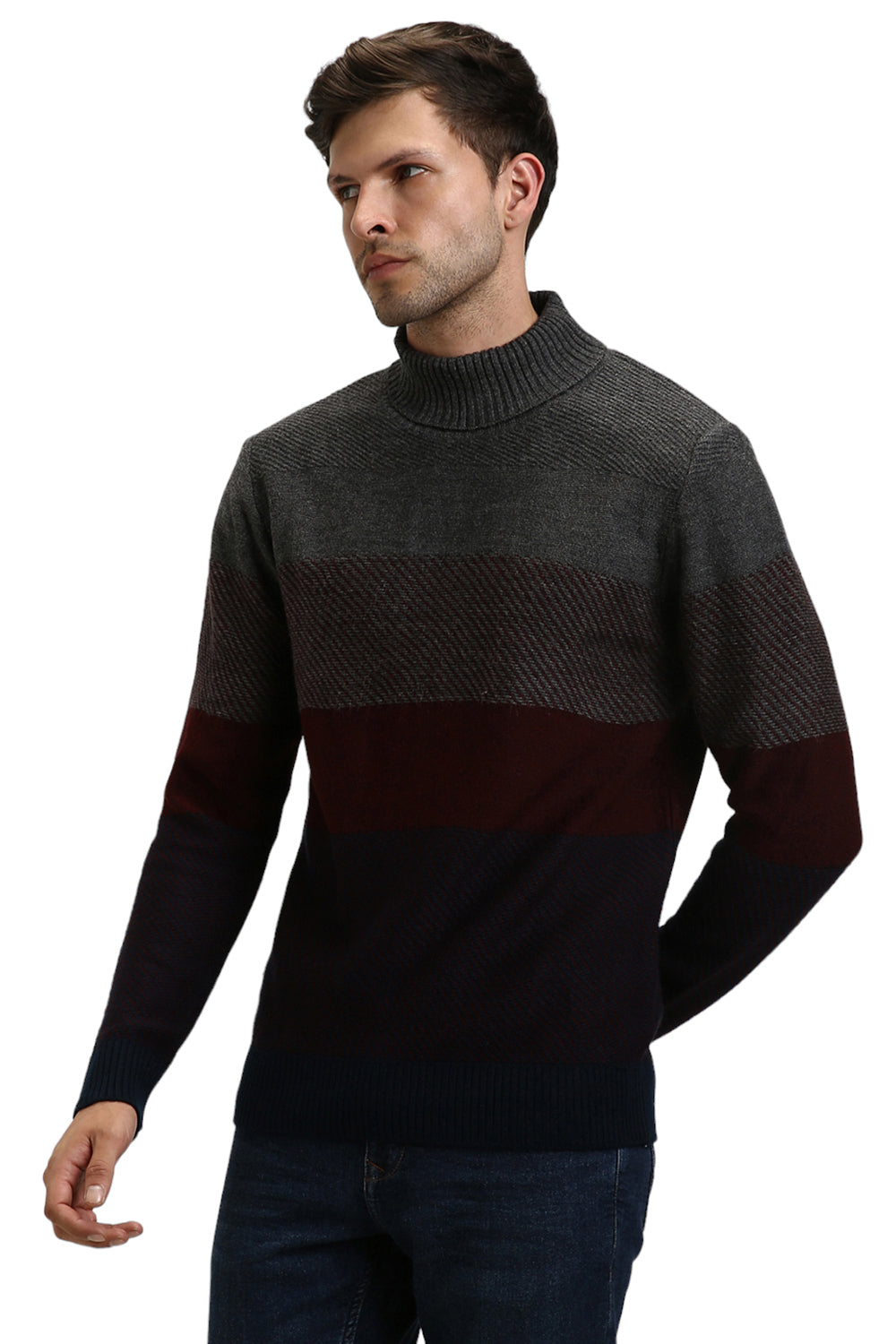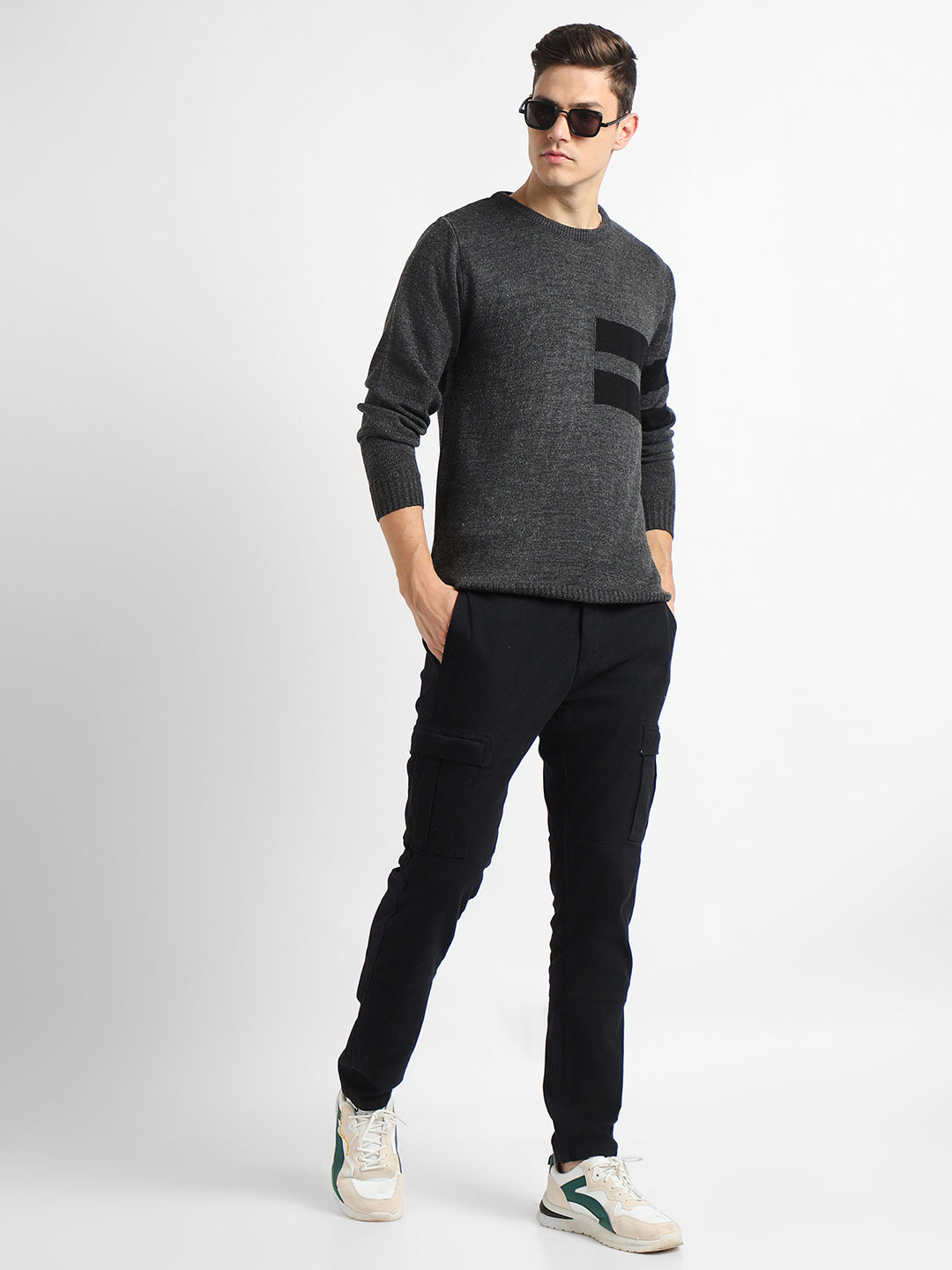 Men's Grey Striped Round neck pullover sweater