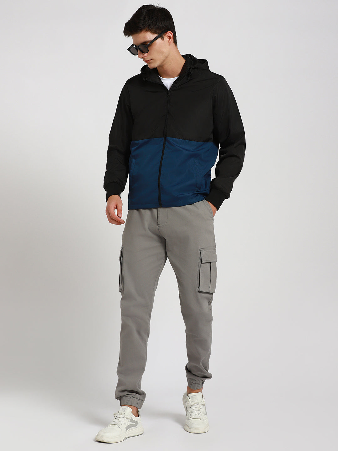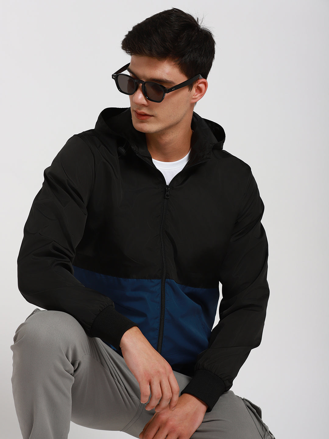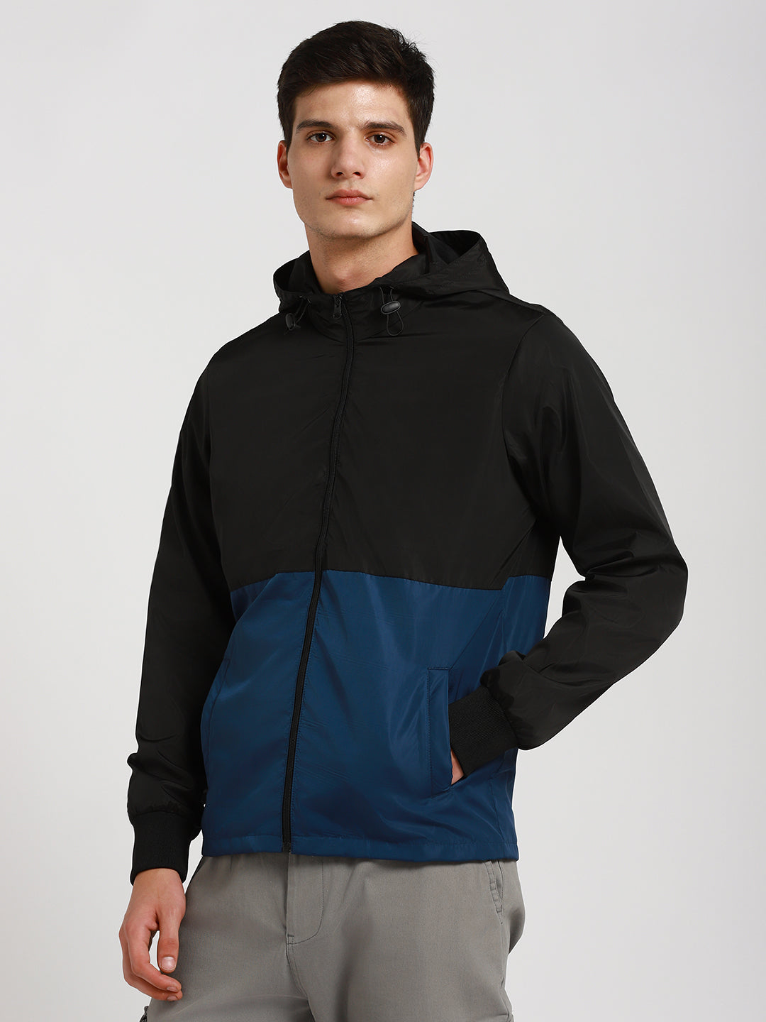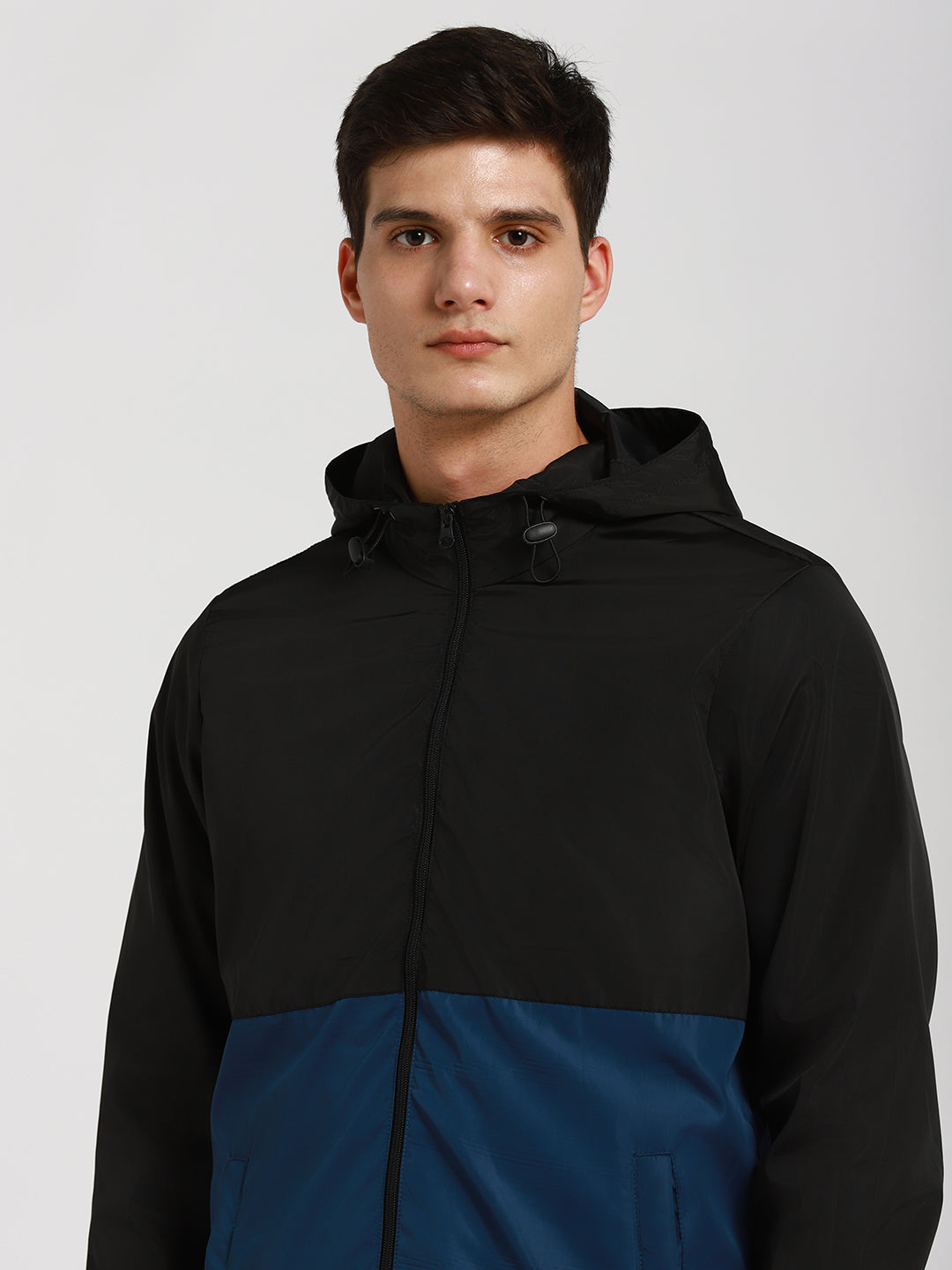 Men's Hooded Regular Fit Colourblock Blue Jackets