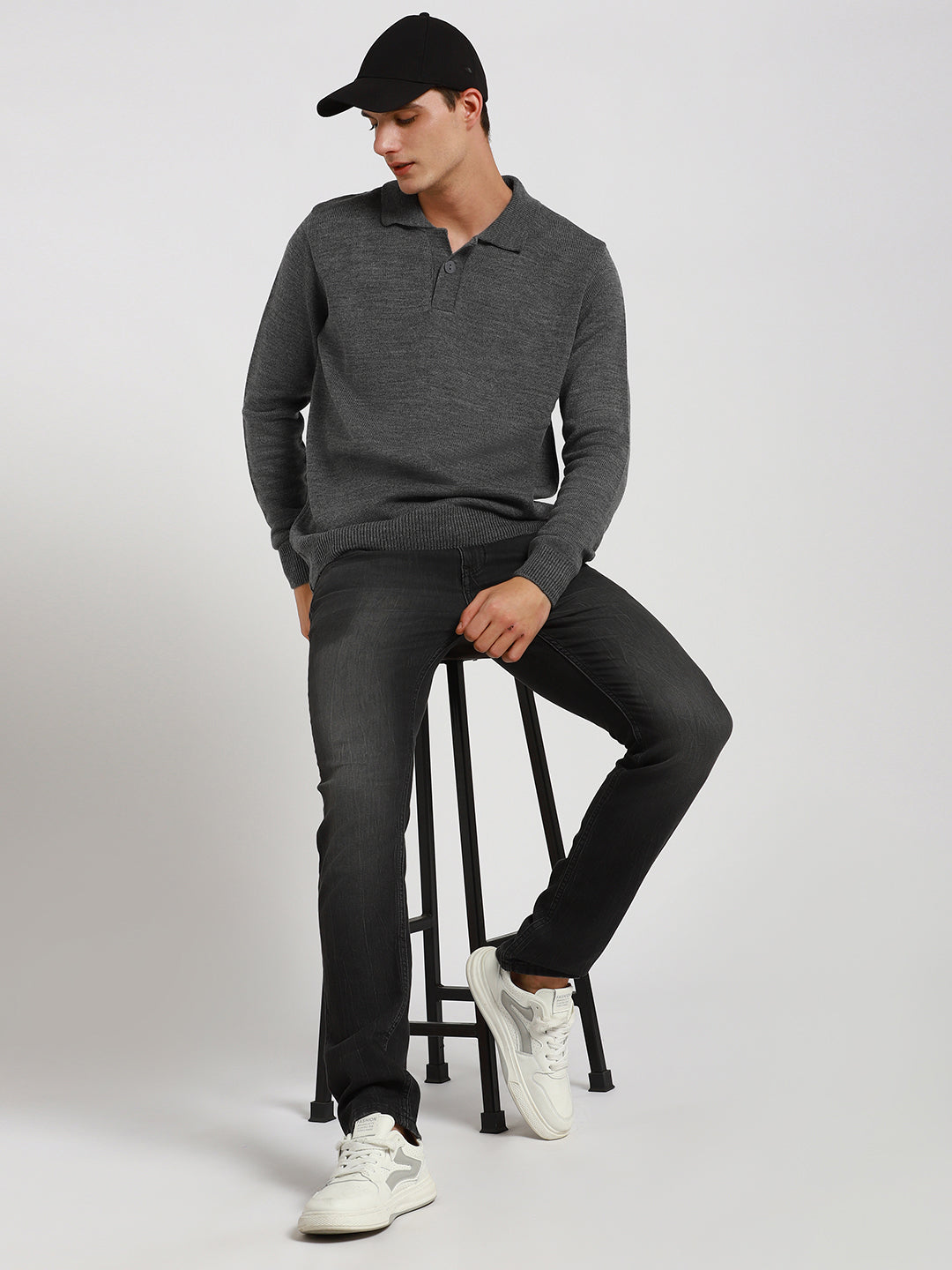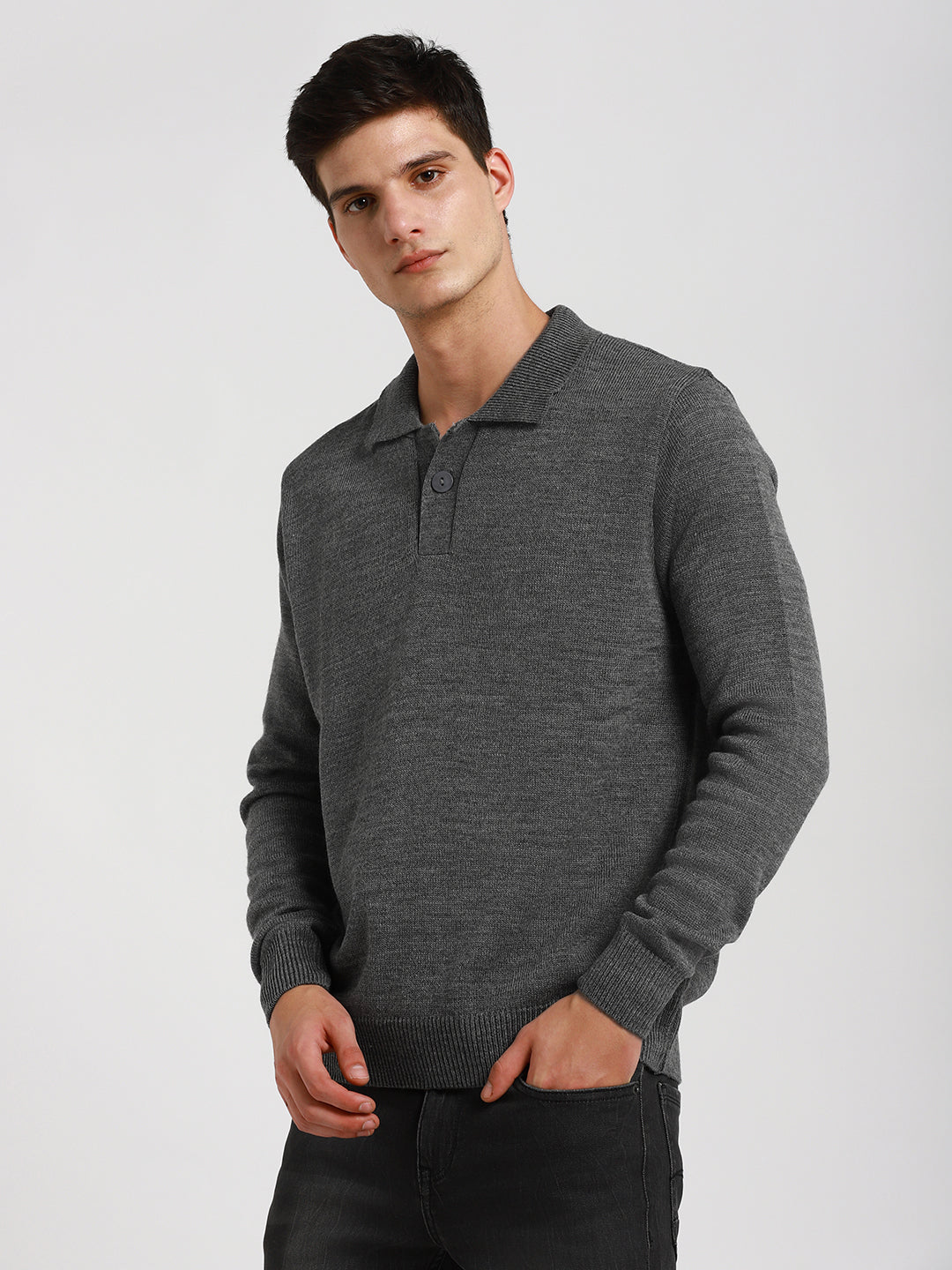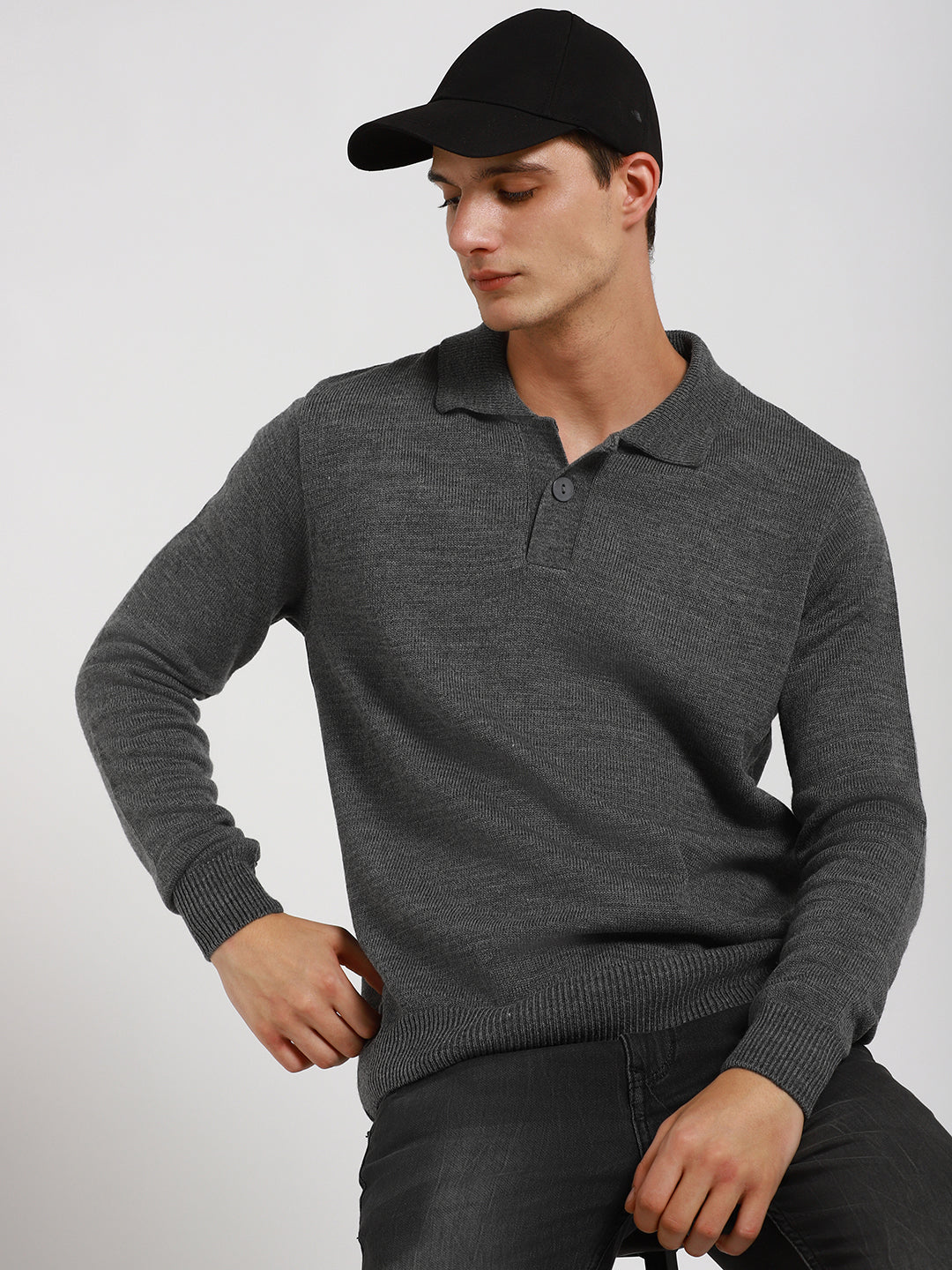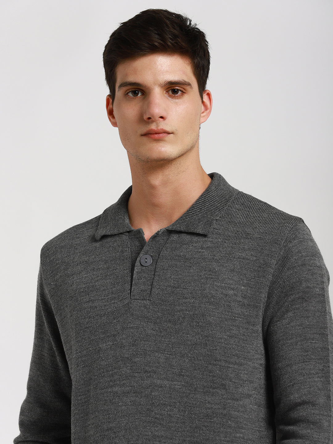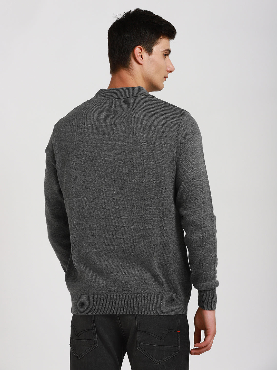 Men's Collar Regular Fit Solid Mid Grey Mel Sweater