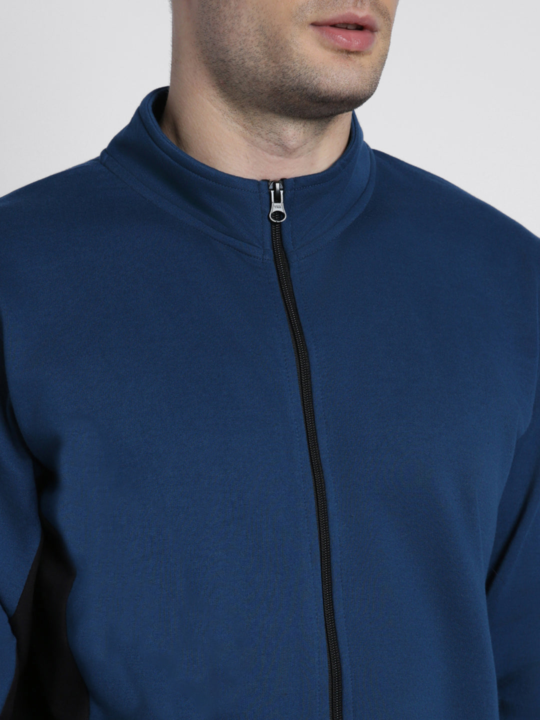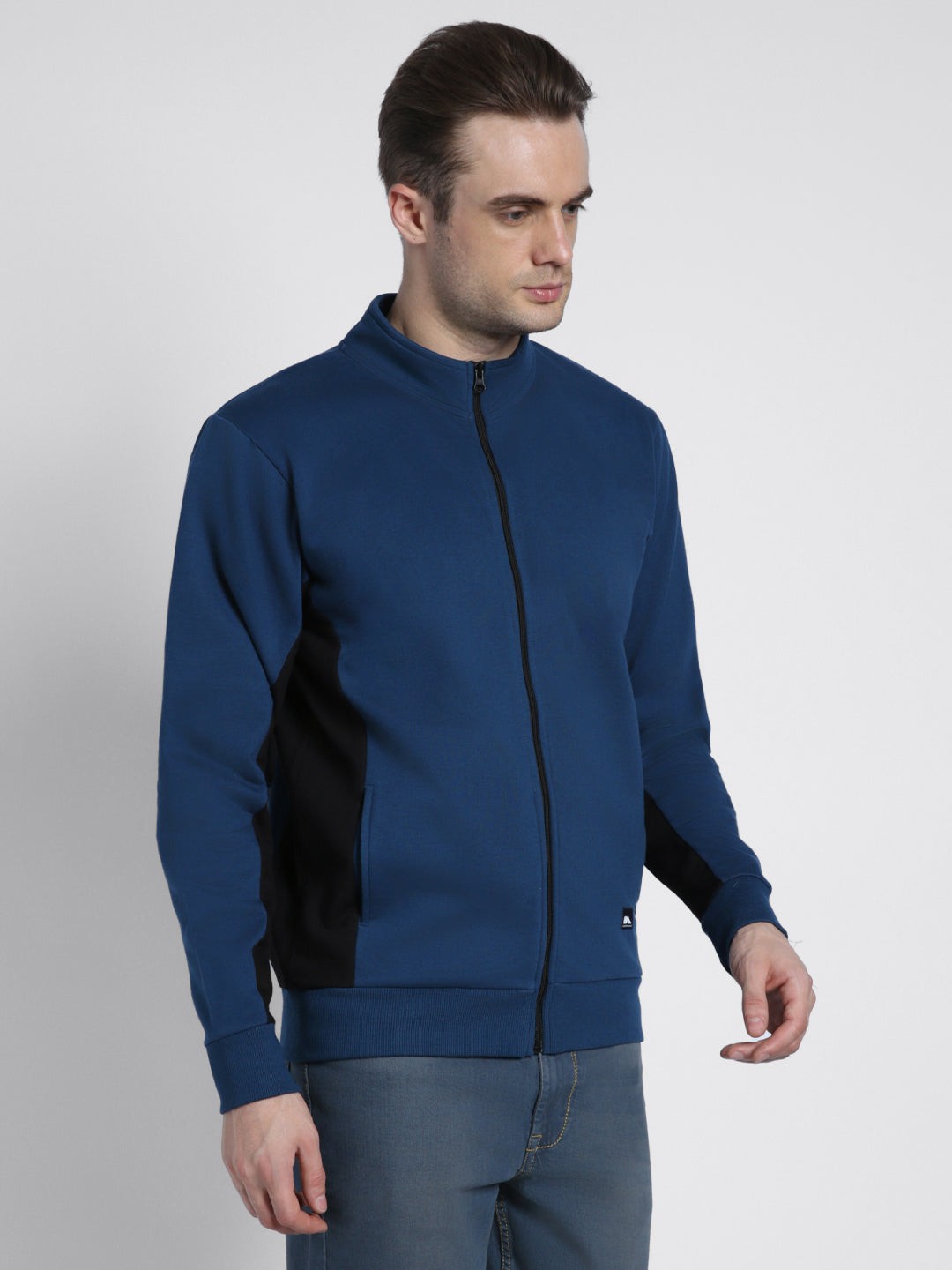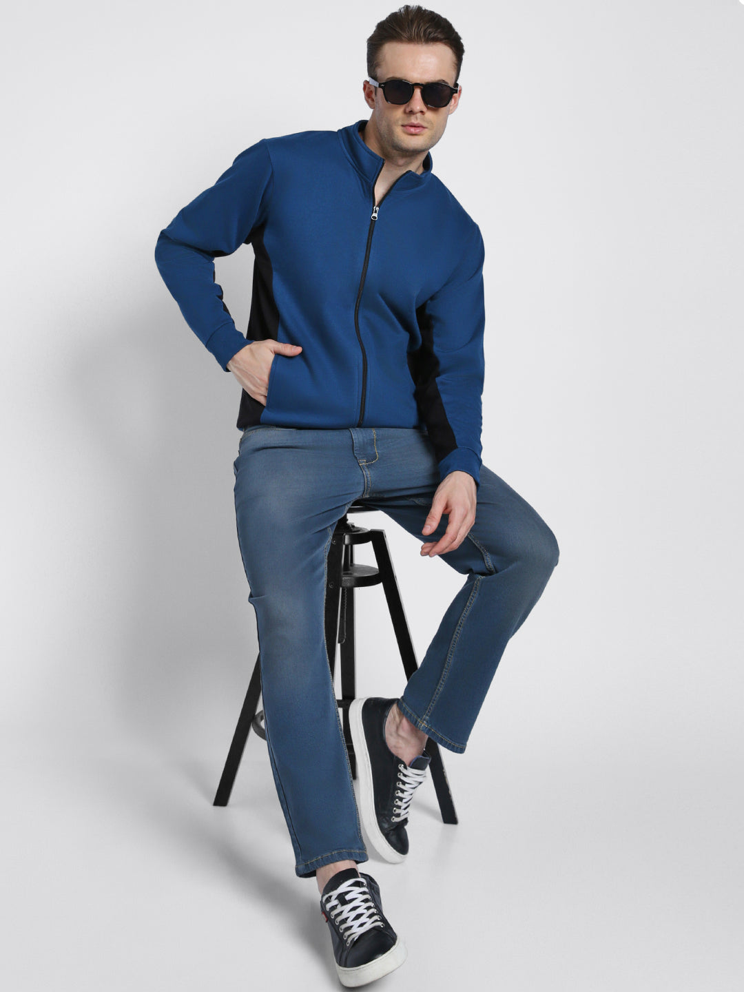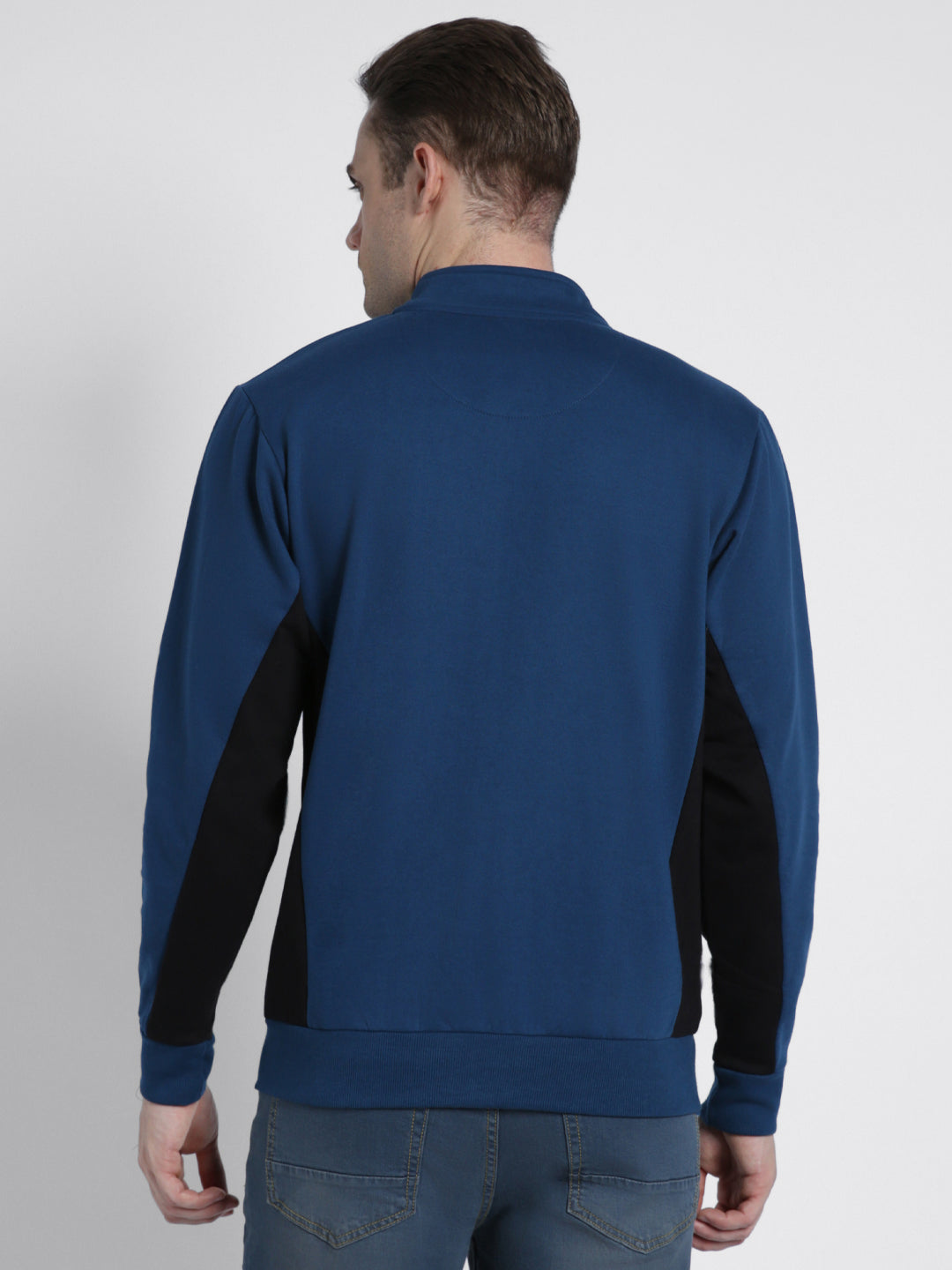 Men's Mock Neck Regular Fit Panelling Blue Sweatshirt