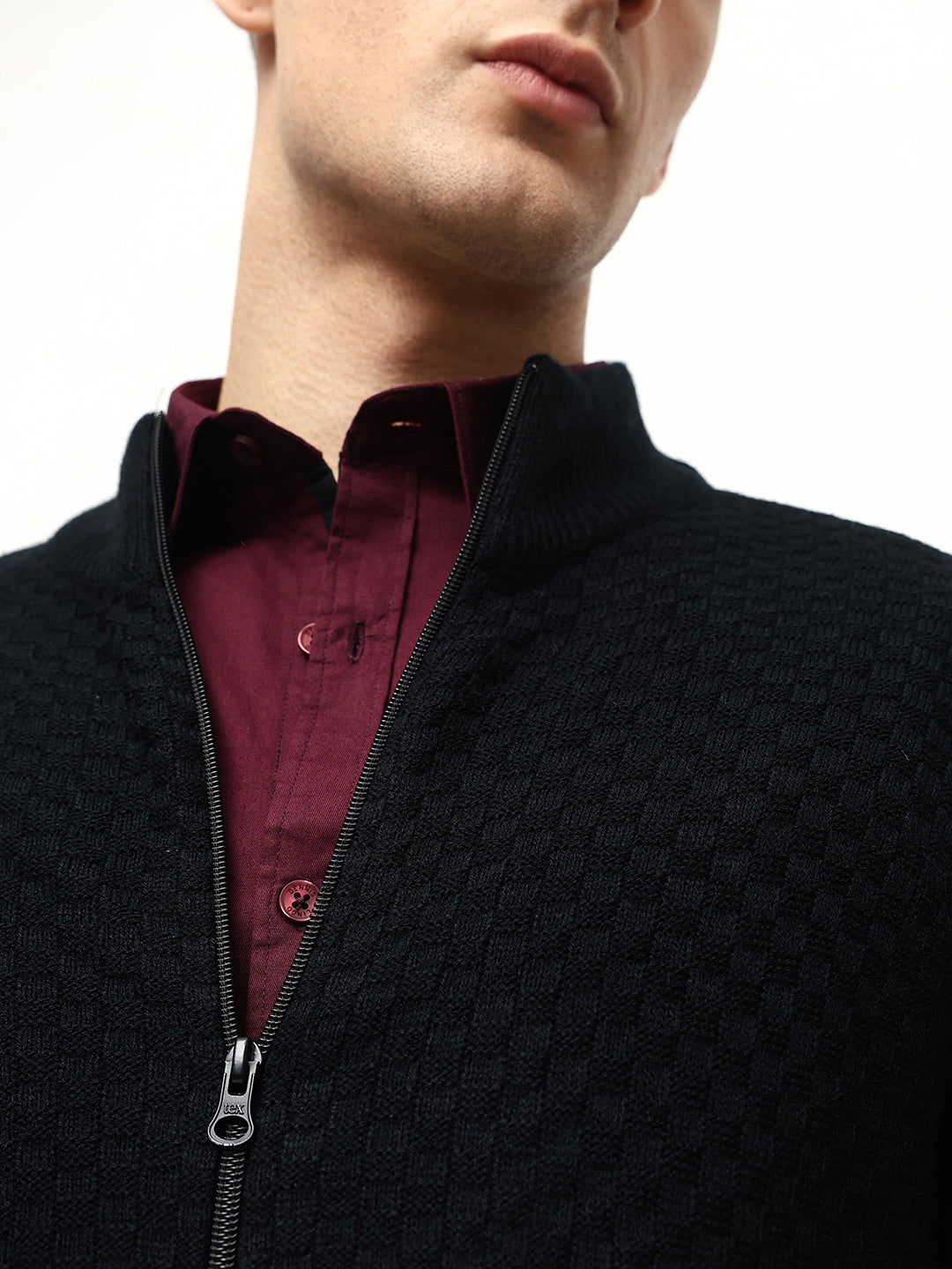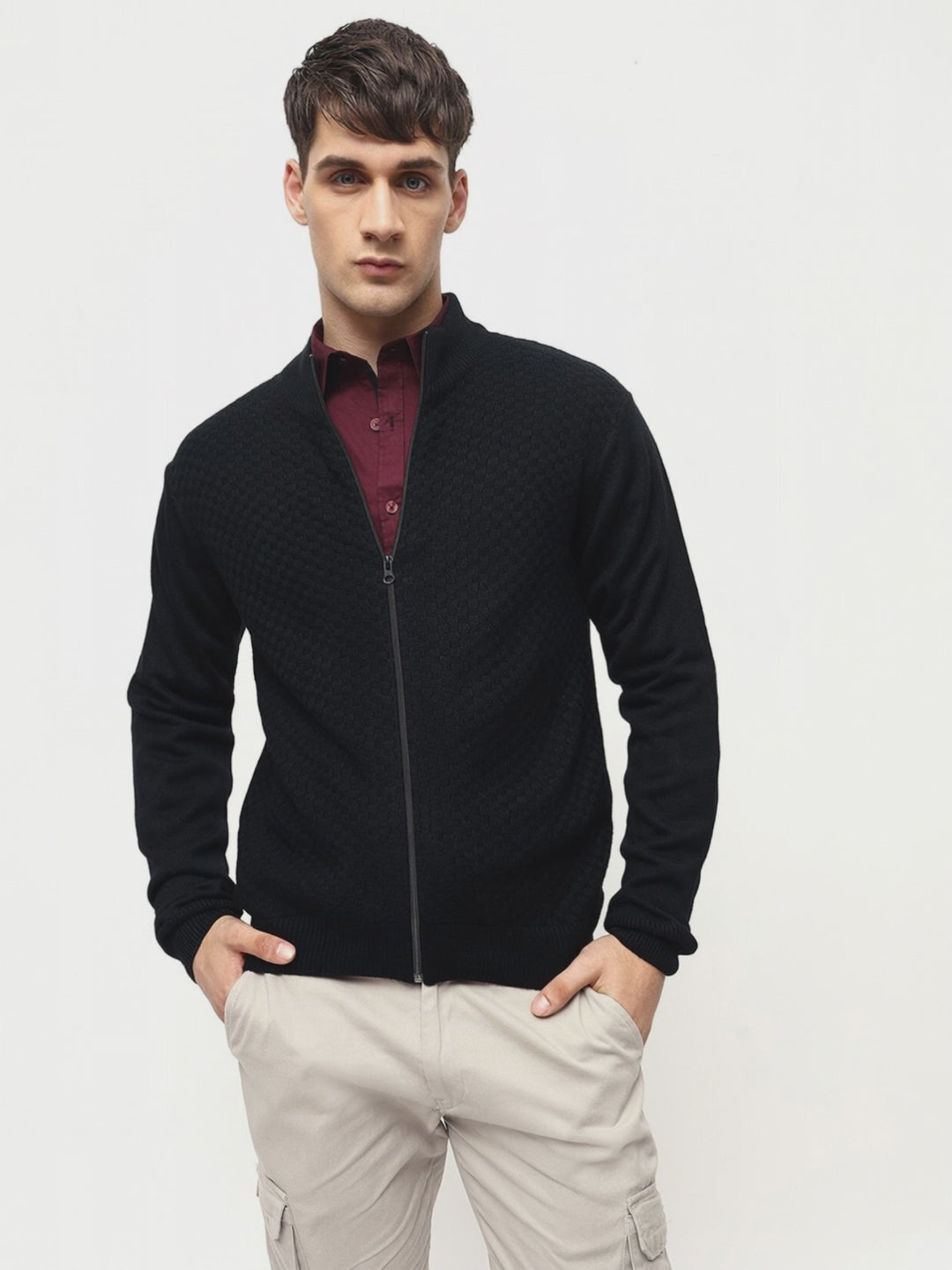 Men's Maroon Solid Mock Neck Full Sleeves Sweatshirt