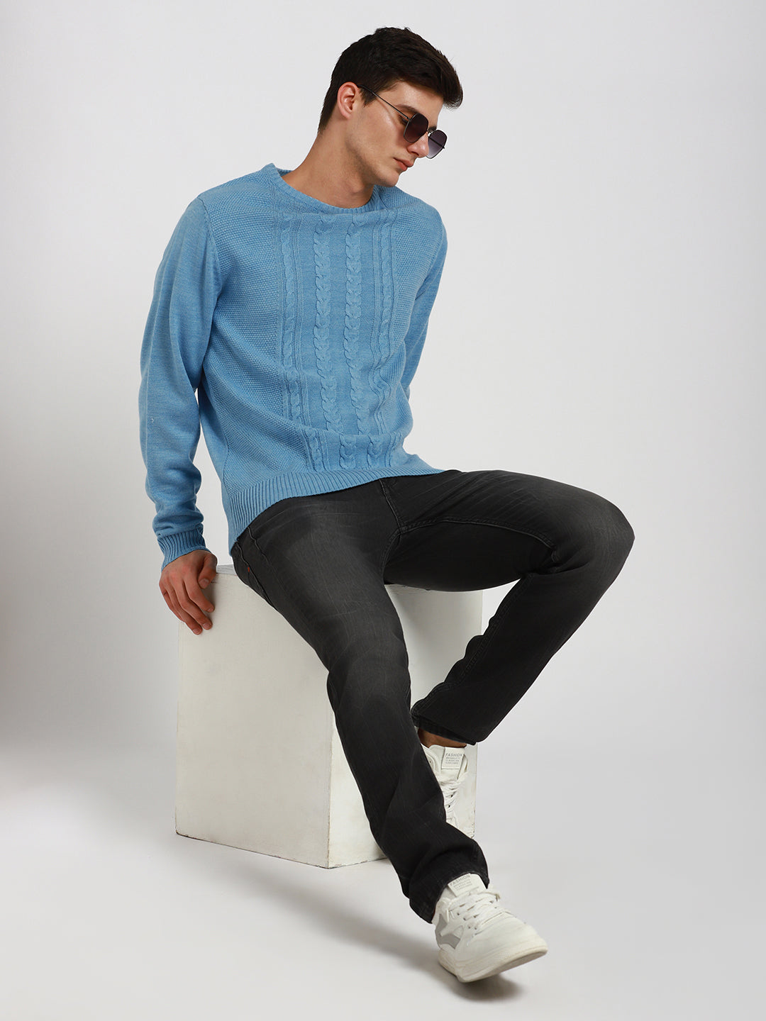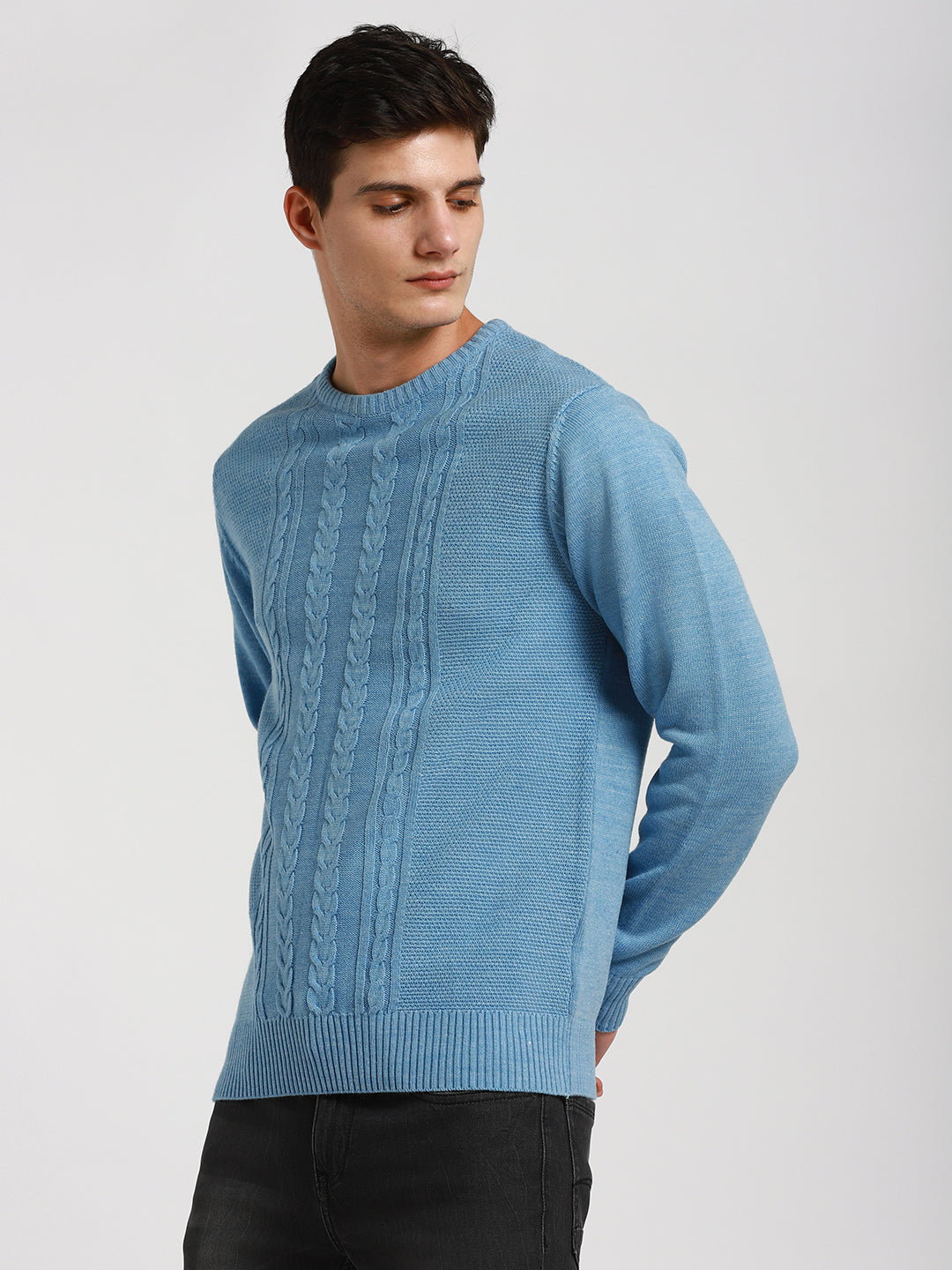 Men's Cable Knit Round Neck Acrylic Full Sleeves Pullover Sweater
