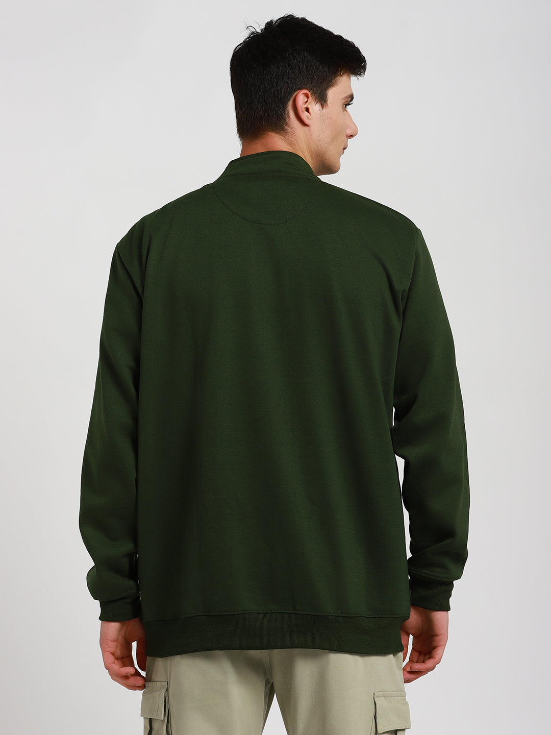 Men's Mock Neck Regular Fit Solid Olive Sweatshirt