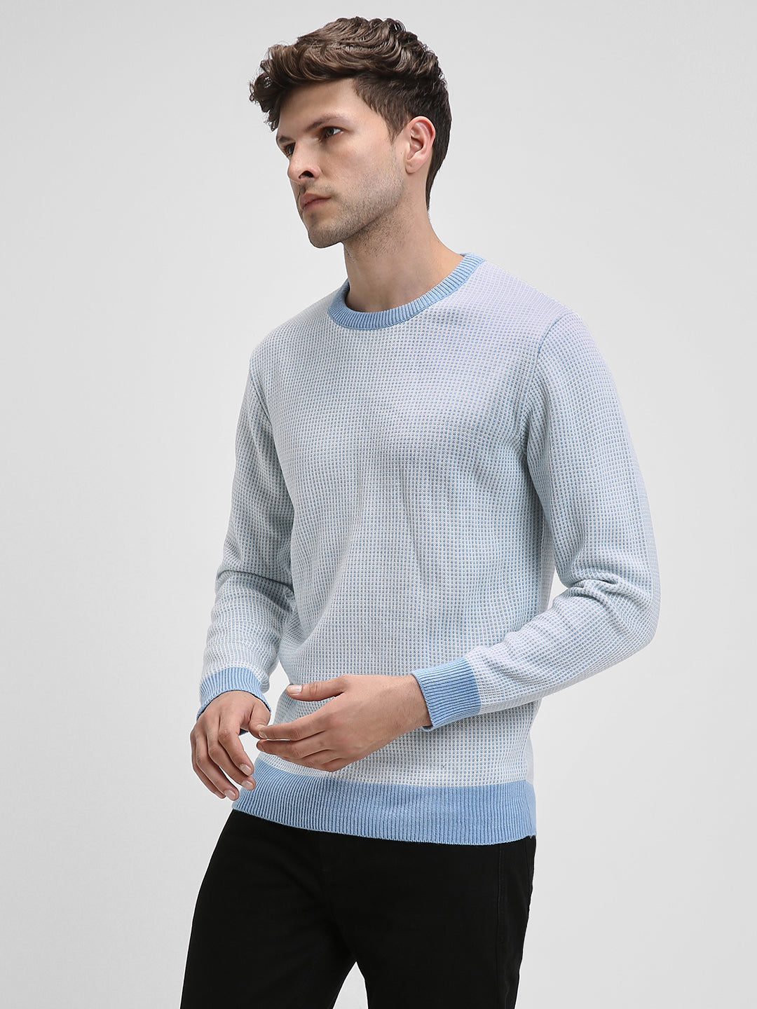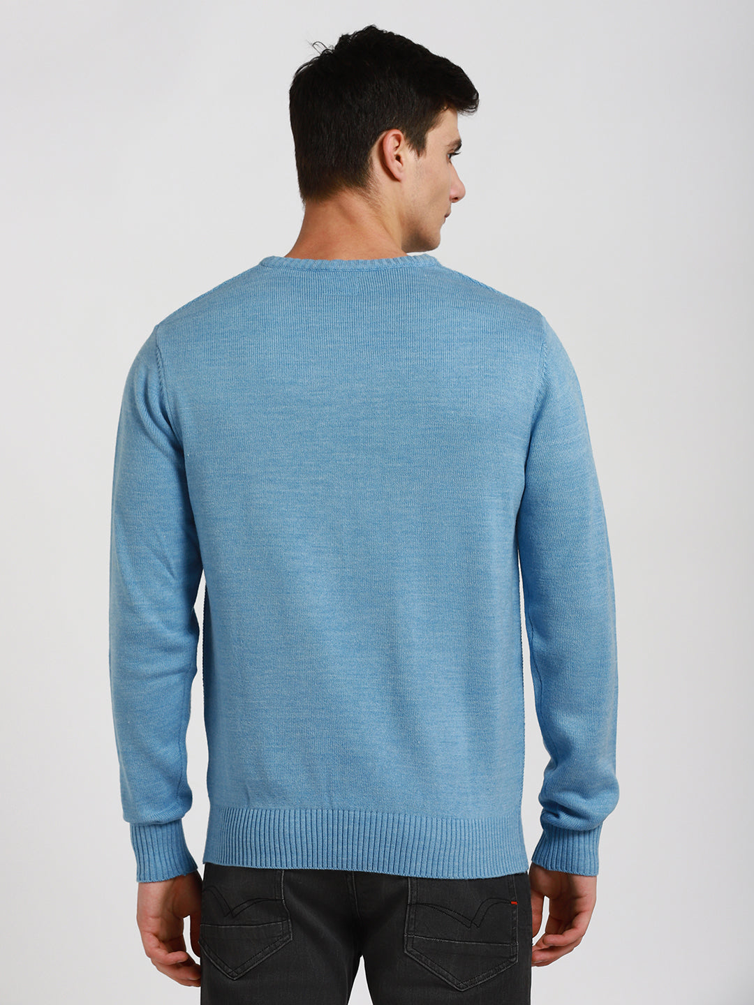Men's Grey Crew Neck Full Sleeves Slim Fit Pullover Sweater