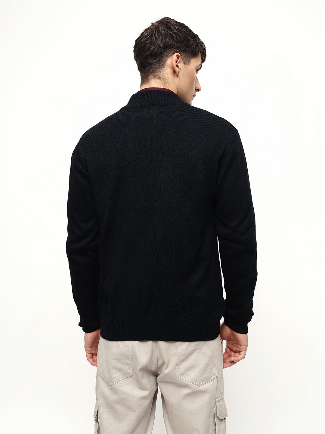 Men's Mock Regular Fit Solid Black Sweater
