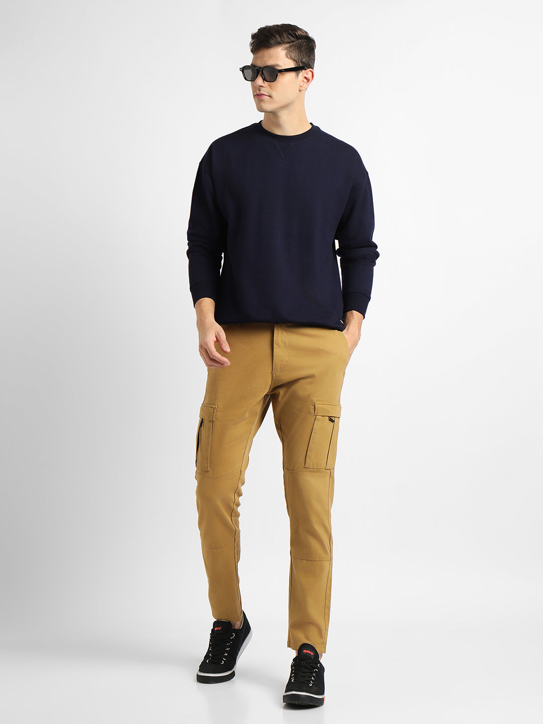 Men's Beige Crew Neck Full Sleeves Slim Fit Pullover Sweater