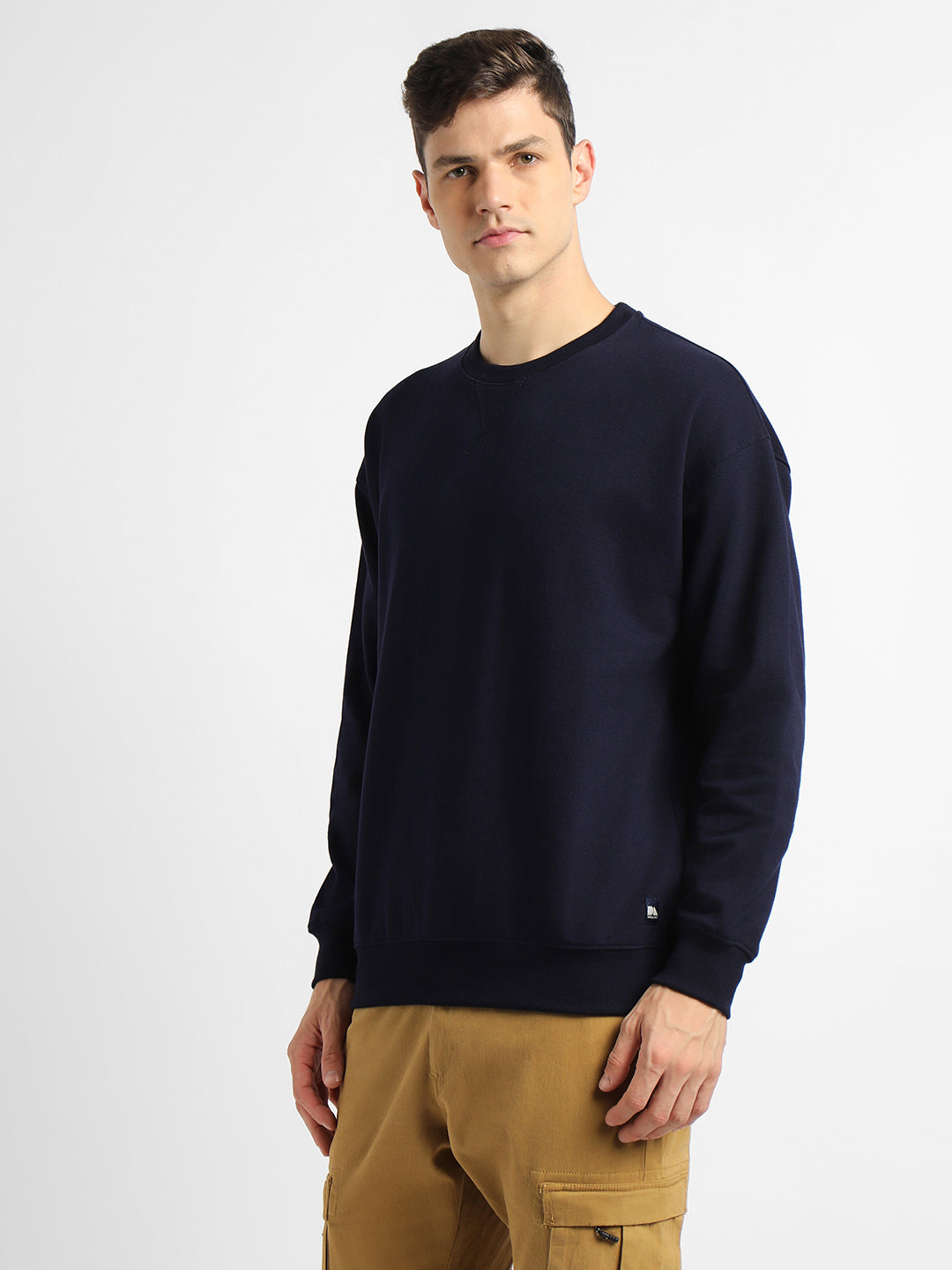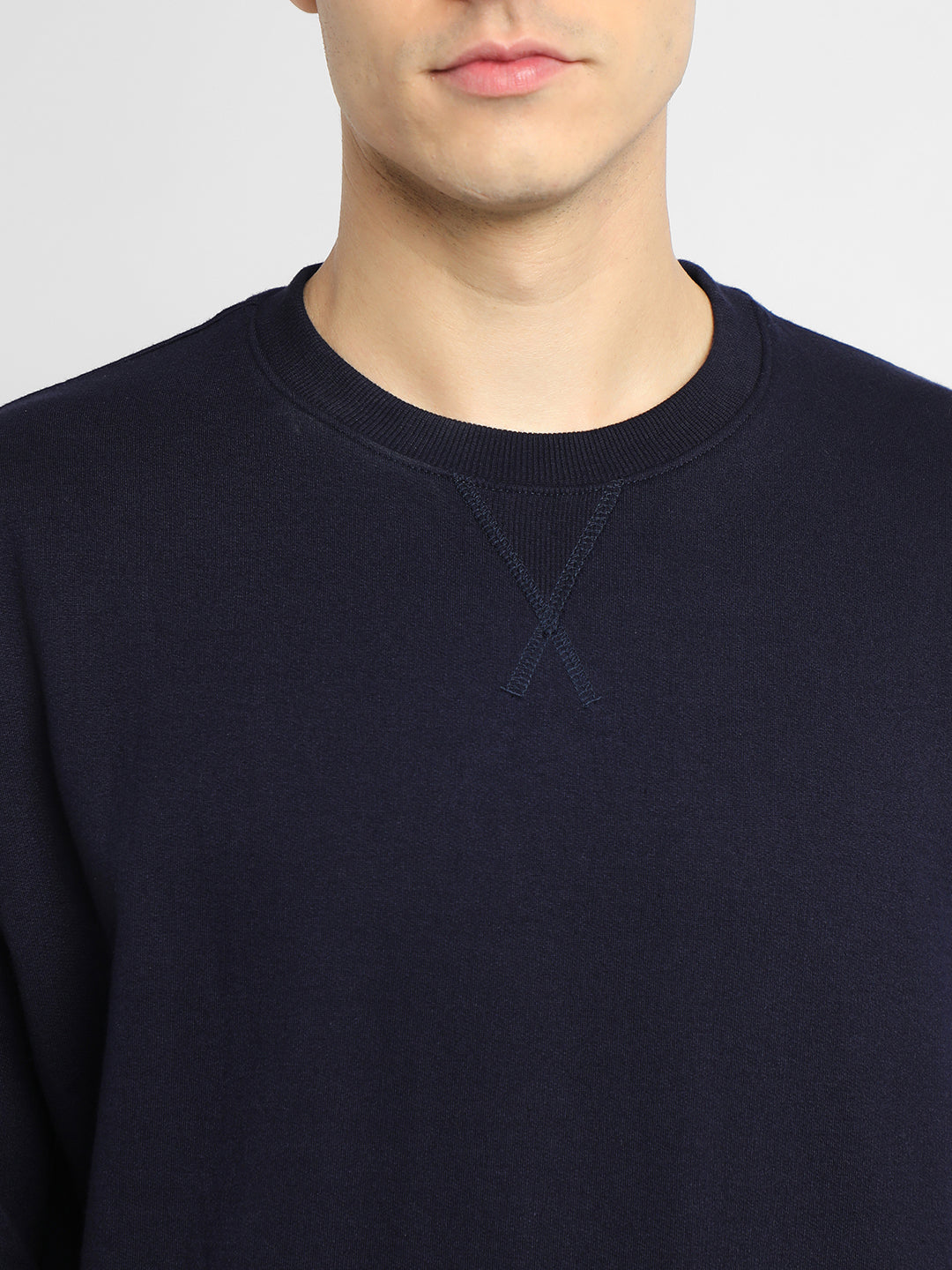 Men's Navy Blue Solid Rib Collar Full Sleeves Sweatshirt