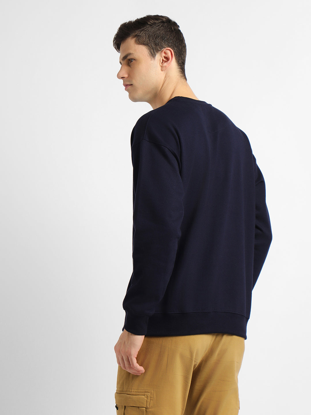 Men's Navy Mock Neck Full Sleeves Relaxed Fit Sweatshirt