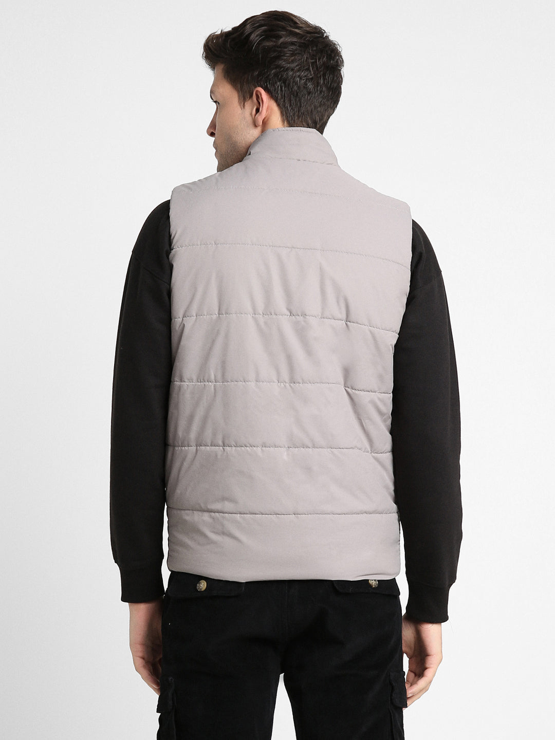 Men's Ash Grey Solid Mock Neck Sleeveless Regular Fit Reversible Gilet Jacket