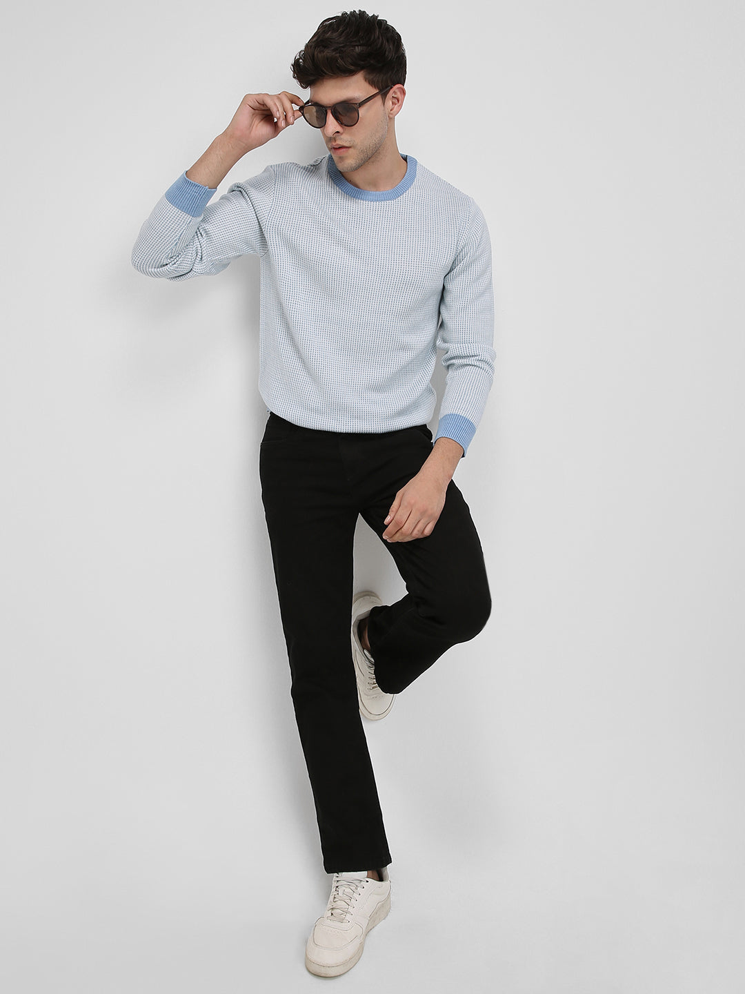 Men's Black Crew Neck Full Sleeves Slim Fit Pullover Sweater