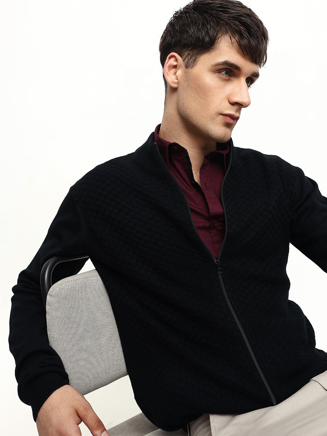 Men's Solid Stand Collar Full Sleeves Regular Fit Jacket