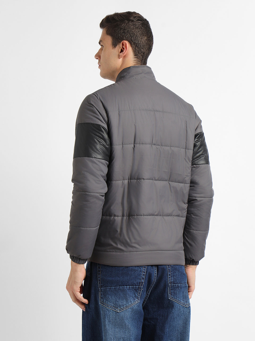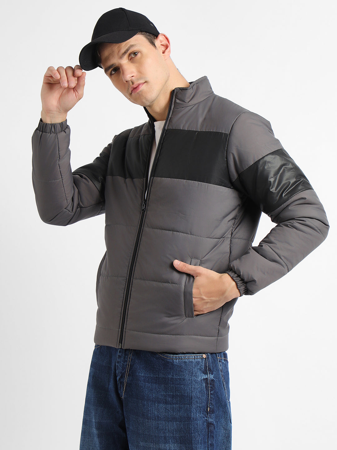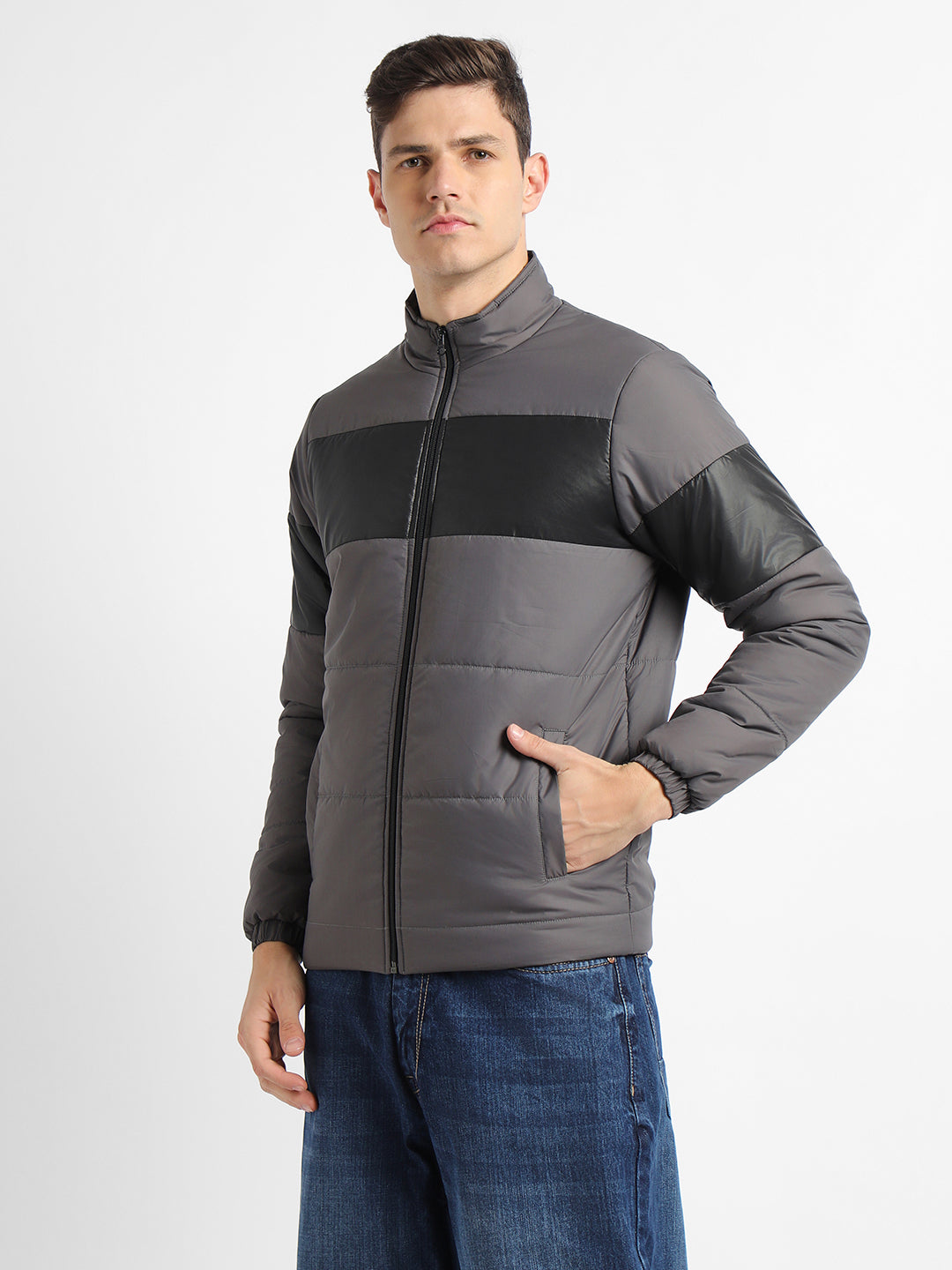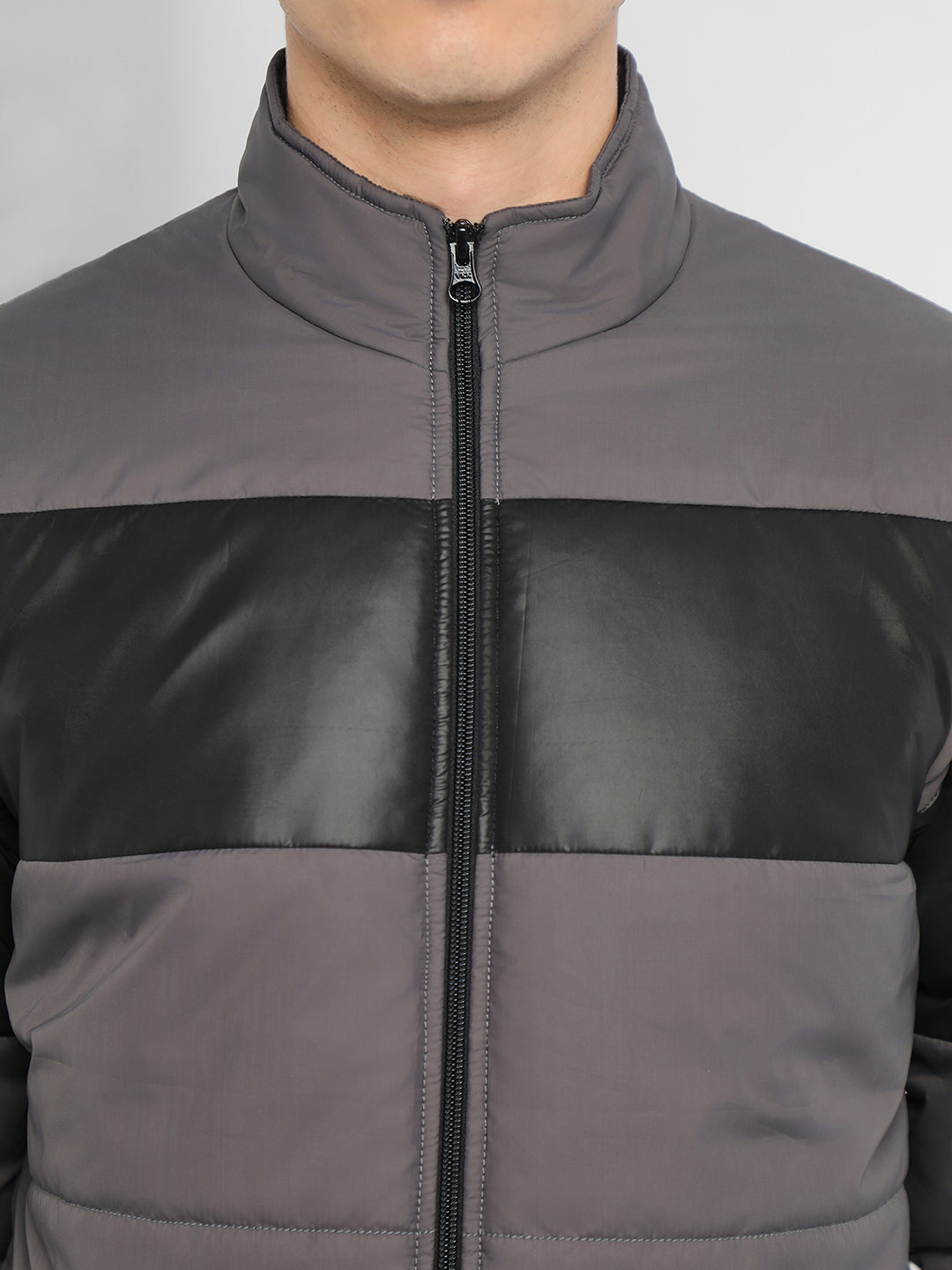 Men's High Neck Regular Fit Panelled Dark Grey Jackets