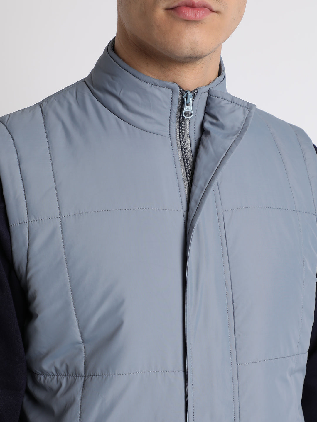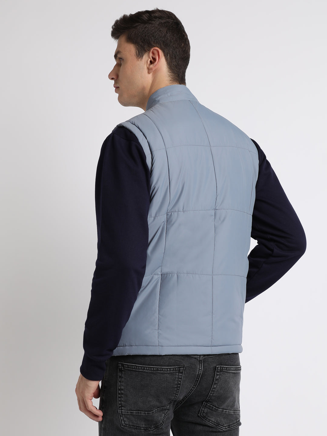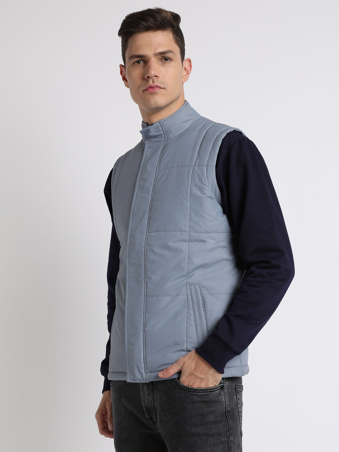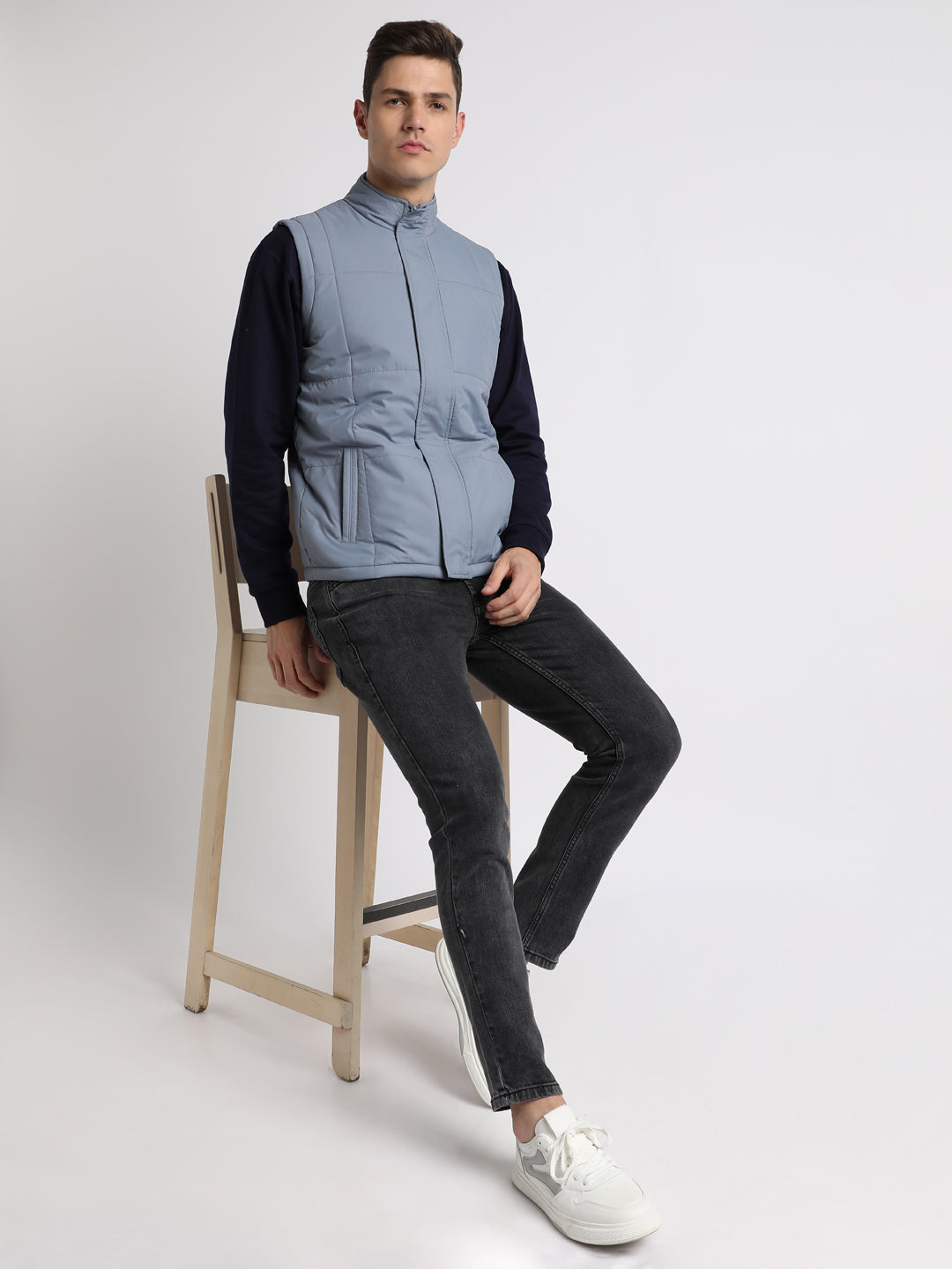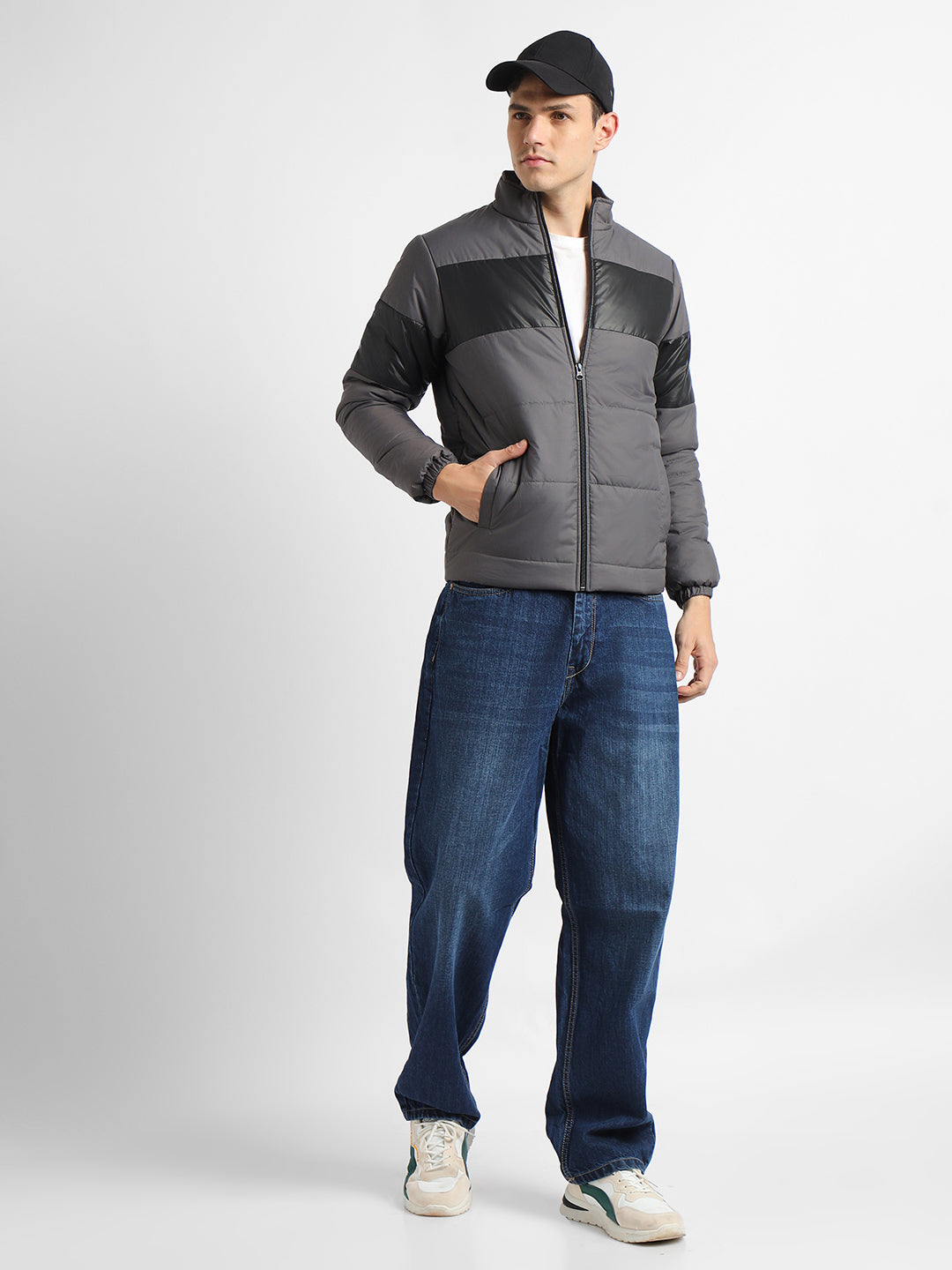 Men's High Neck Regular Fit Panelled Dark Grey Jackets