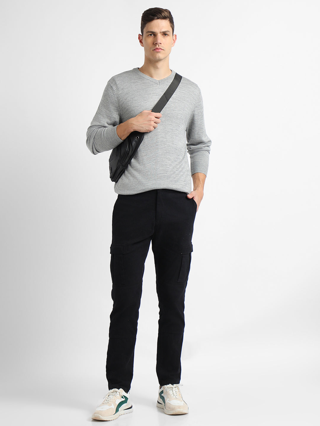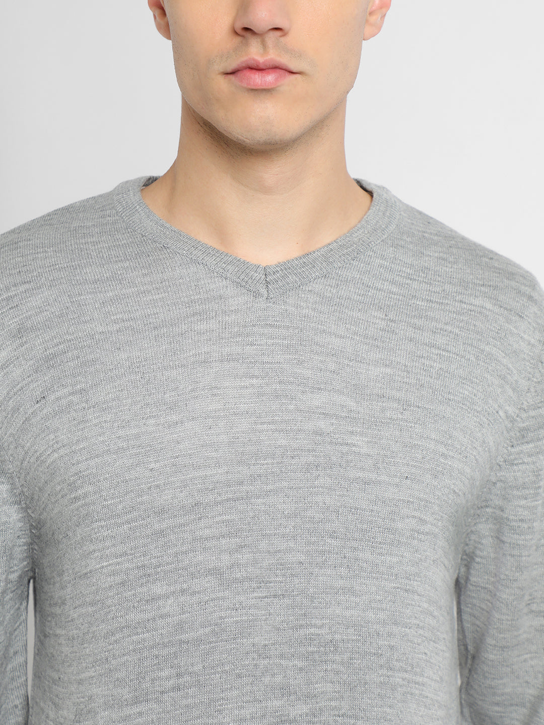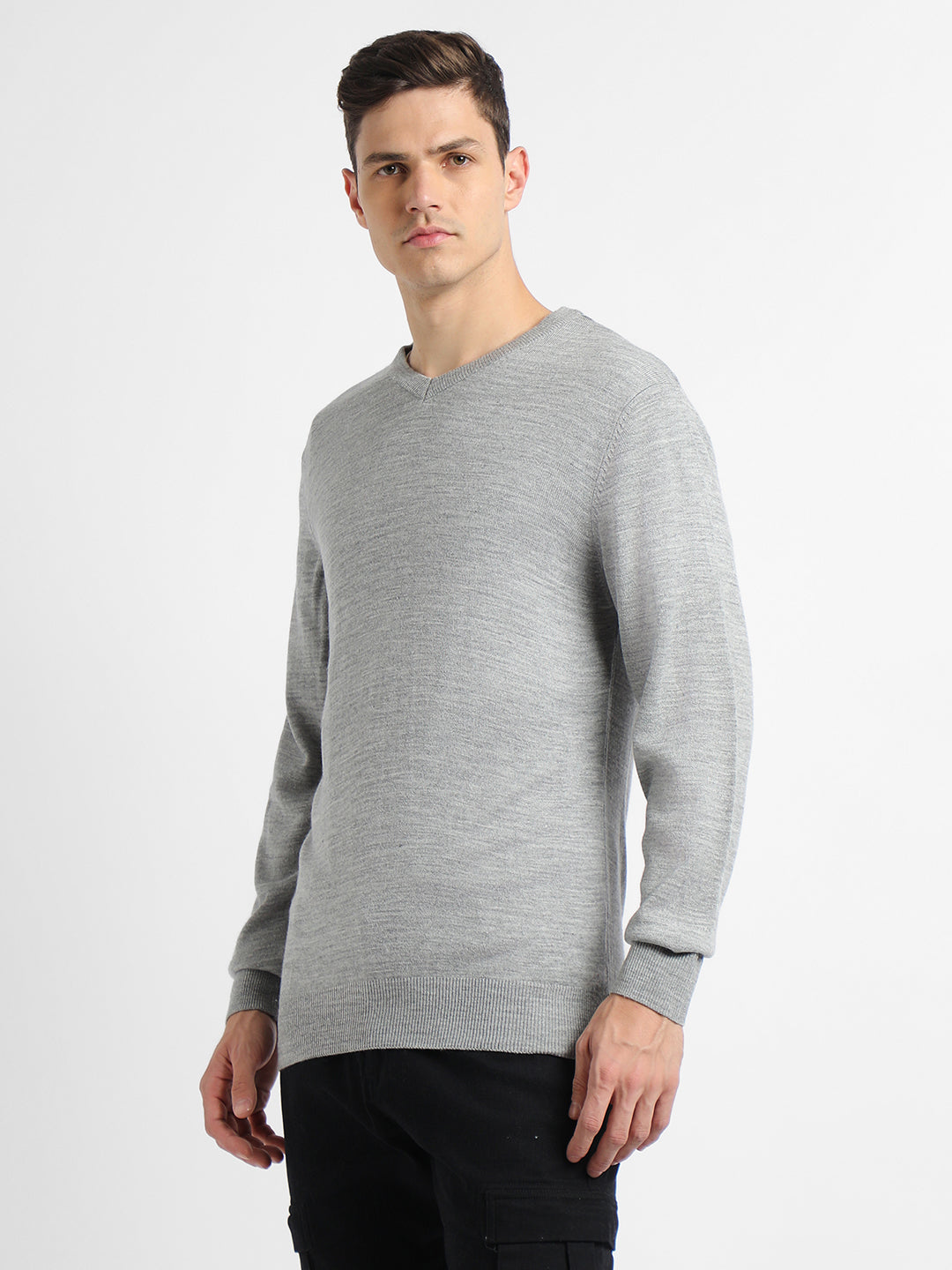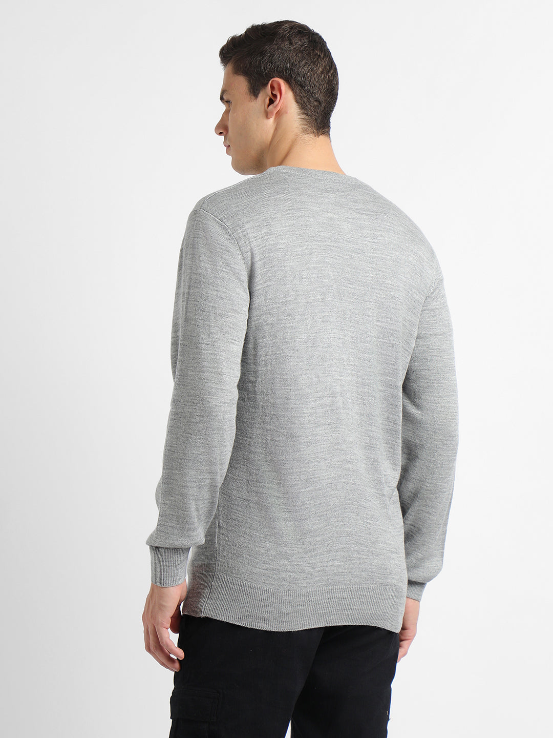 Men's Dark Grey Self Design Round Neck Pullover Sweater