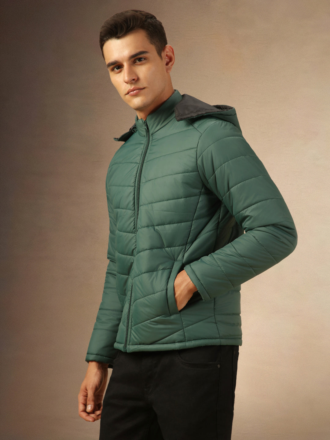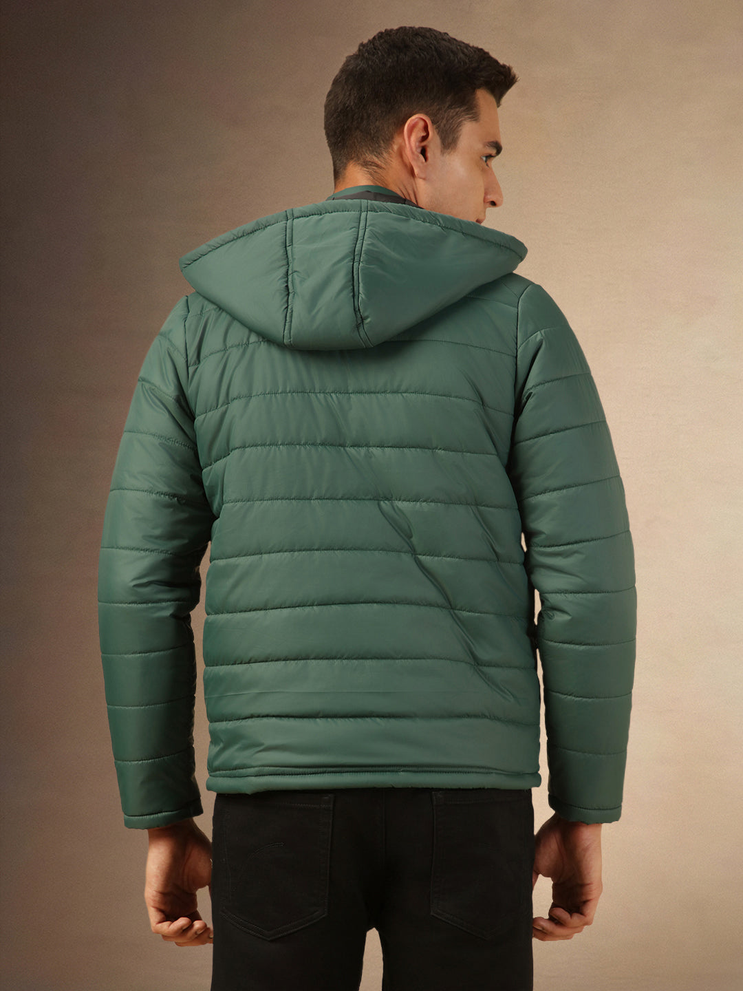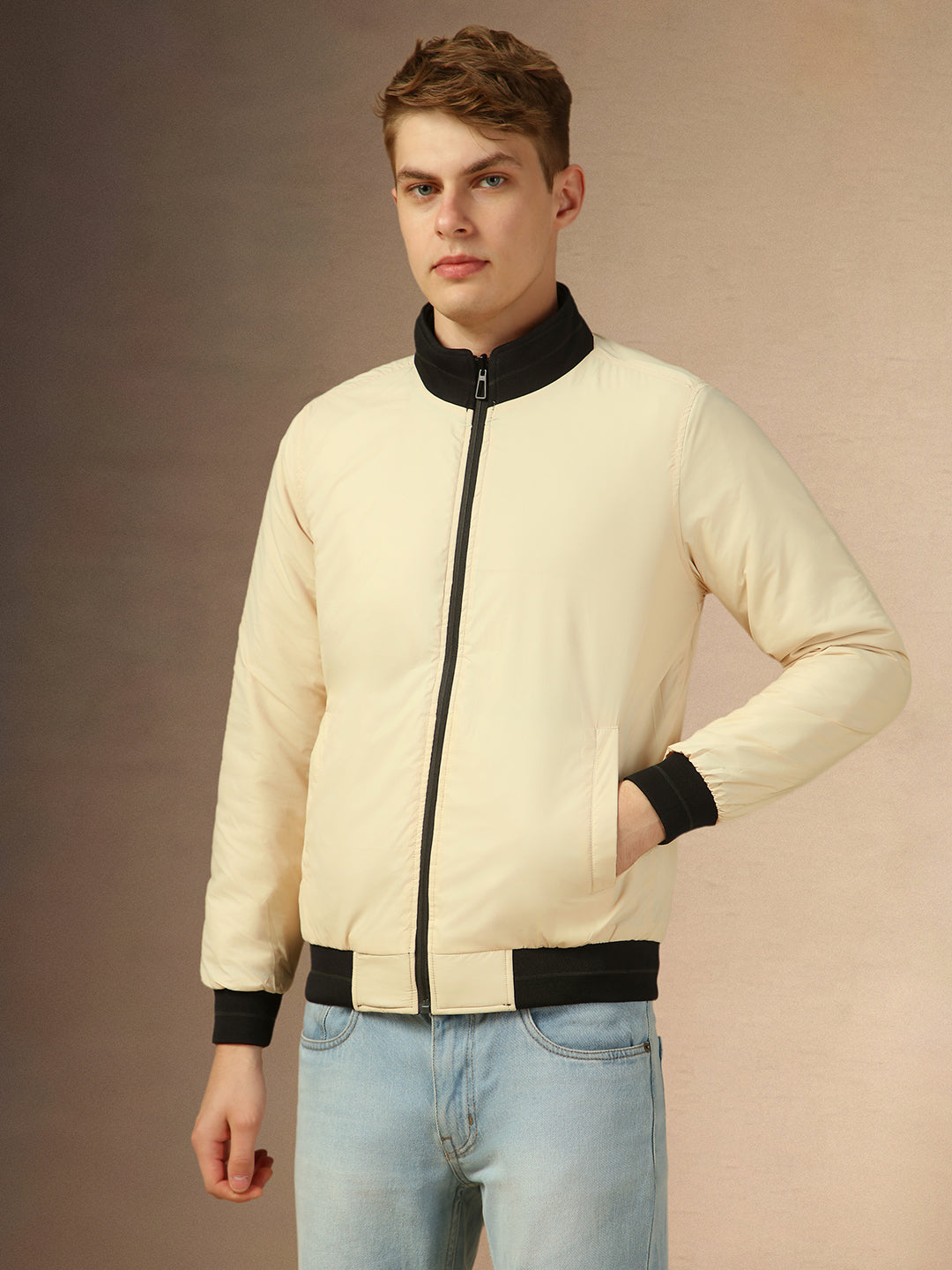 Men's Solid Mock Neck Full Sleeves Reversible Puffer Jacket