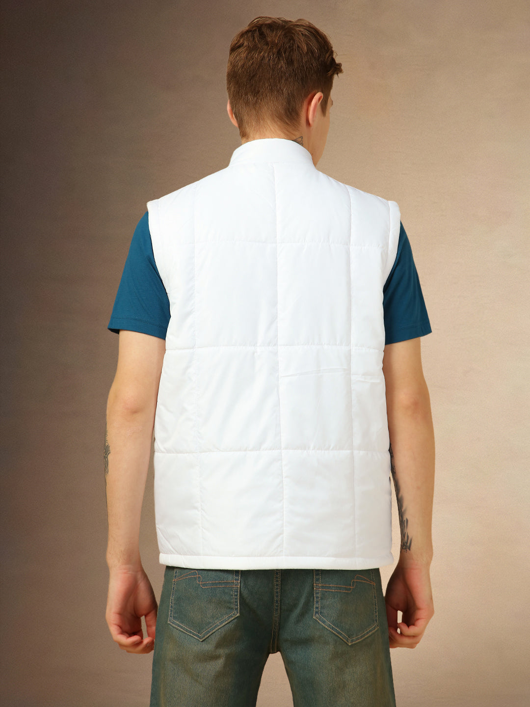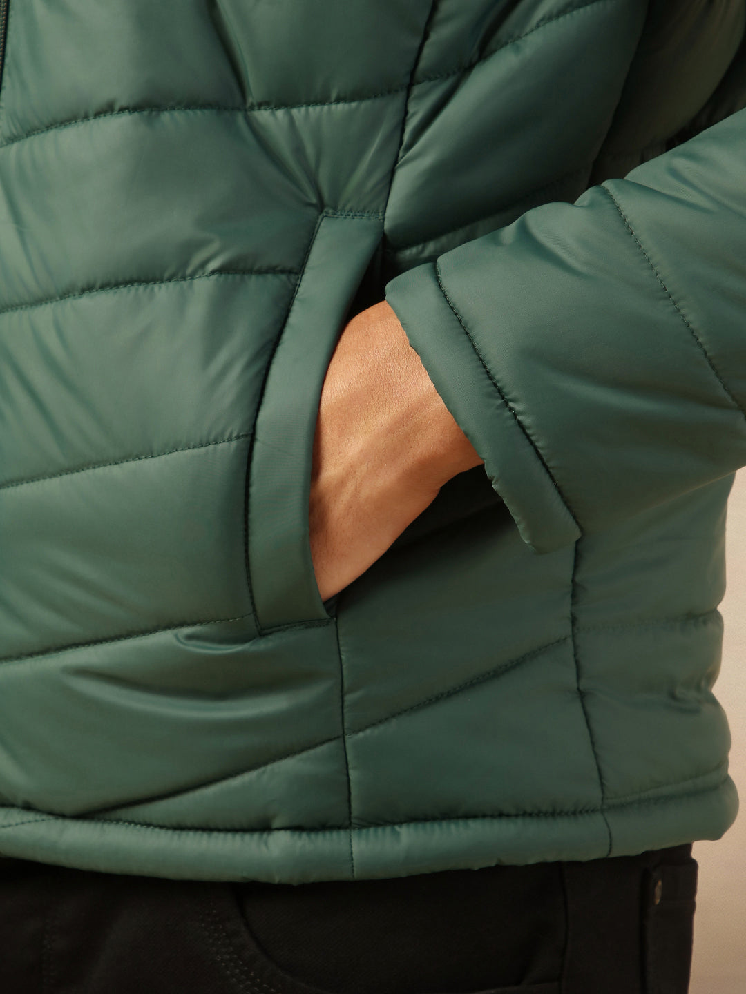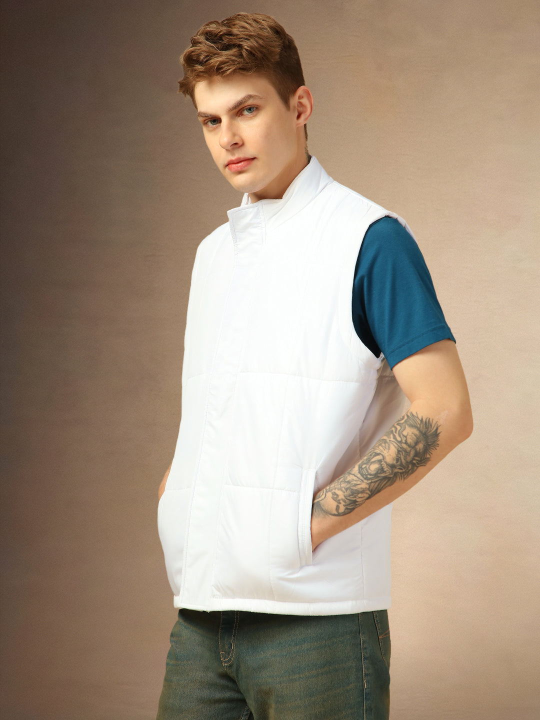 Men's Solid Mock Neck Full Sleeves Reversible Puffer Jacket