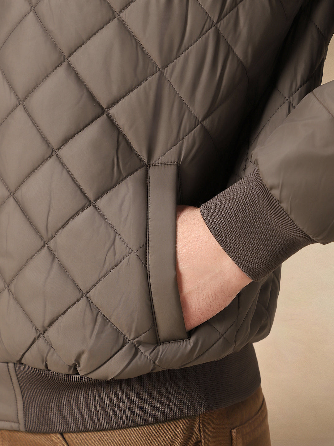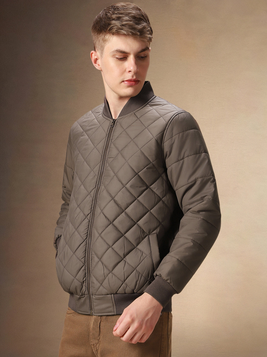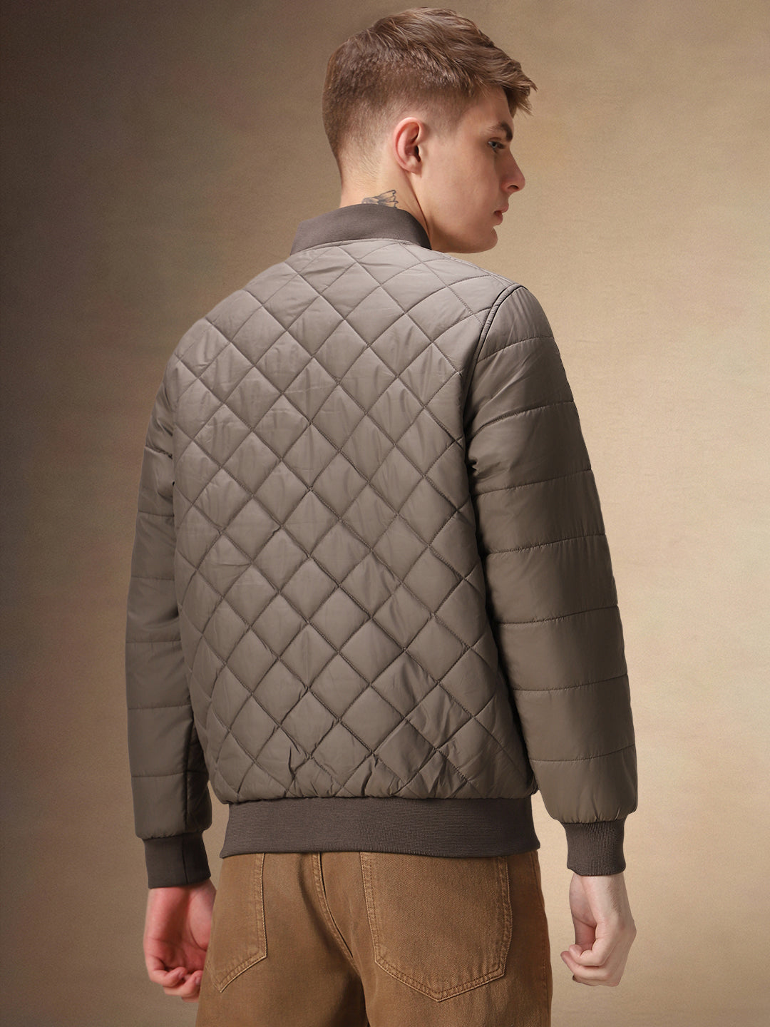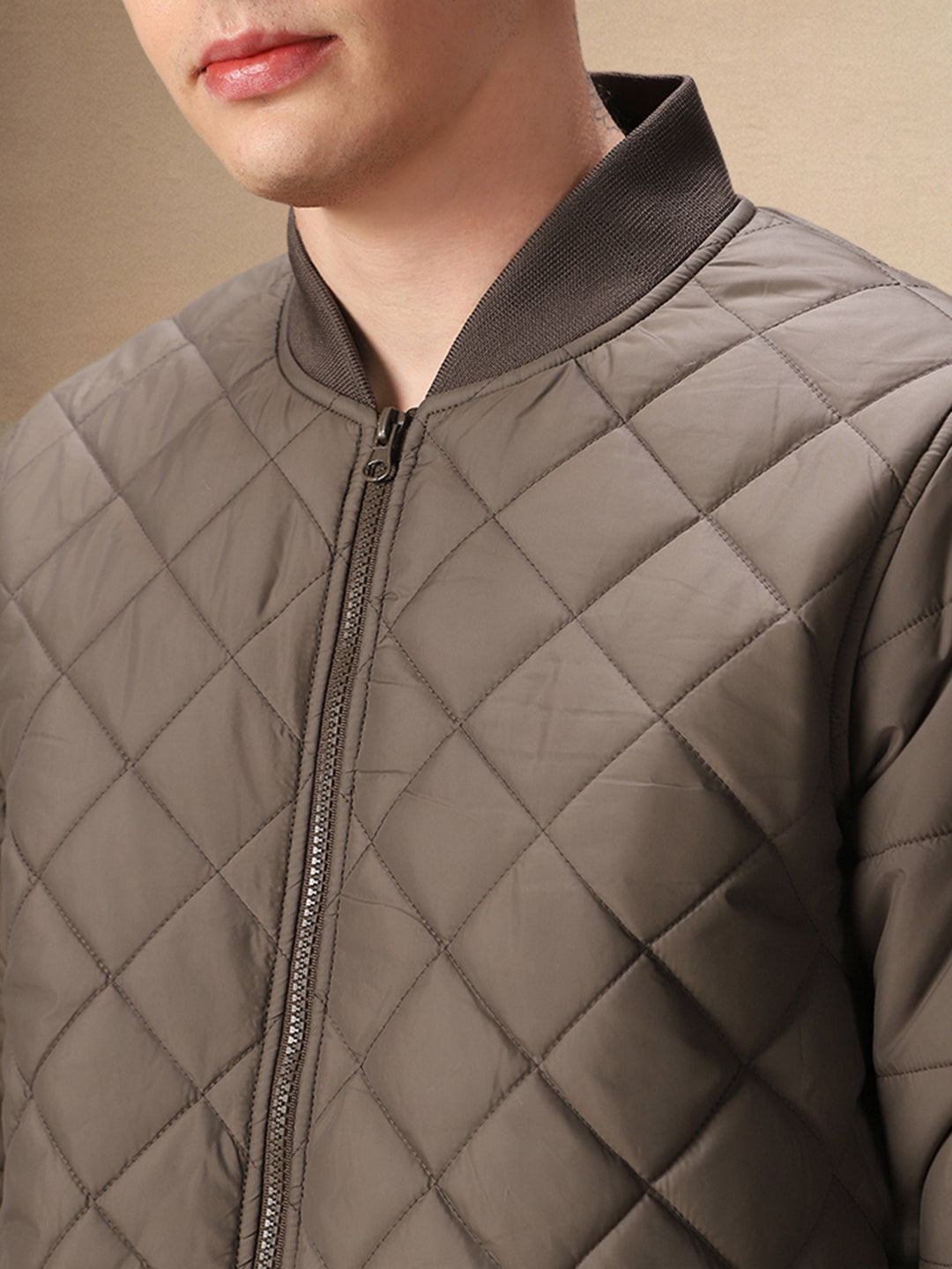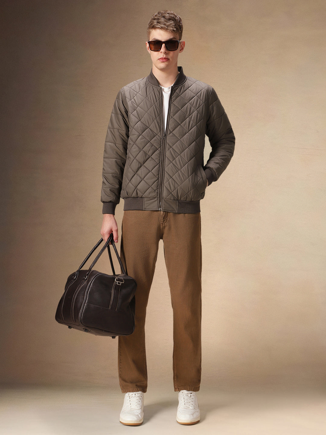Men's Solid Quilted Rib Collar Full Sleeves Bomber Jacket