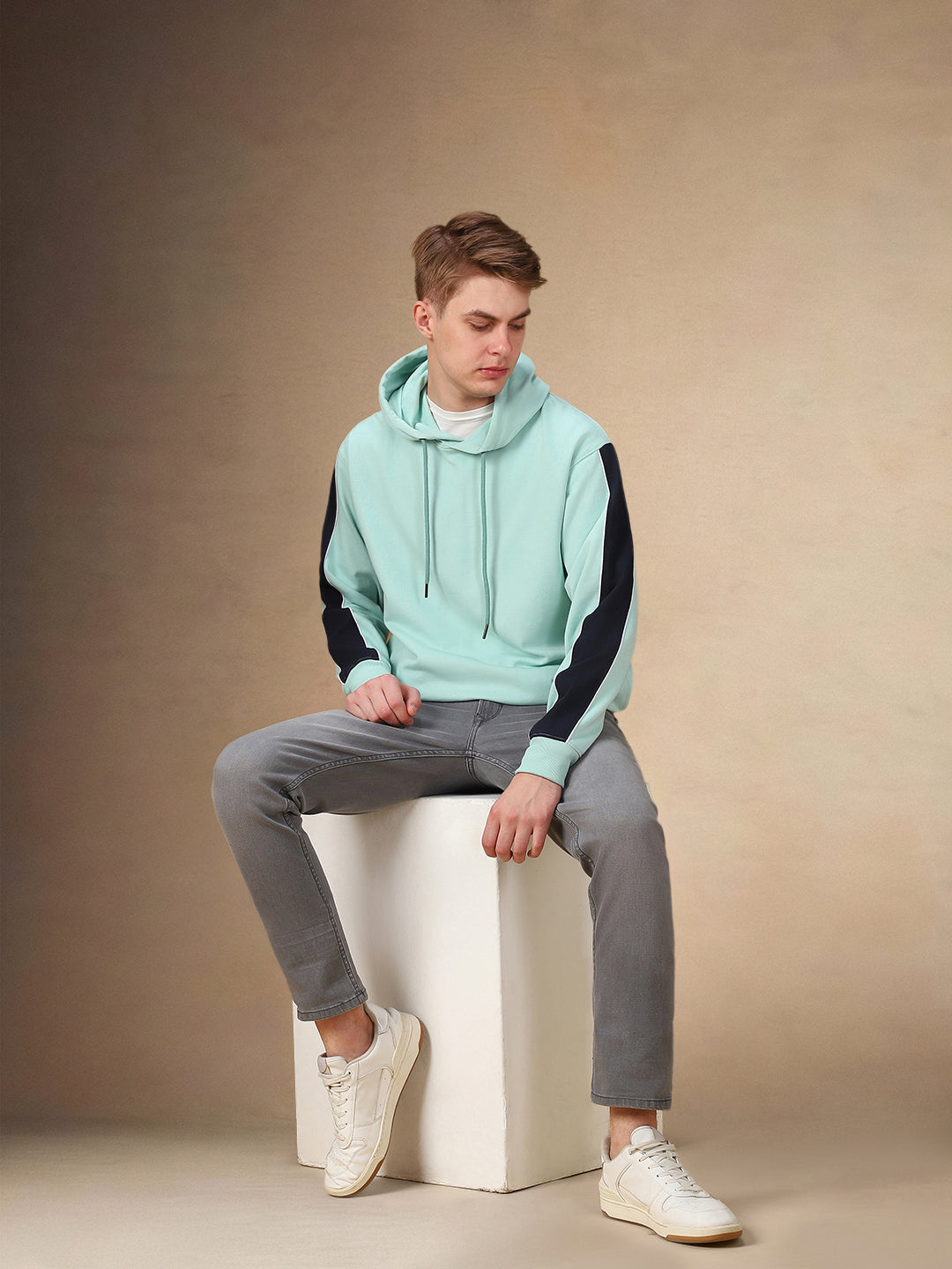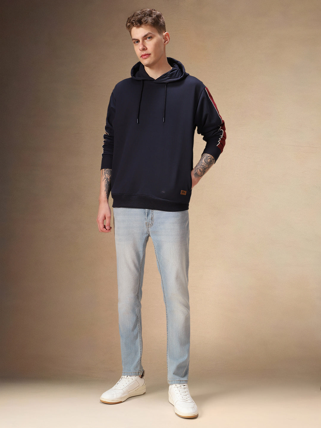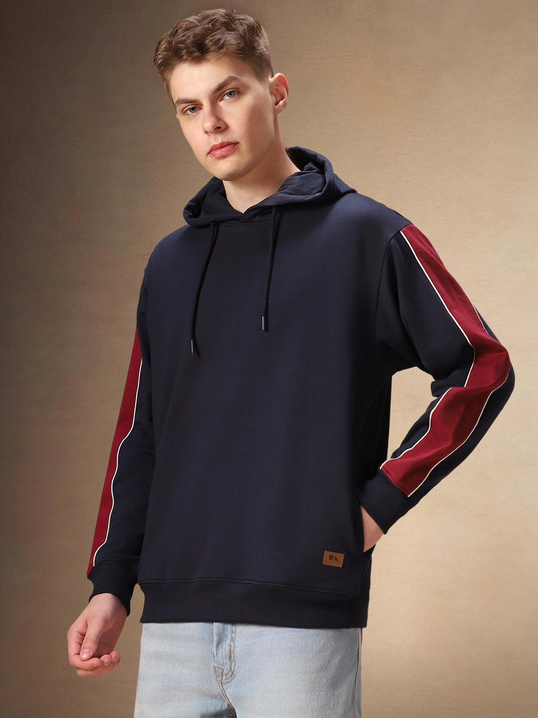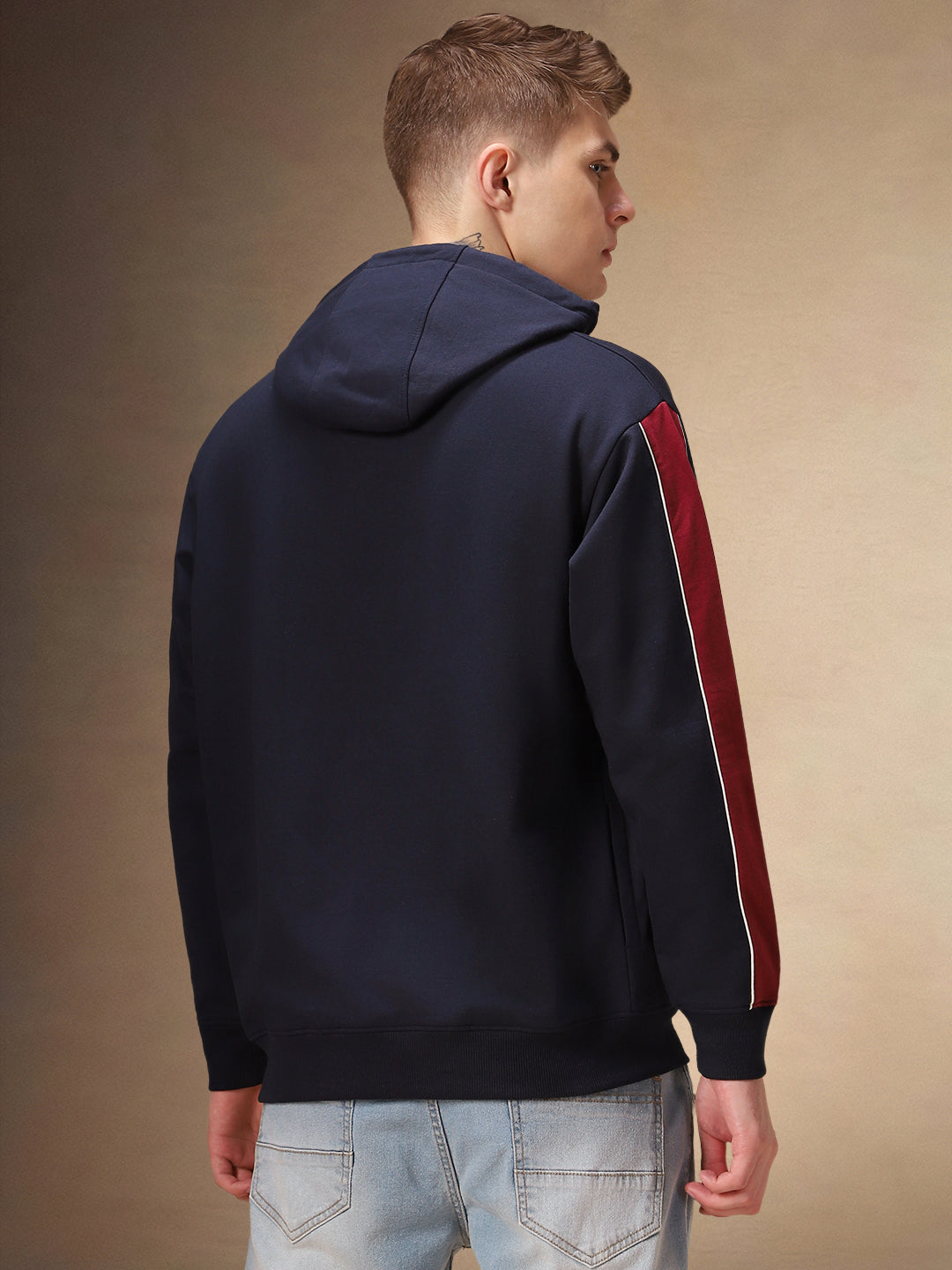 Men's Striped Sleeves Hooded Full Sleeves Hoodie