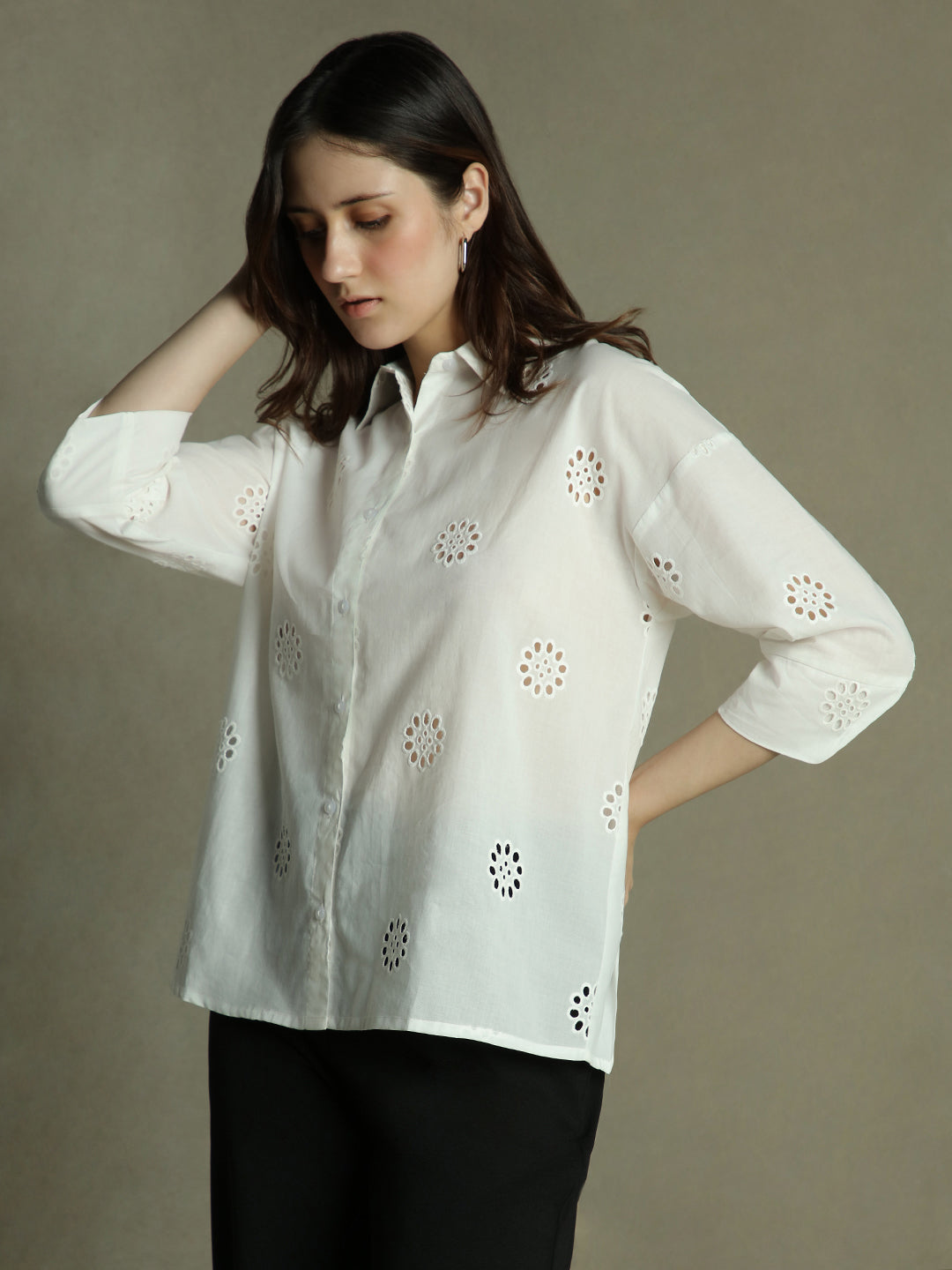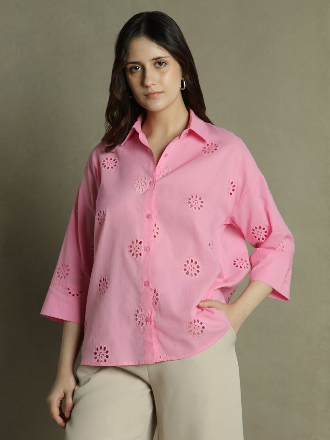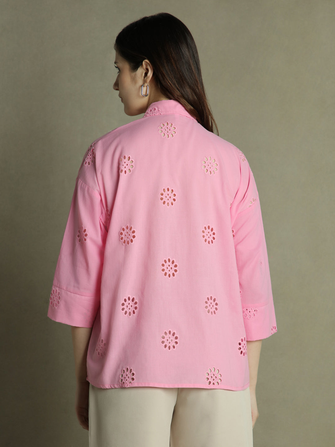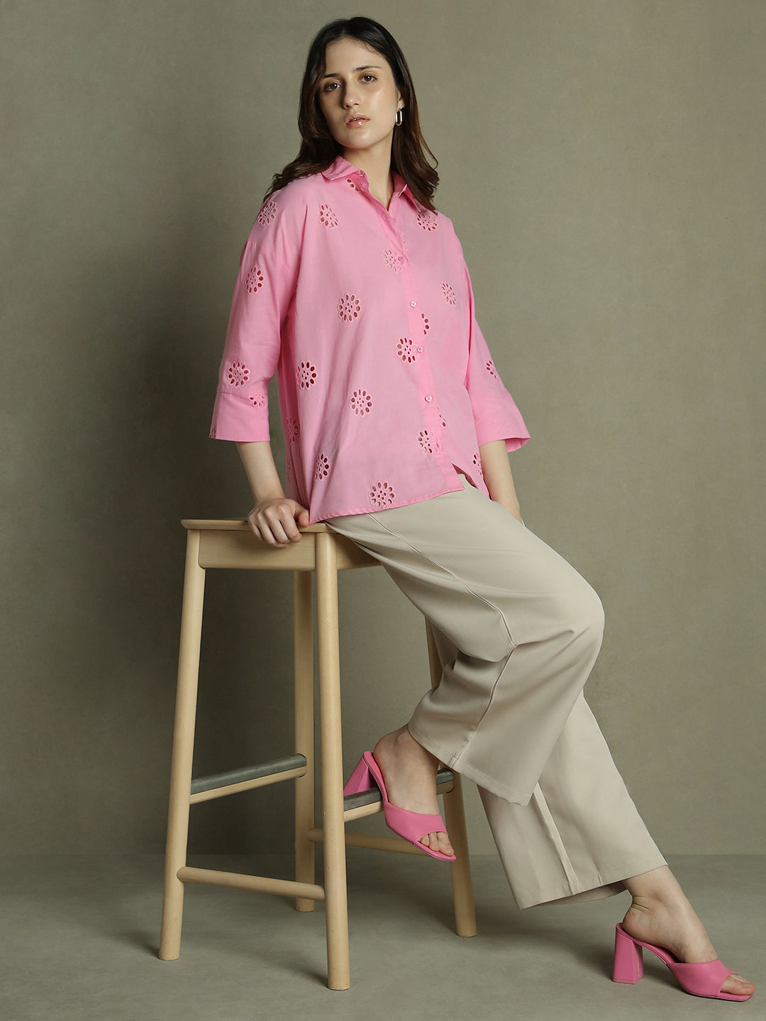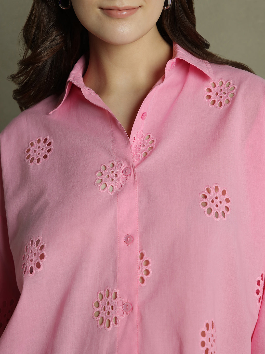 DL Woman Pink Collared Schiffli Cotton Shirt