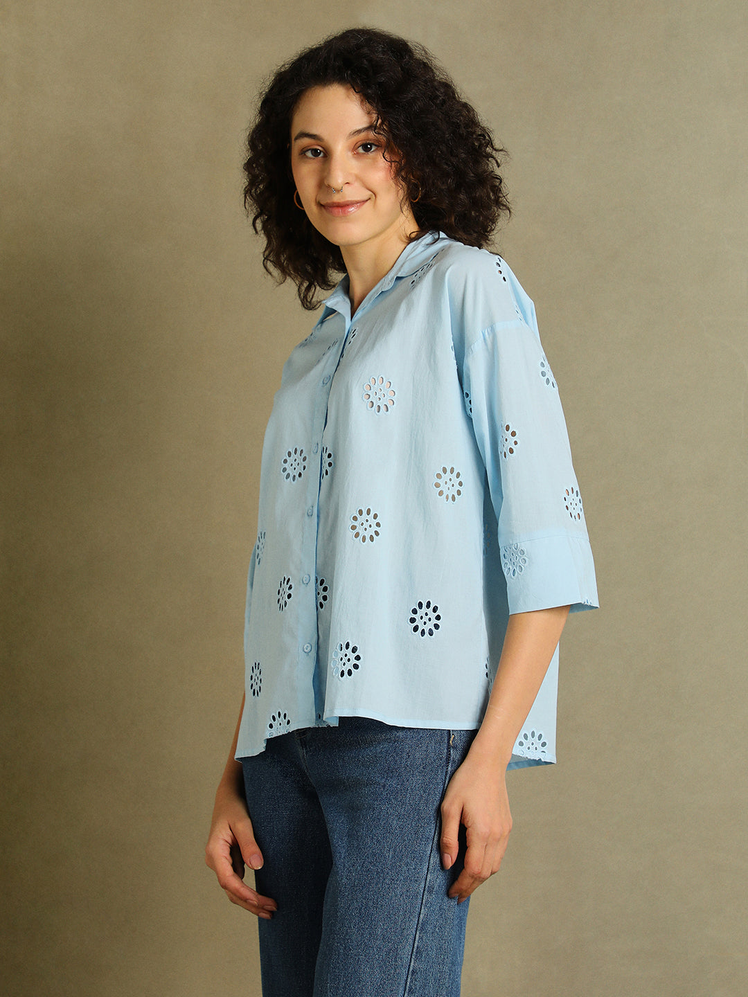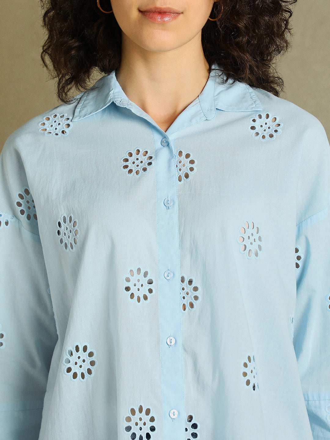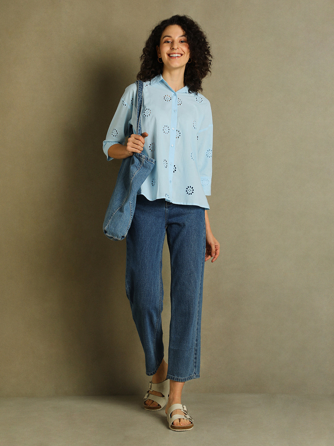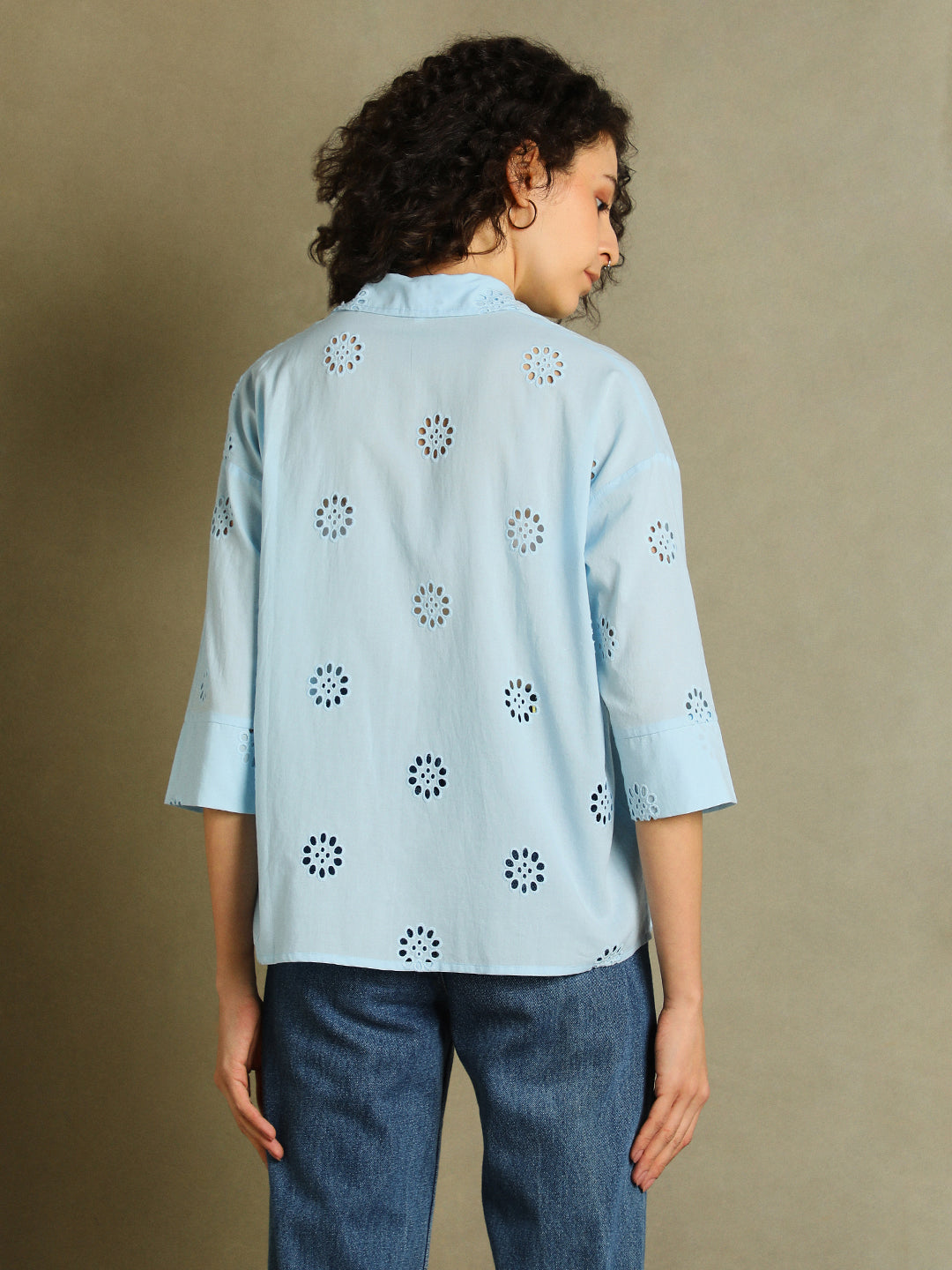 DL Woman Light Blue Schffili Spread Collar Full Sleeves Shirt