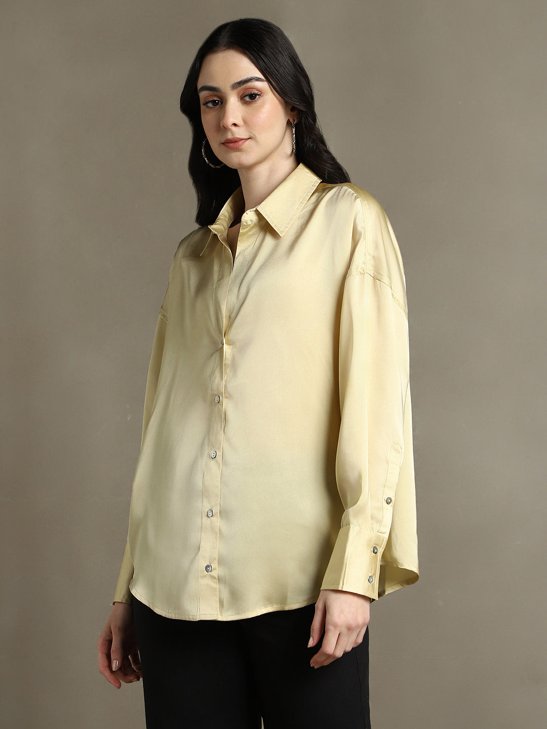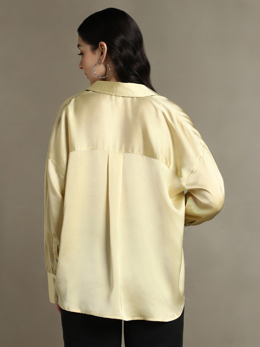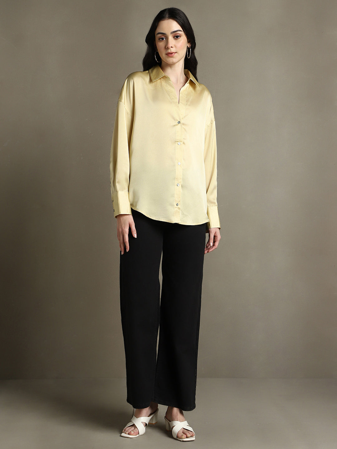 DL Woman Yellow Printed Spread Collar Full Sleeves Oversized Shirt