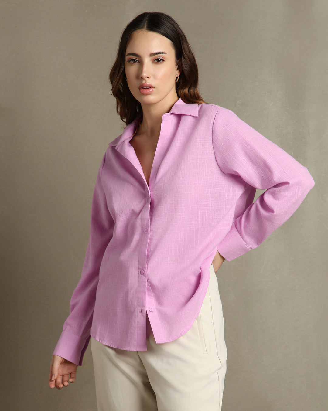 DL Woman Lavender Solid Textured Spread Collar Full Sleeves Oversized Shirt