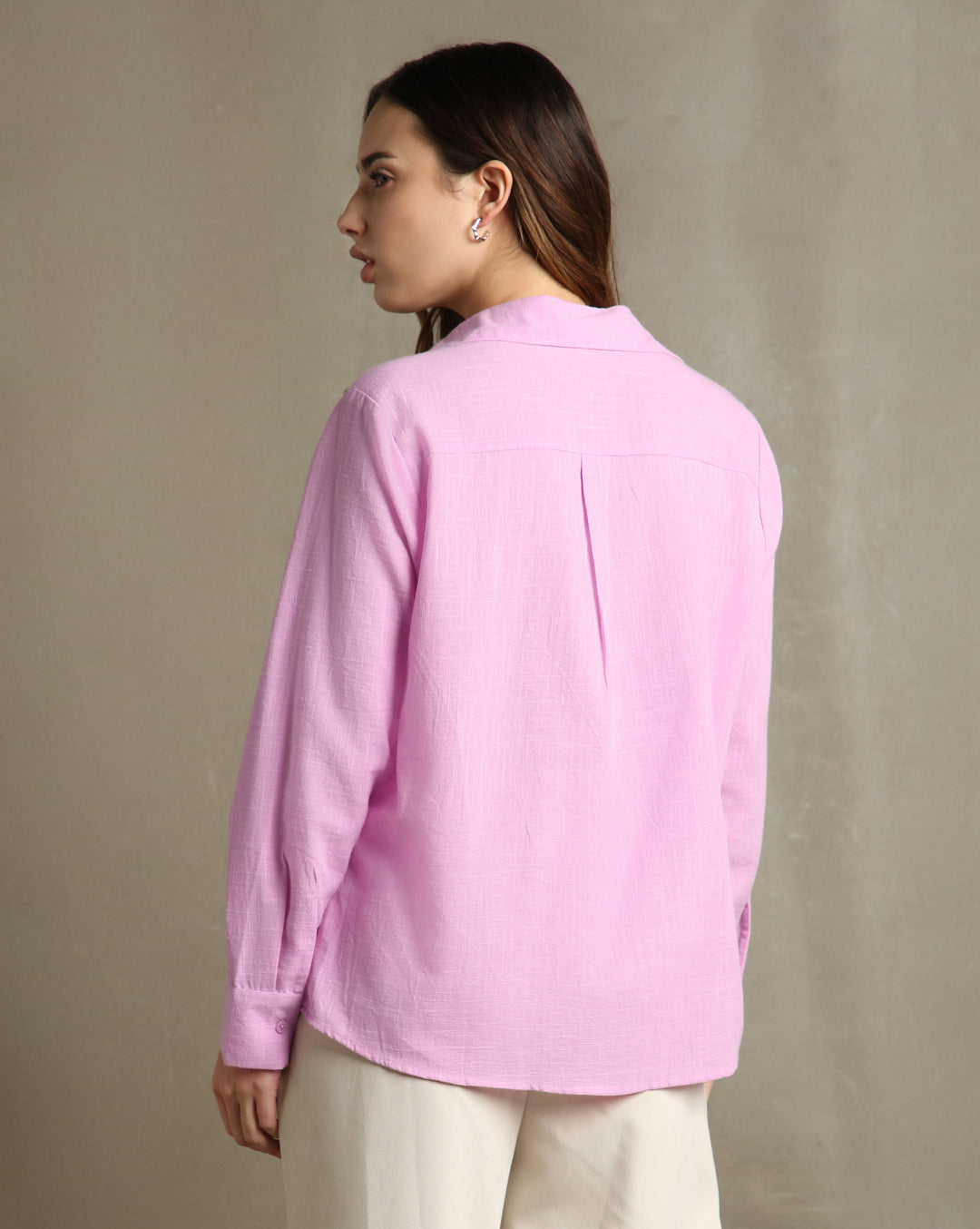 DL Woman Shirt Collar Relaxed Fit Solid Pink Shirt