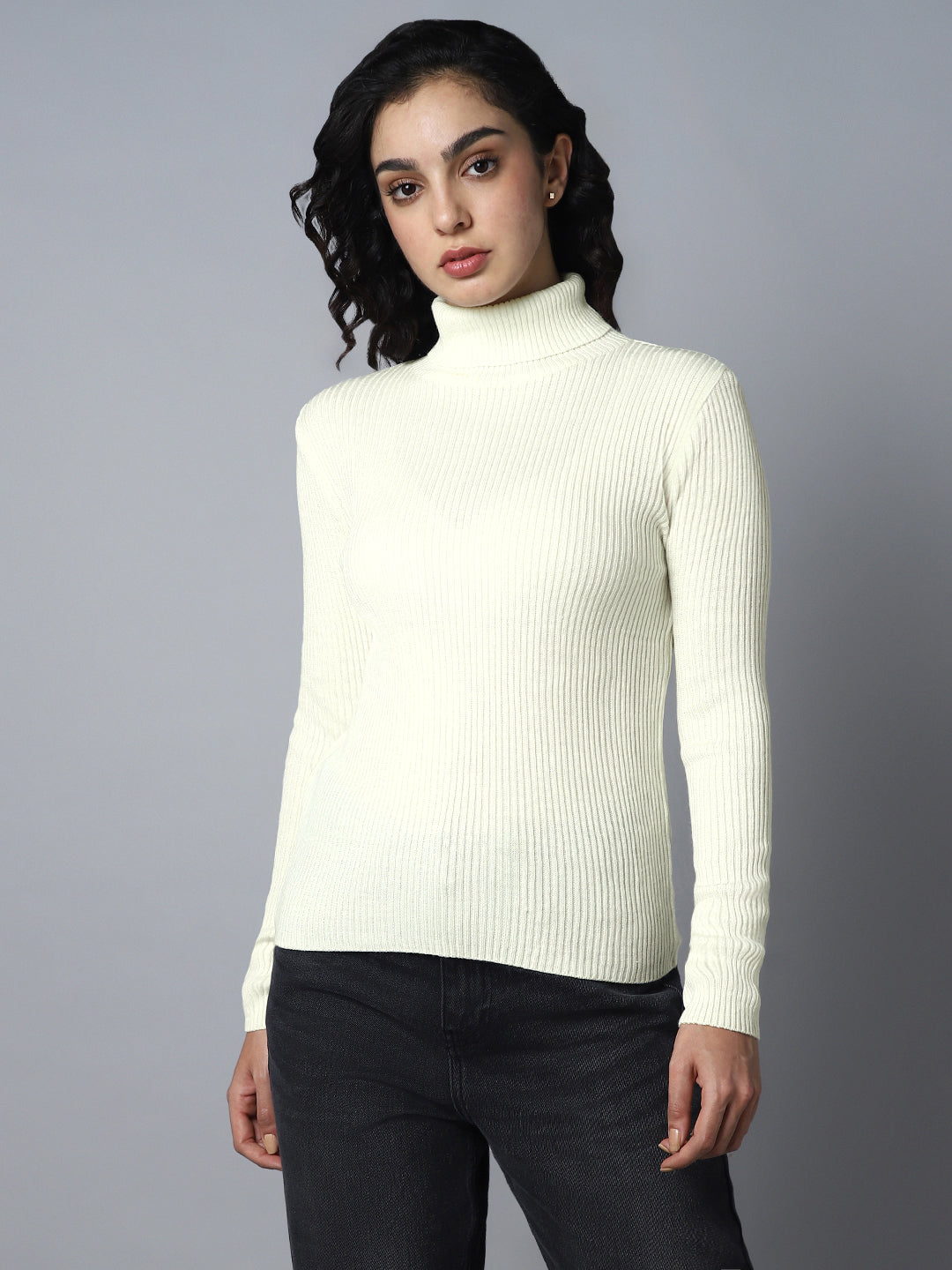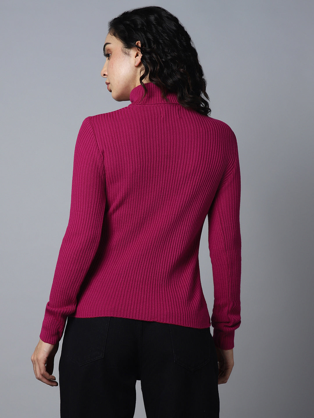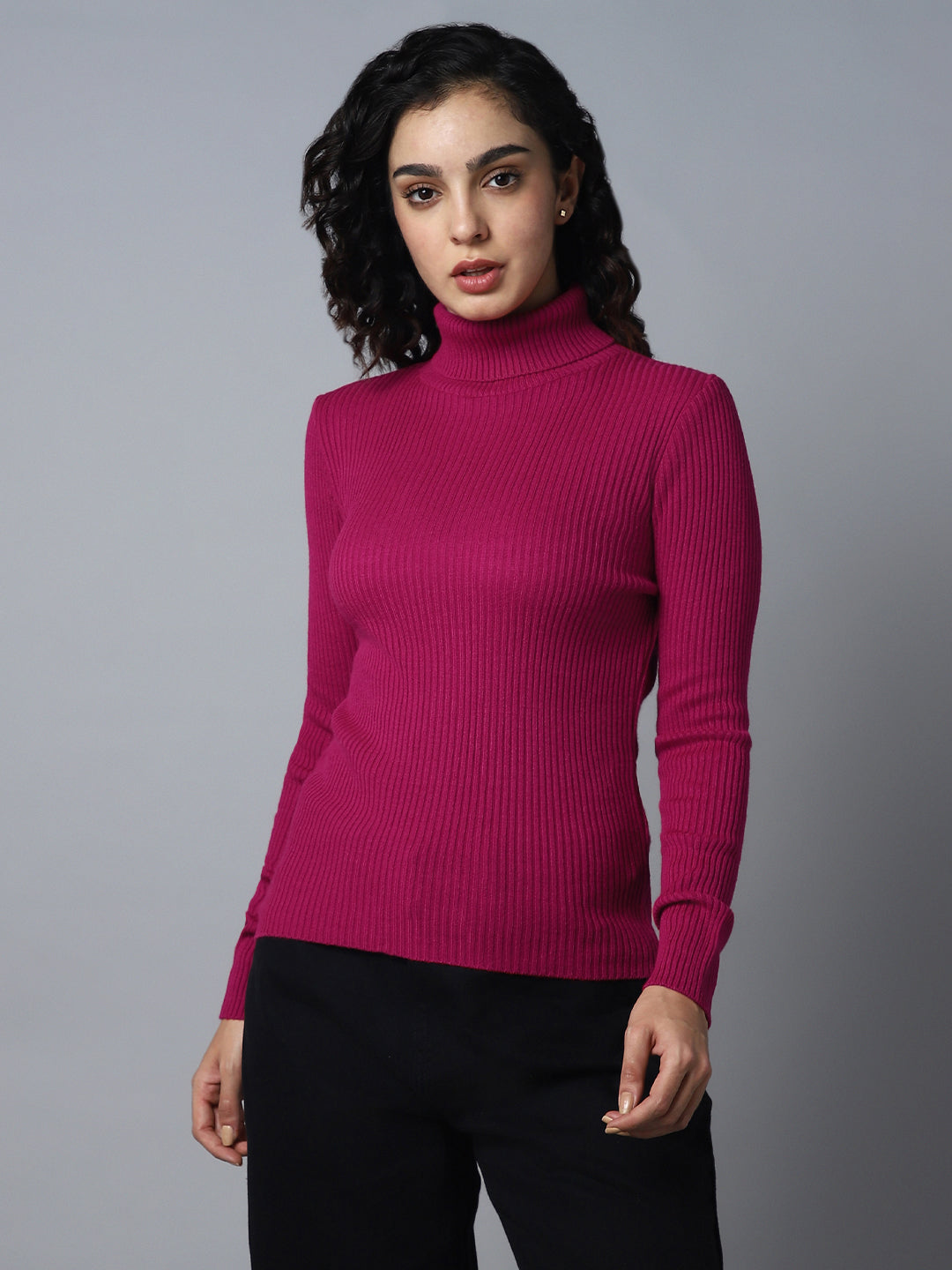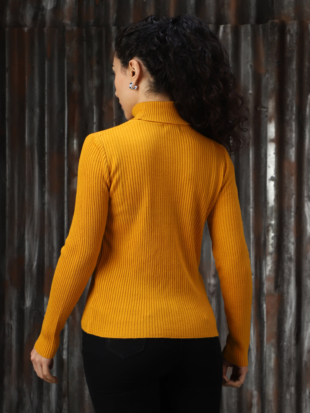 Women Ribbed Turtle Neck Long Sleeves Acrylic Pullover Sweaters